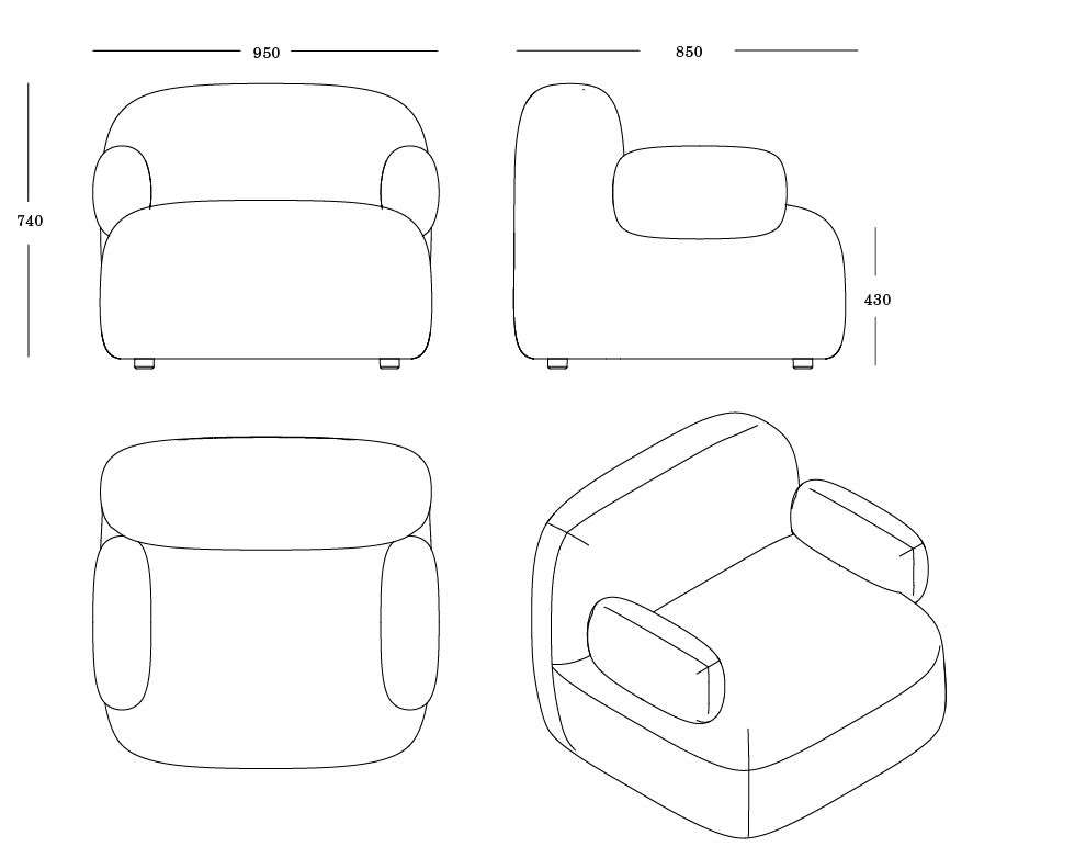 Mit sanften, abgerundeten Formen, ähnlich denen eines „Gummibärchens“, entsteht dieses Design aus dem Streben nach einem gemütlichen und komfortablen Möbelstück – unerlässlich, um architektonische Räume zu humanisieren. Der Gumi Sessel ist Teil einer Kollektion, die aus verschiedenen Elementen besteht und unendliche Gestaltungsmöglichkeiten bietet.