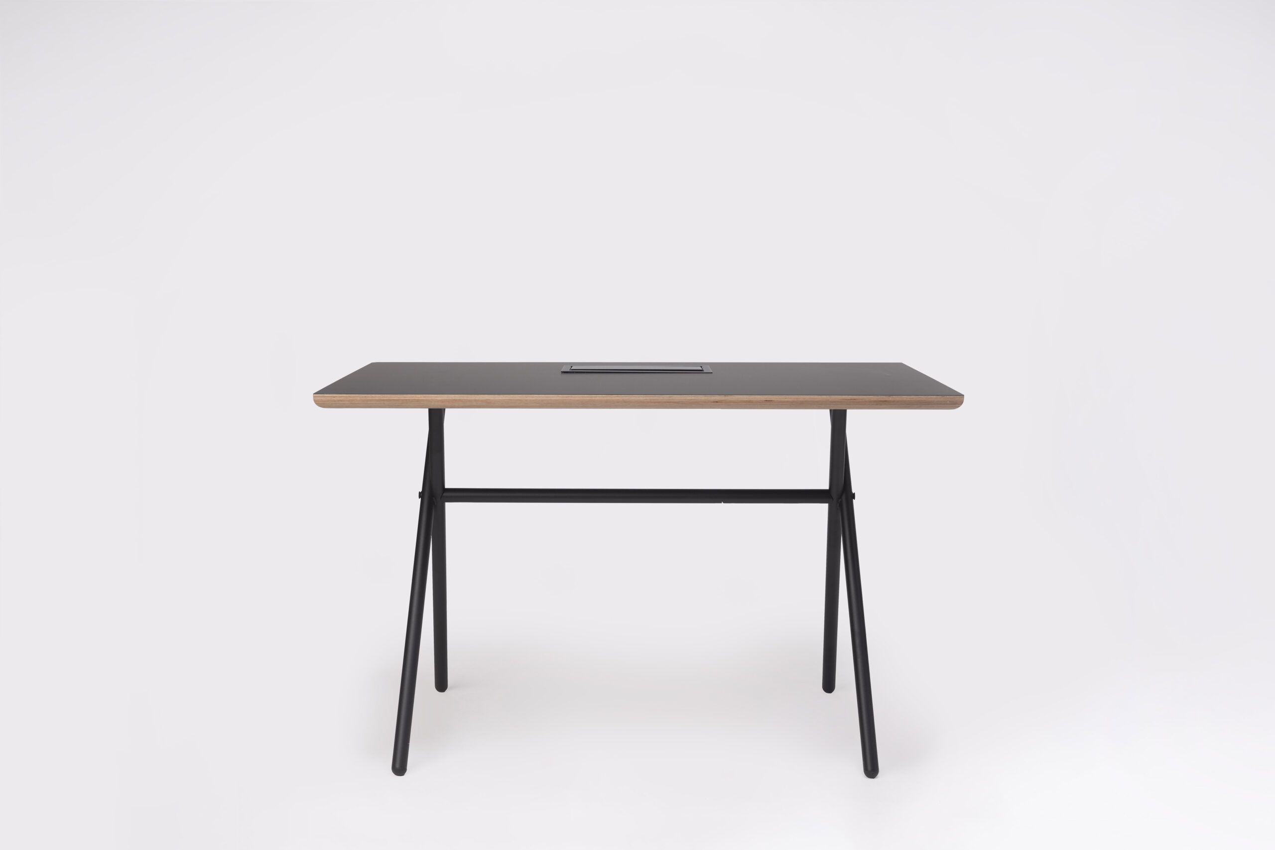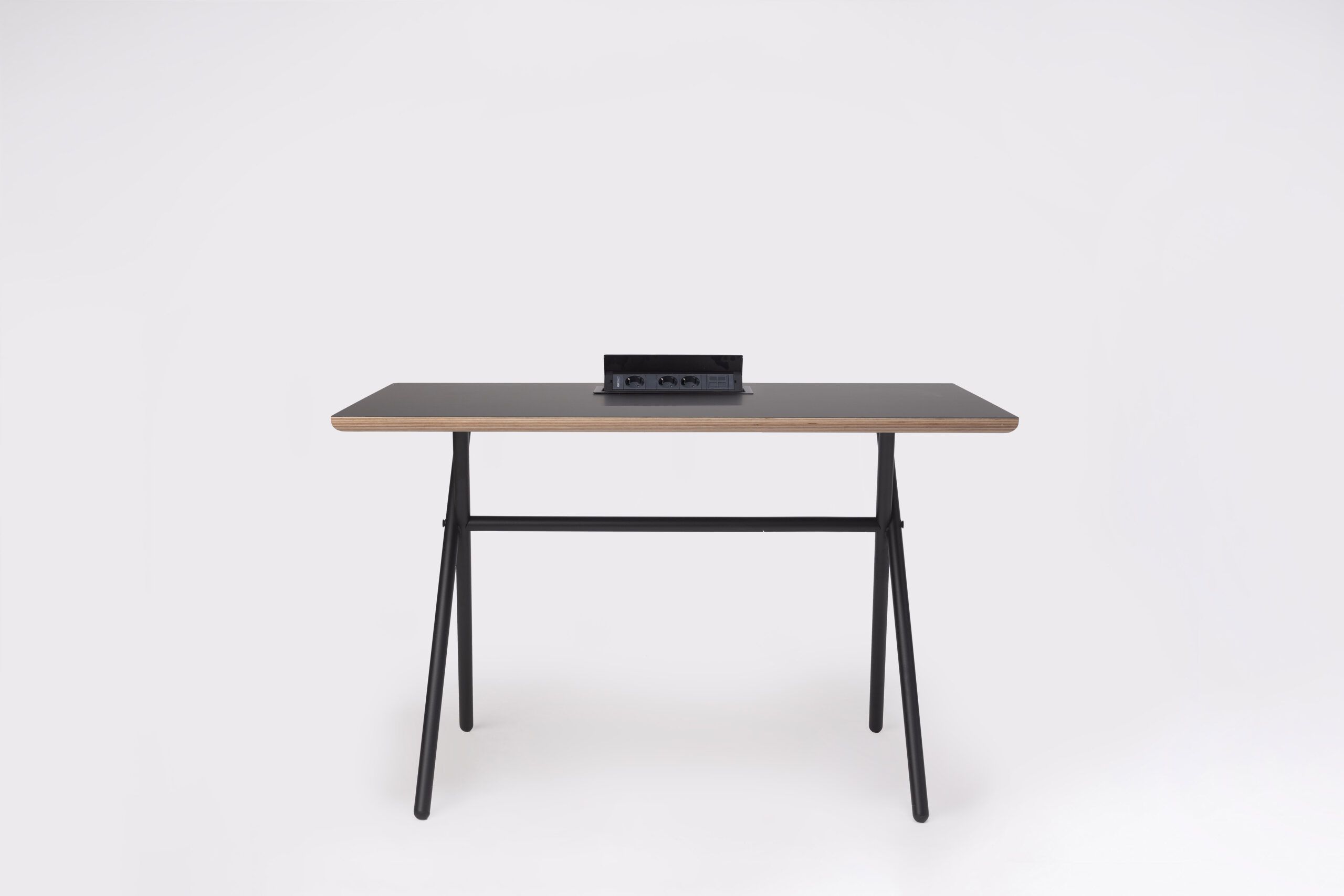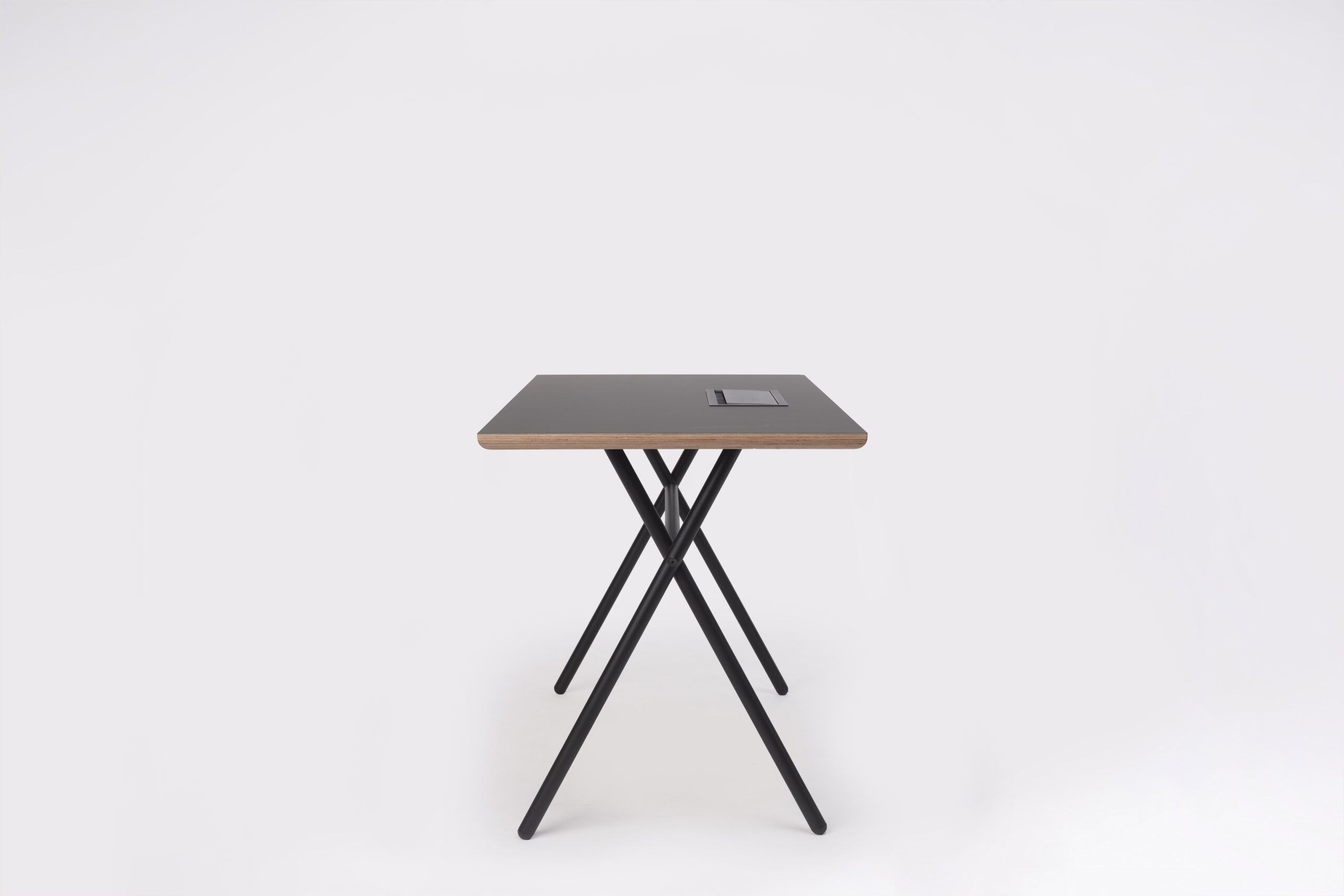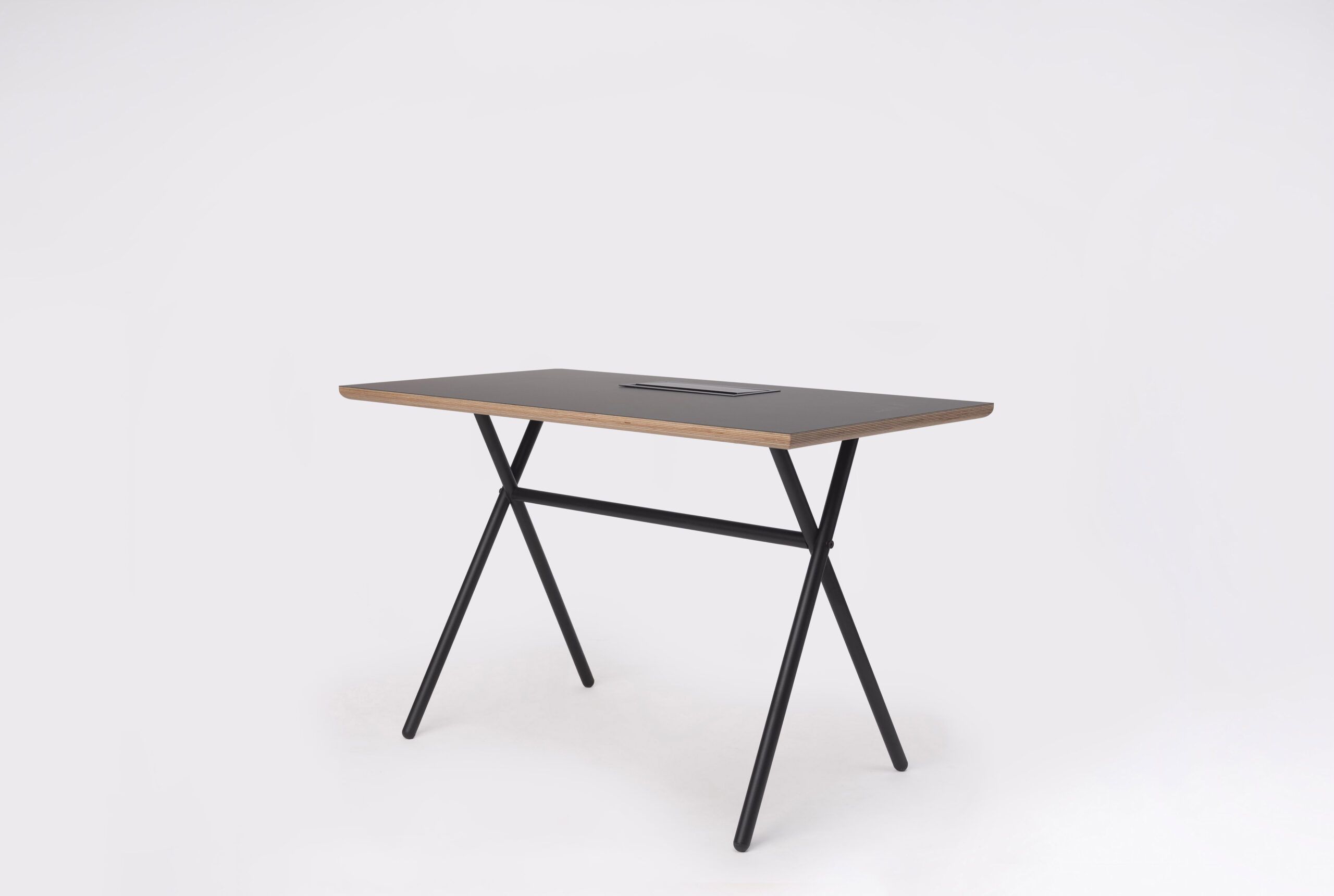 Bei dem Schreibtisch Bai mit gekreuzten Beinen wird die Besonderheit seines ursprünglichen Designs berücksichtigt. Die rationale, futuristische Stahlstruktur ist gekommen, um zu bleiben.