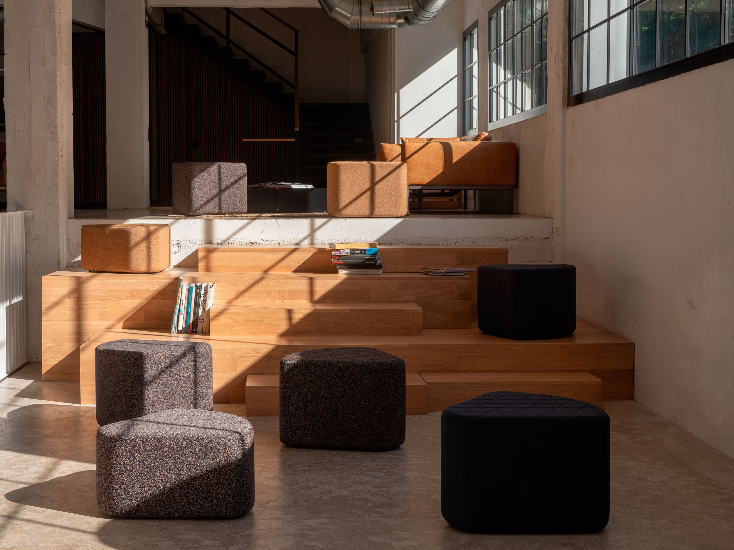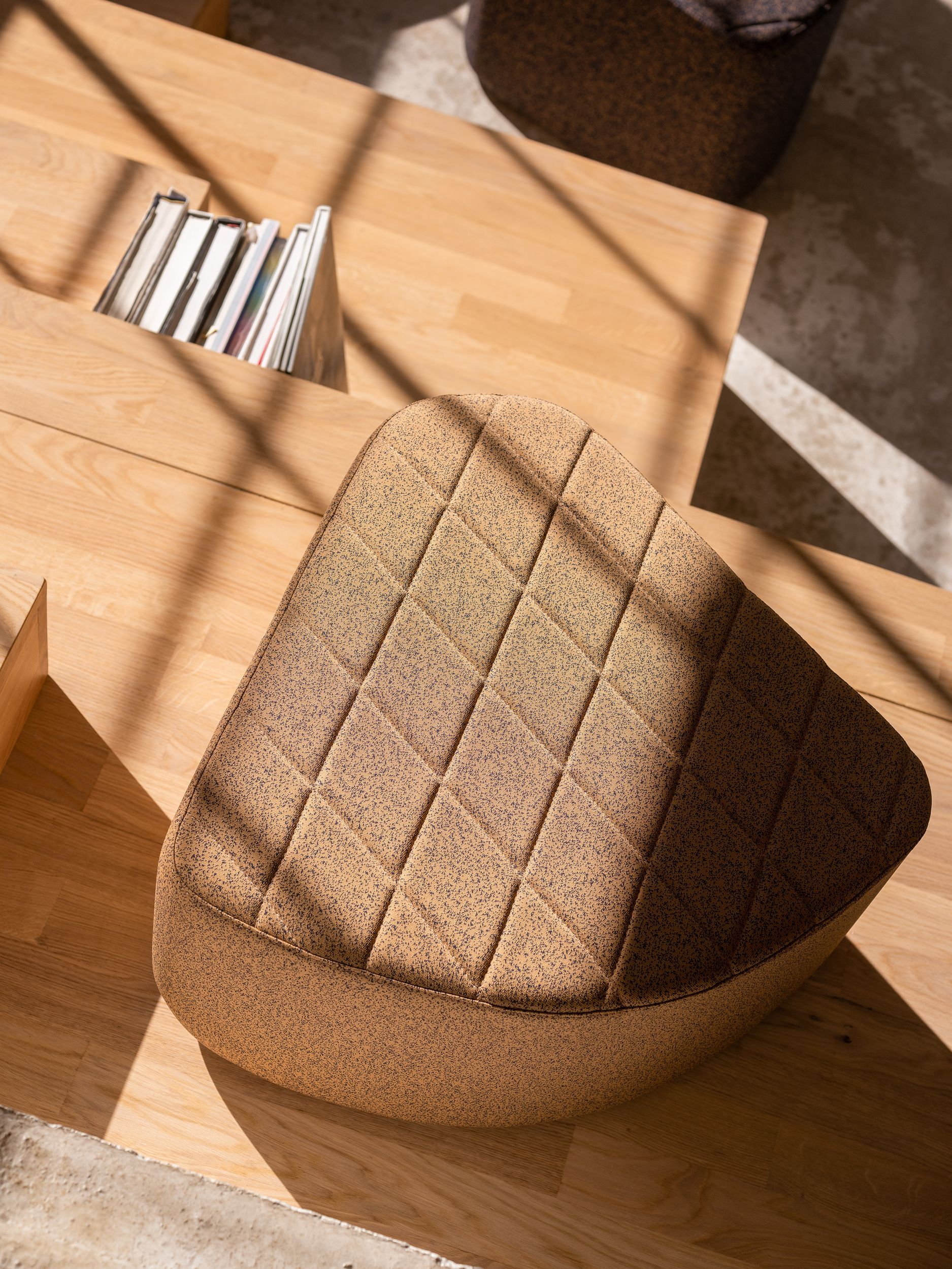 Have fun, enjoy and mix and match… being able to function on their own or as a group makes the Aia puffs form original, changing spaces, for relaxation or meeting up. Their upholsteries, with fine tailor detail and a geometric surface, are available in a wide variety of colours.