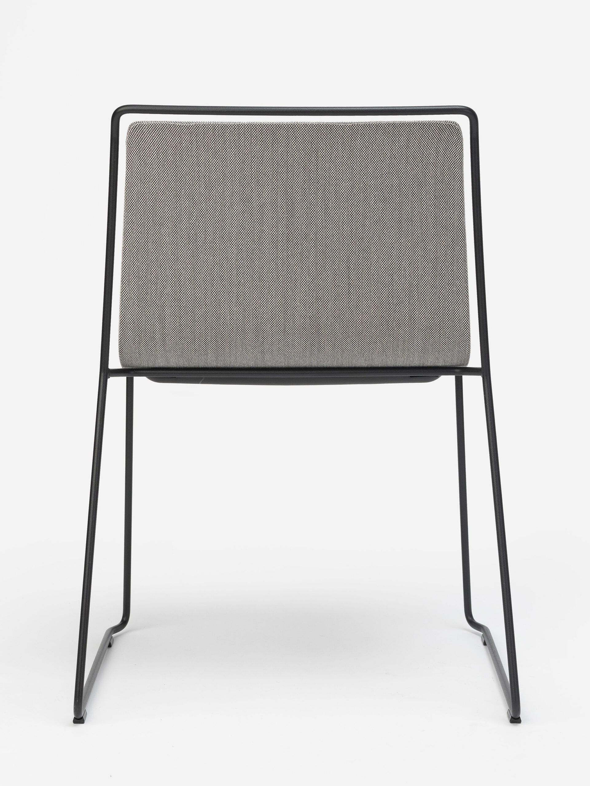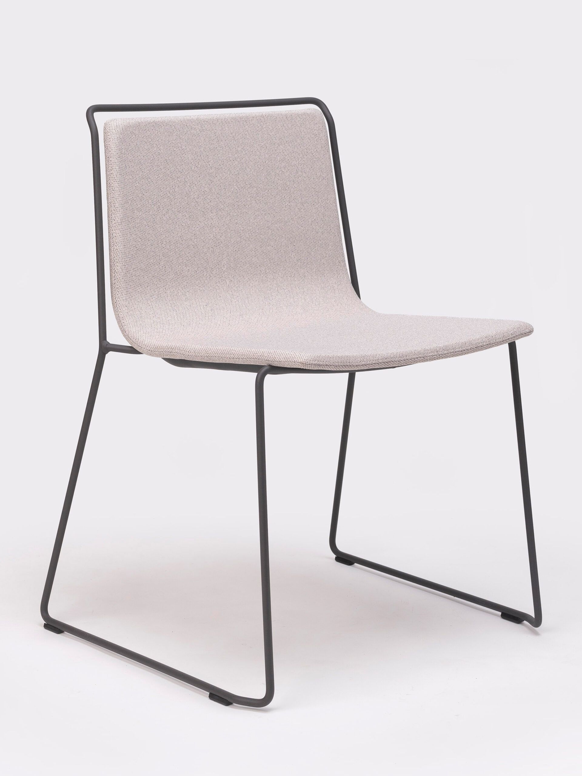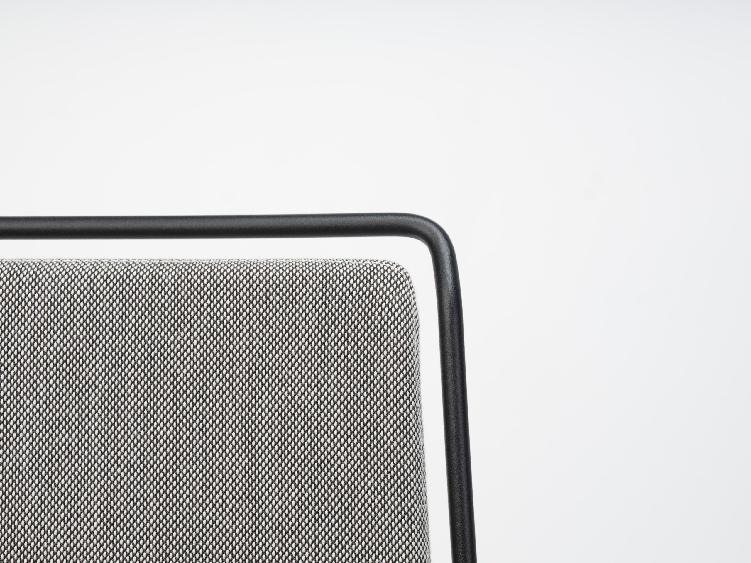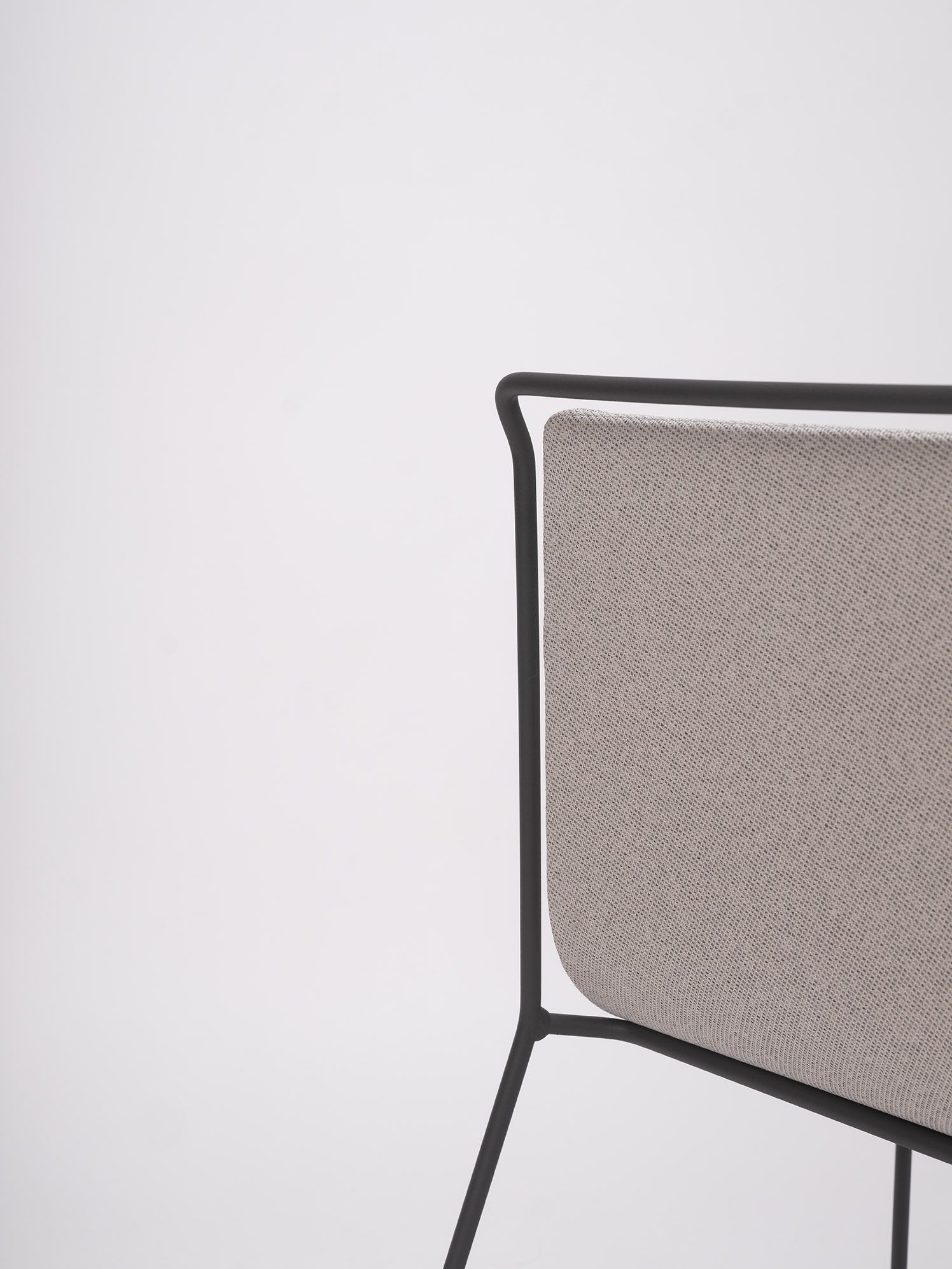 A steel structure surrounds an upholstered shell. Two different materials that come together while respecting their space, leaving an air gap between them that gives the piece a sense of lightness and an elegant yet simple personality.