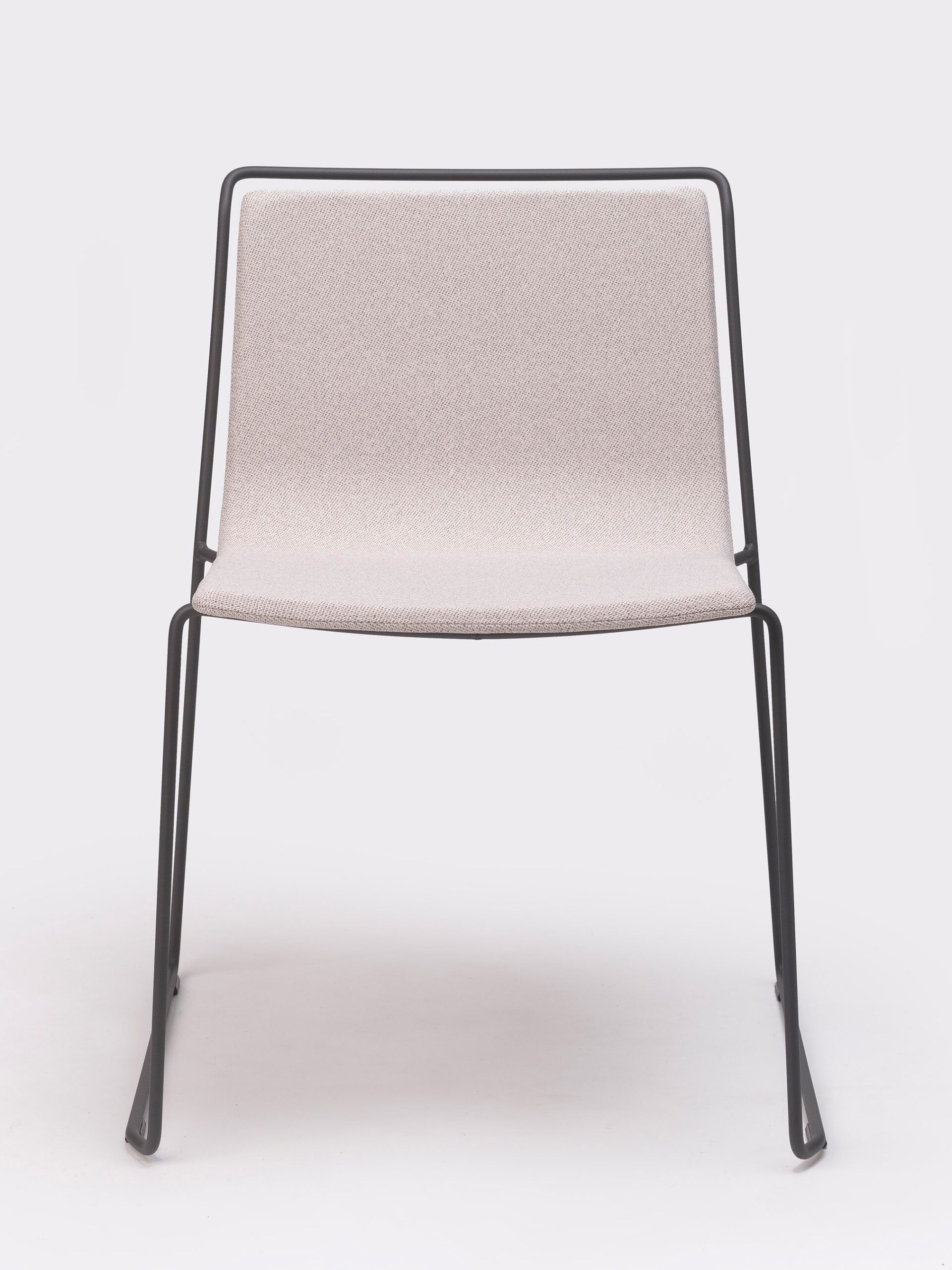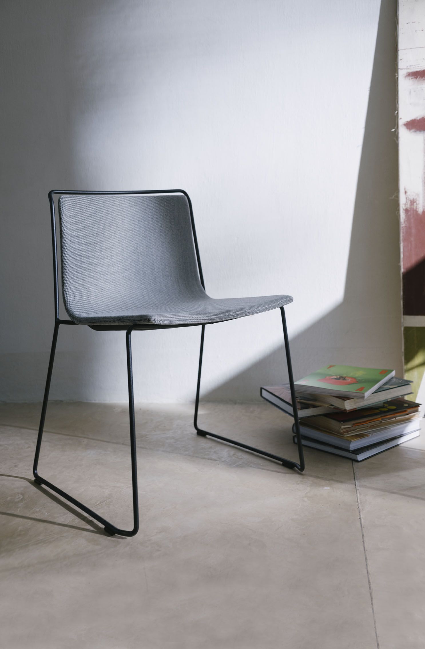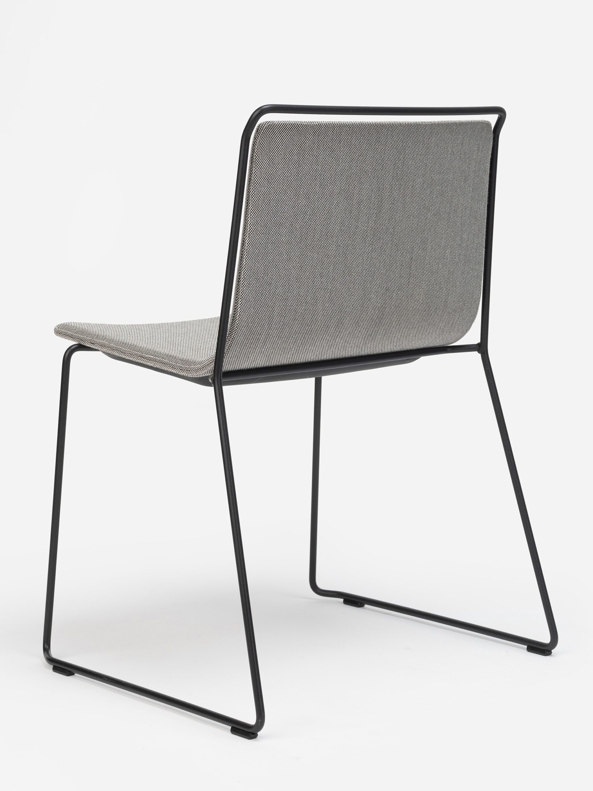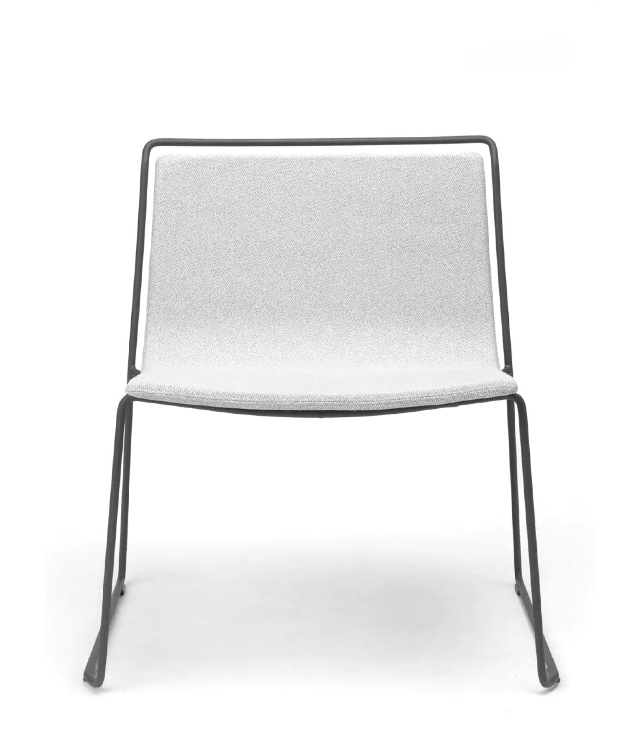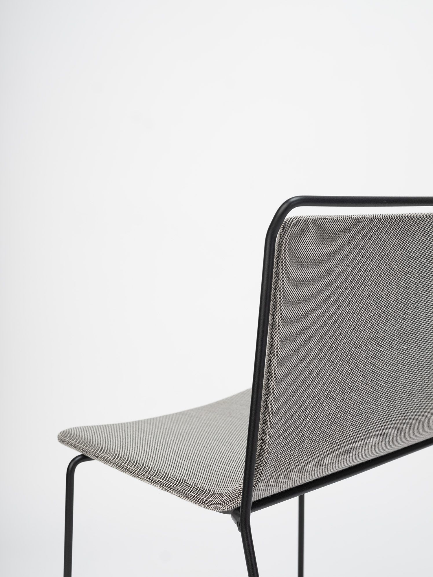 A steel structure surrounds an upholstered shell. Two different materials that come together while respecting their space, leaving an air gap between them that gives the piece a sense of lightness and an elegant yet simple personality.