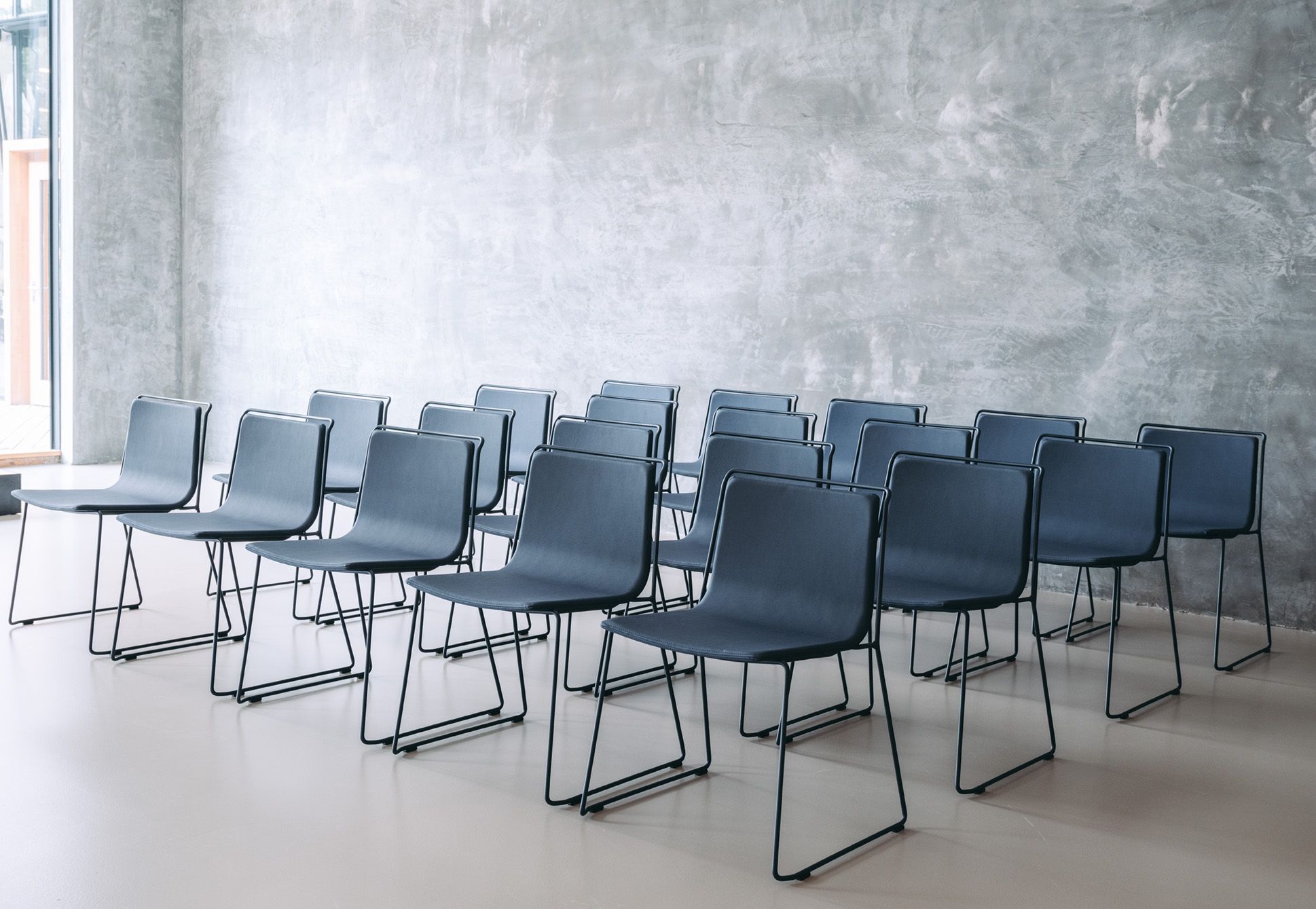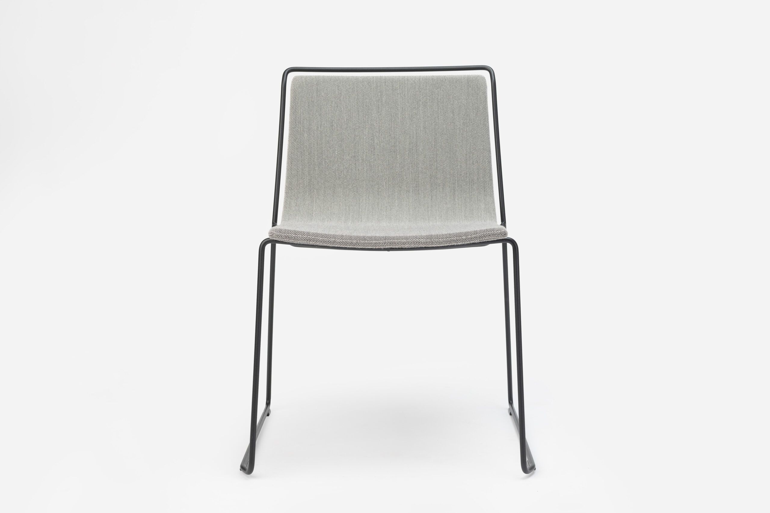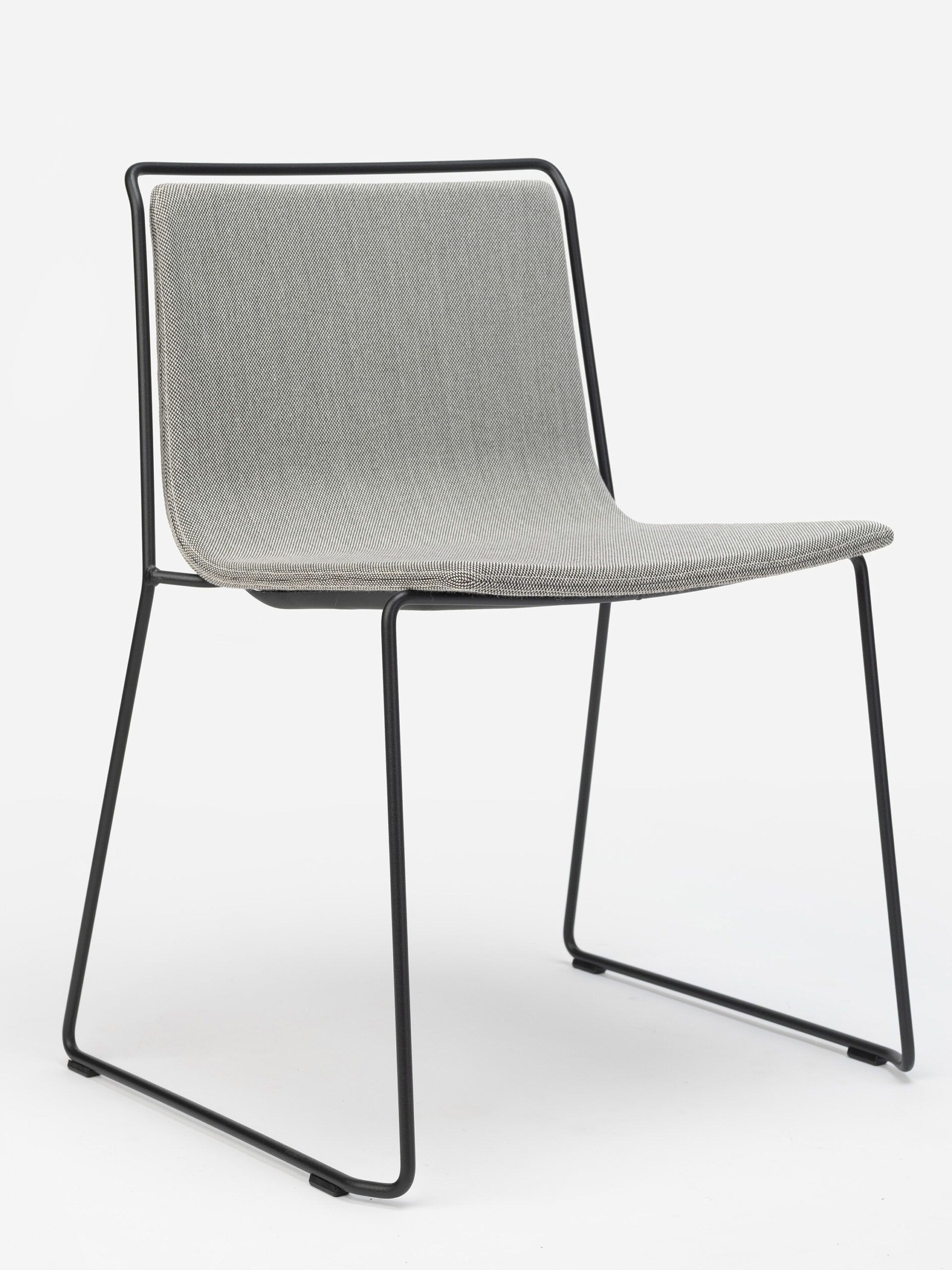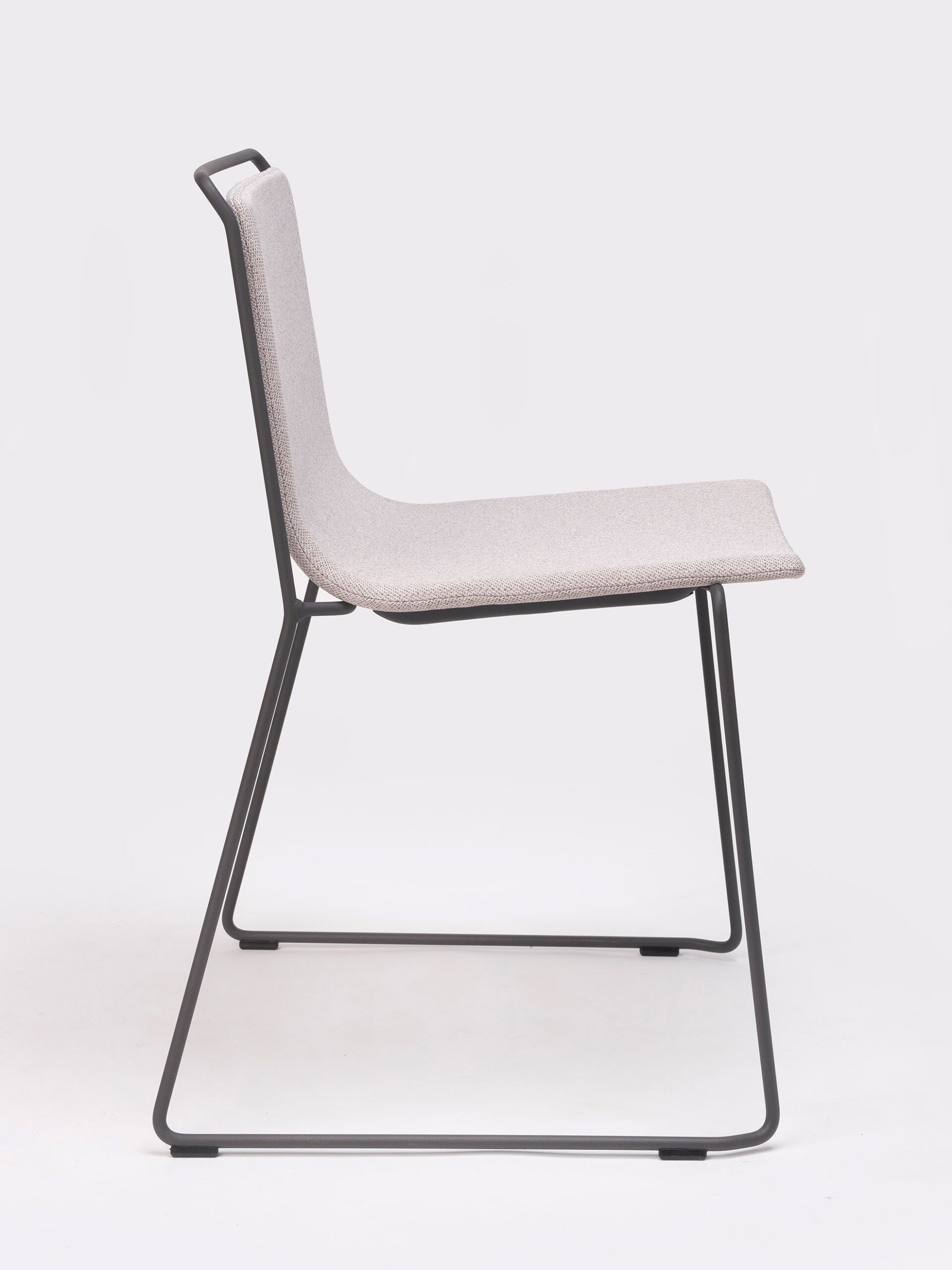A steel structure surrounds an upholstered shell. Two different materials that come together while respecting their space, leaving an air gap between them that gives the piece a sense of lightness and an elegant yet simple personality.
