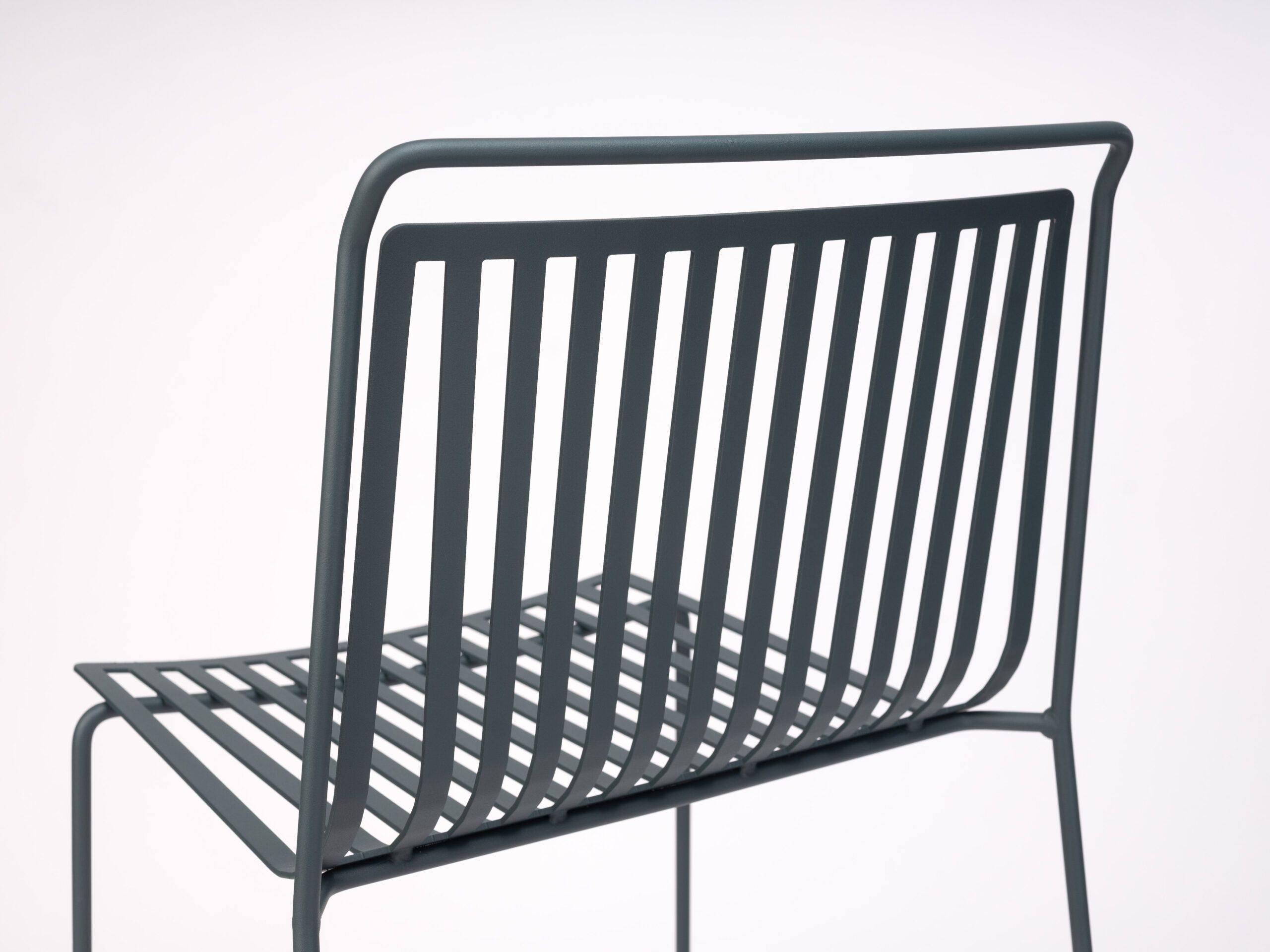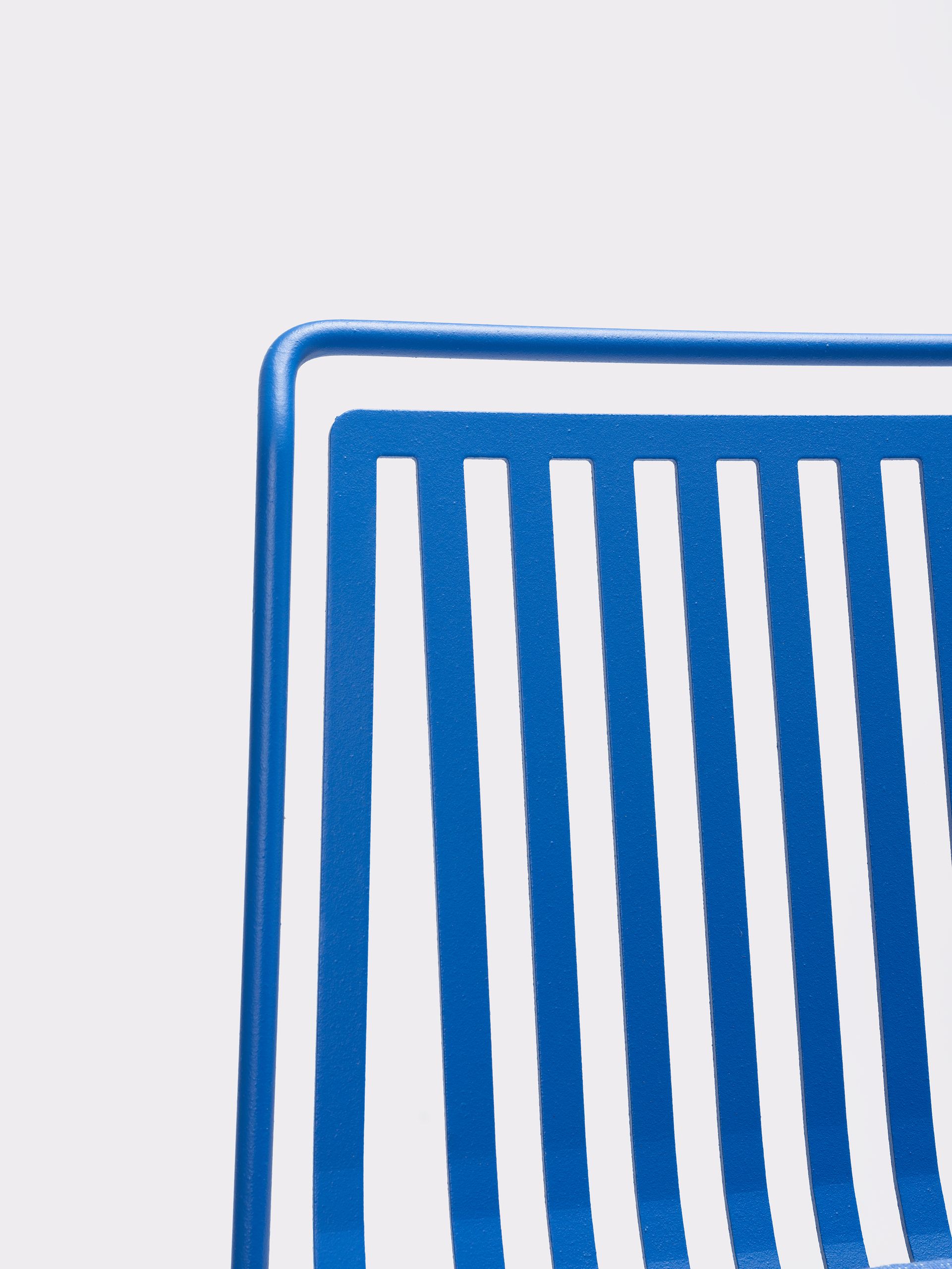 Alo Outdoor, with its well known steel structure and its seat in steel ribbons that seem as if they were floating, giving the chair a sense of lightness and elegance. Available in all our epoxy colours.