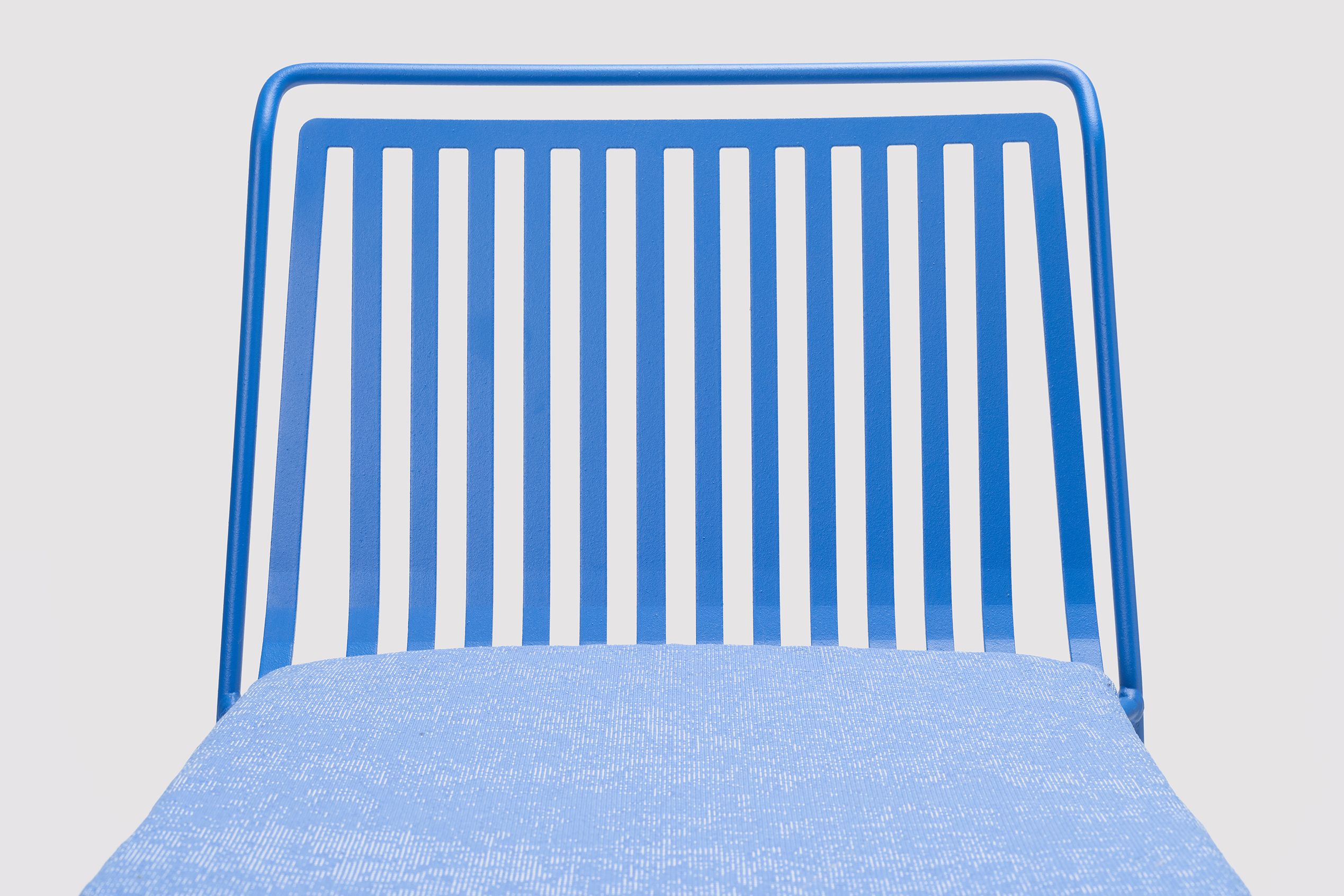 Structure made of solid cylindrical rod, 12 mm in diameter, in recycled steel with epoxy color finish. Cushion accessory option. For more information, consult the technical sheet.