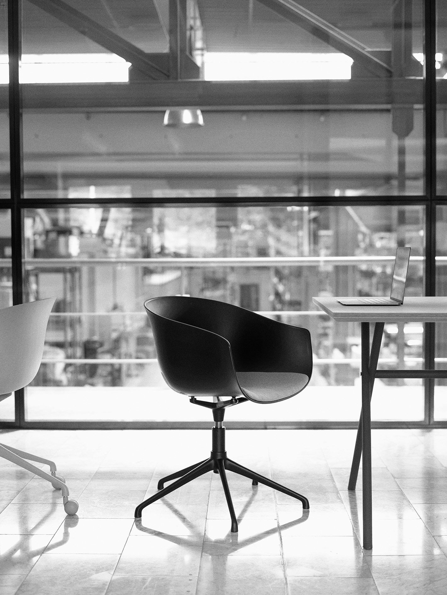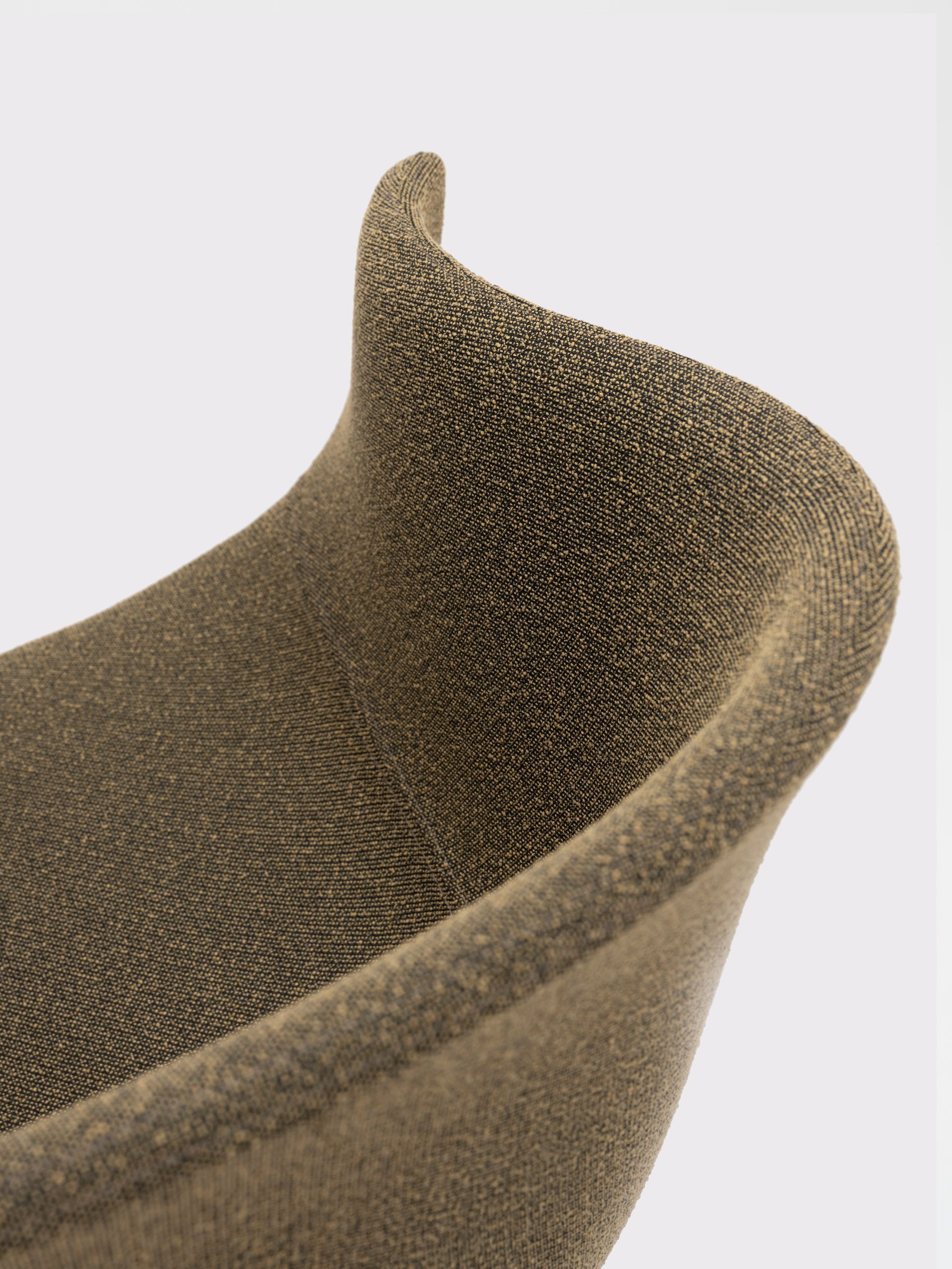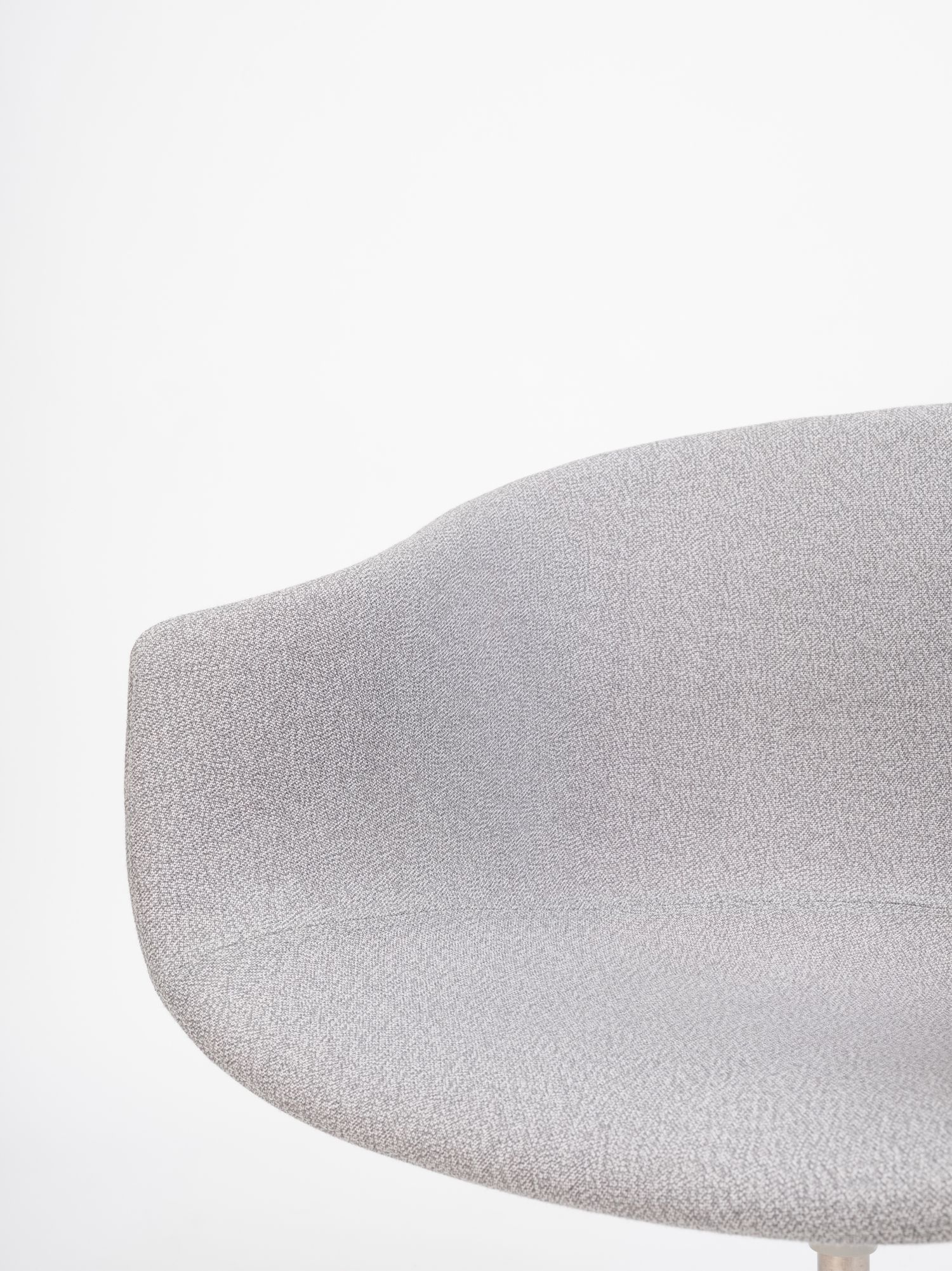 Generous proportions and wraparound lines, a versatile piece that has a noble and welcoming appearance. The Bai swivel chair, with its steel structure that, holds up the seat with its soft and organic curves in polypropylene or upholstered.