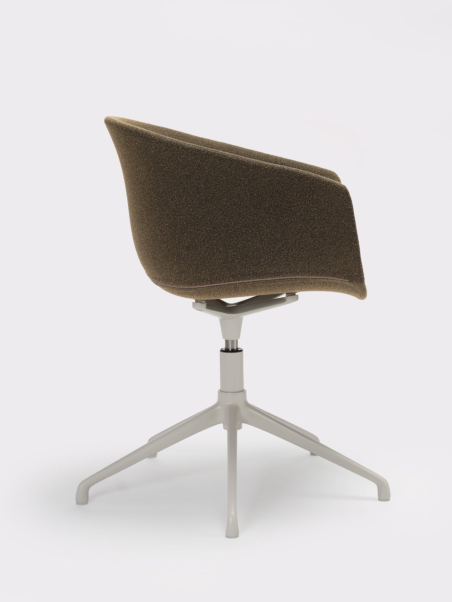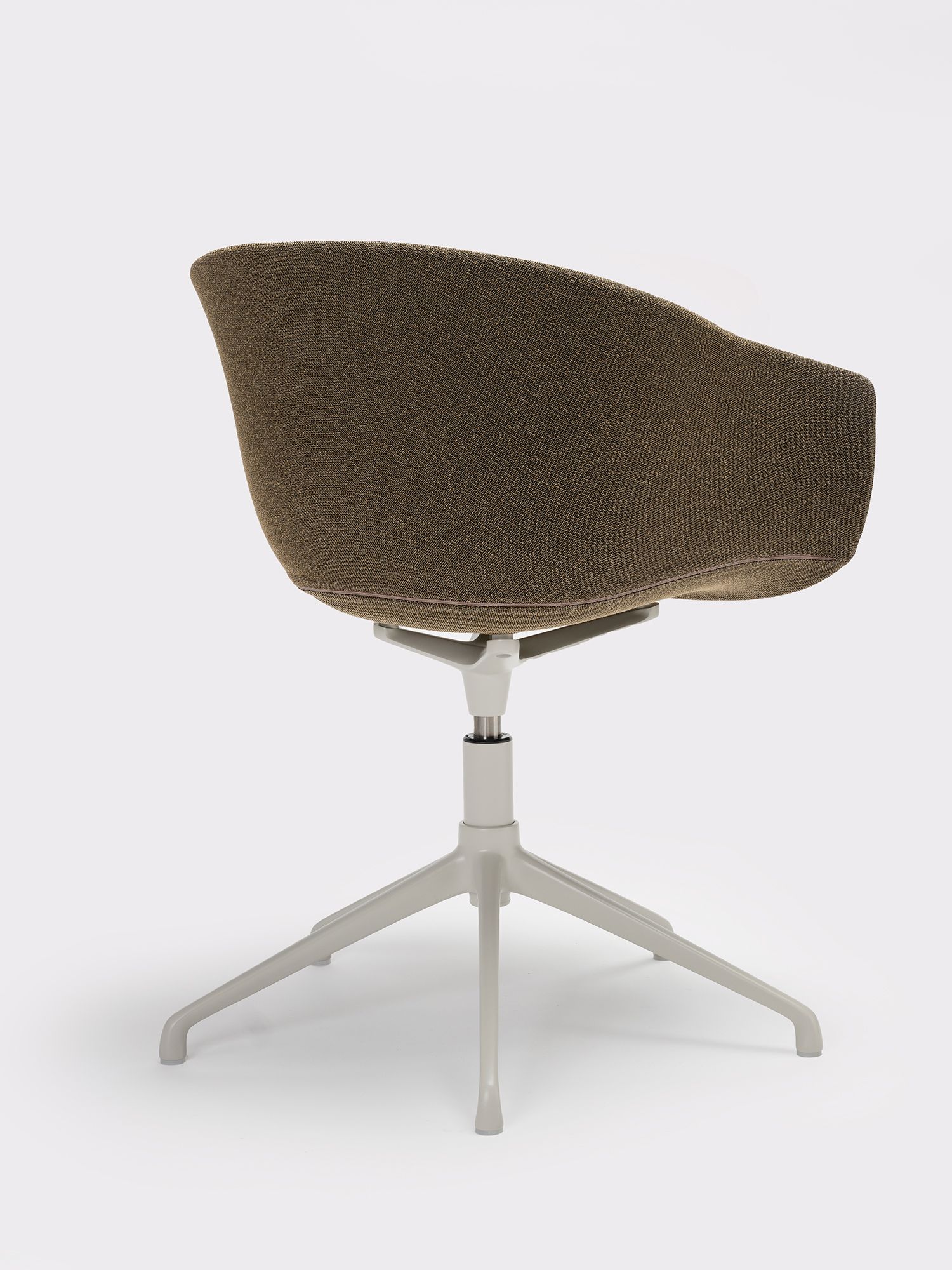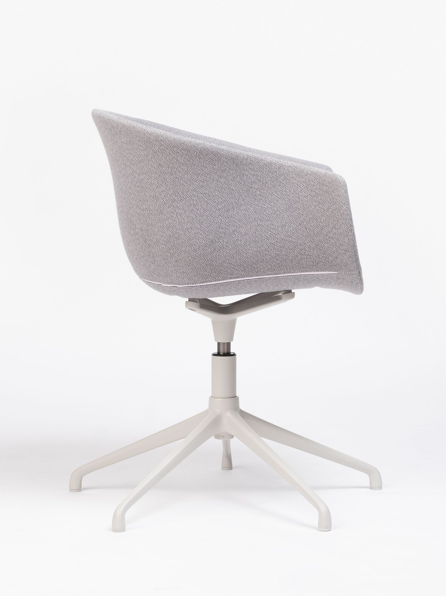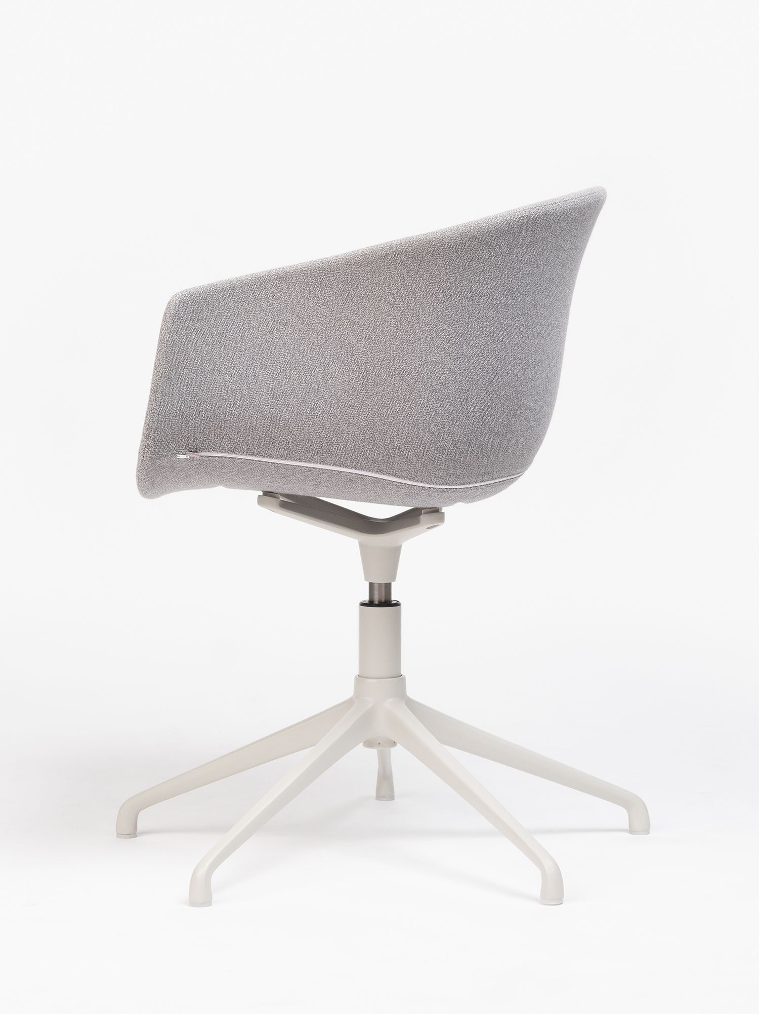 Base in variable thickness injected aluminum. Finish options for the shell include matte textured polypropylene, upholstered seat, or fully upholstered options. For more information, consult the technical sheet.