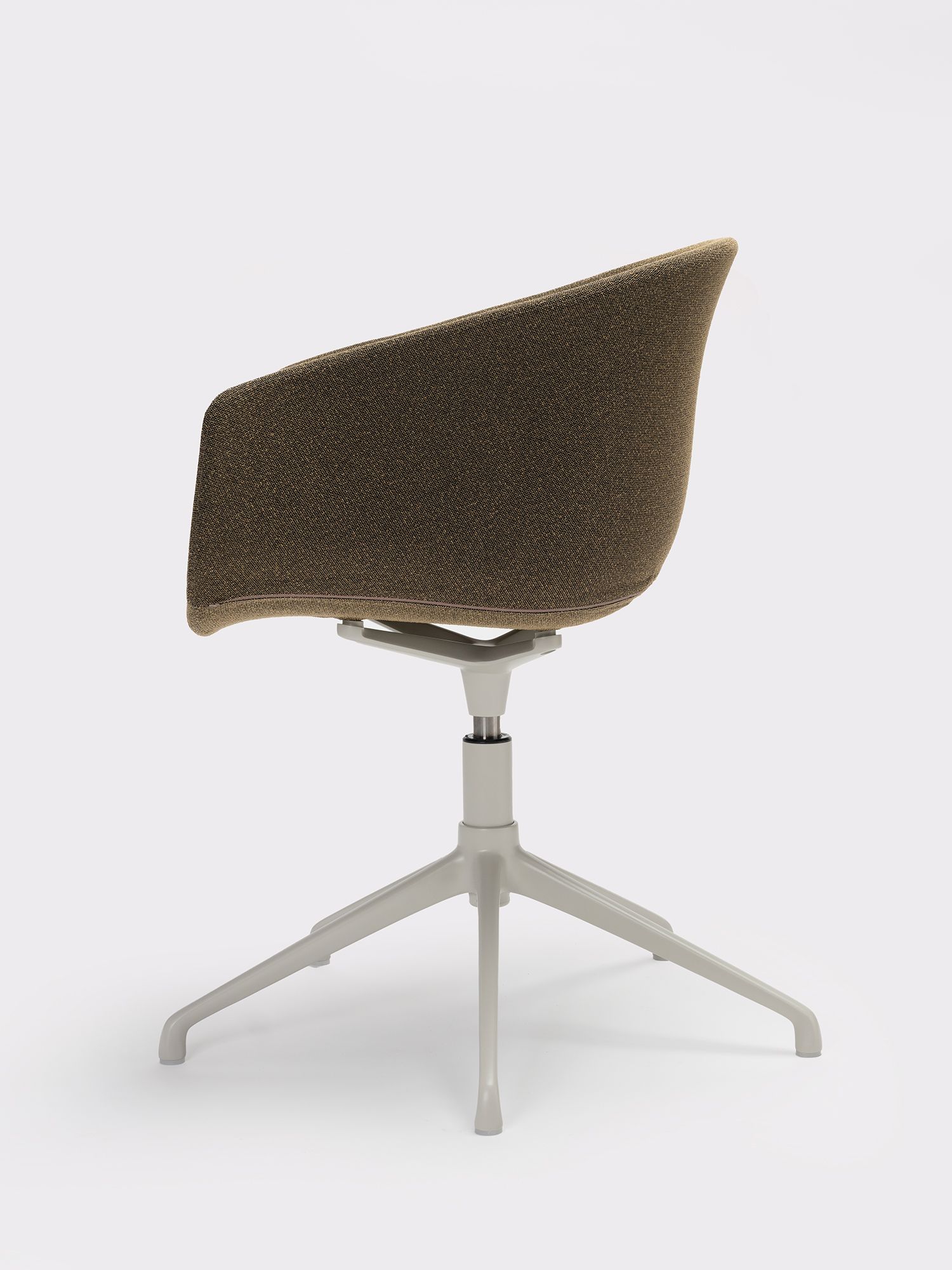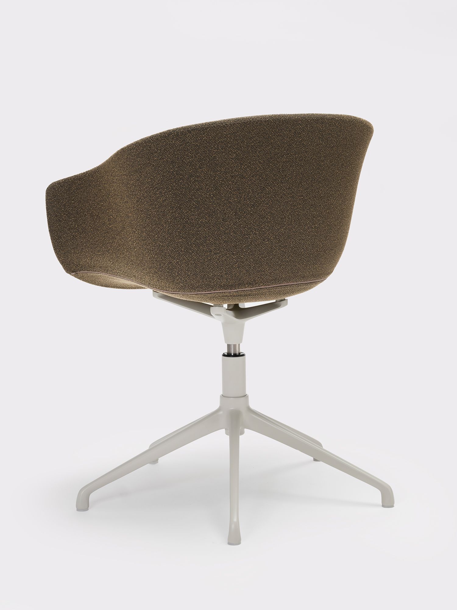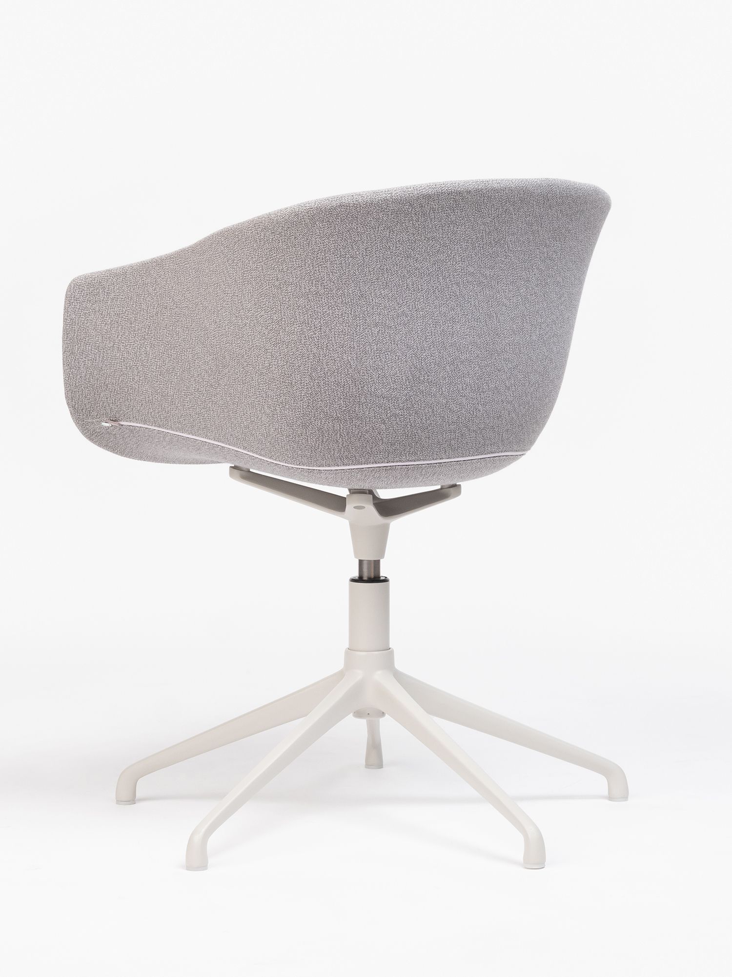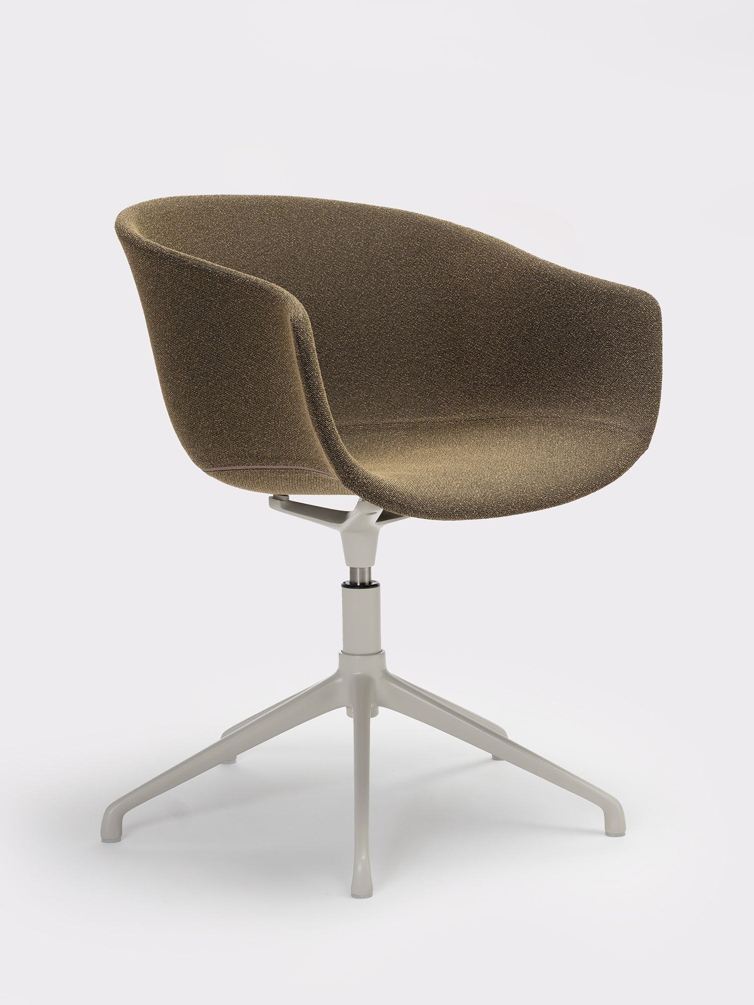 Base in variable thickness injected aluminum. Finish options for the shell include matte textured polypropylene, upholstered seat, or fully upholstered options. For more information, consult the technical sheet.