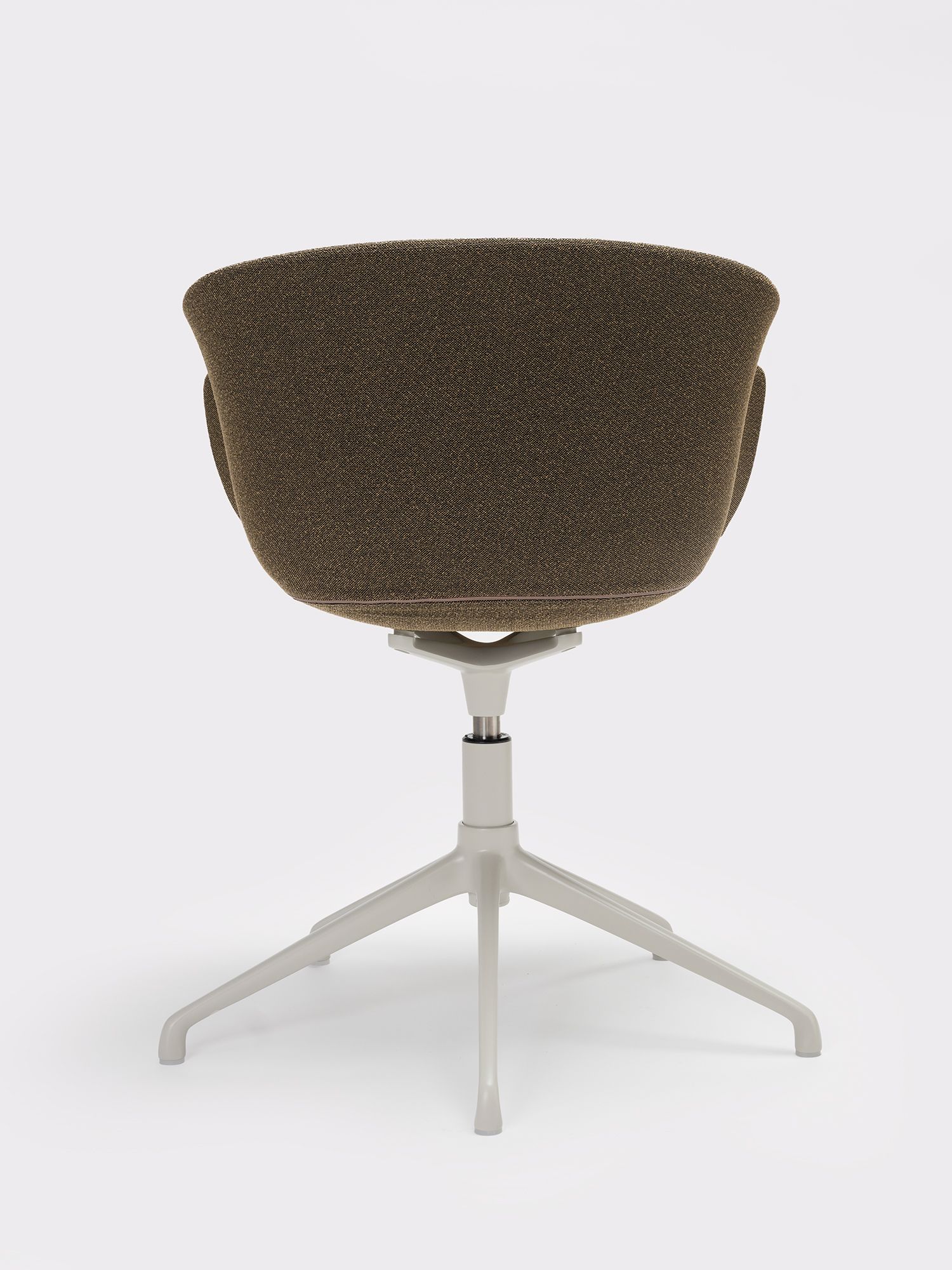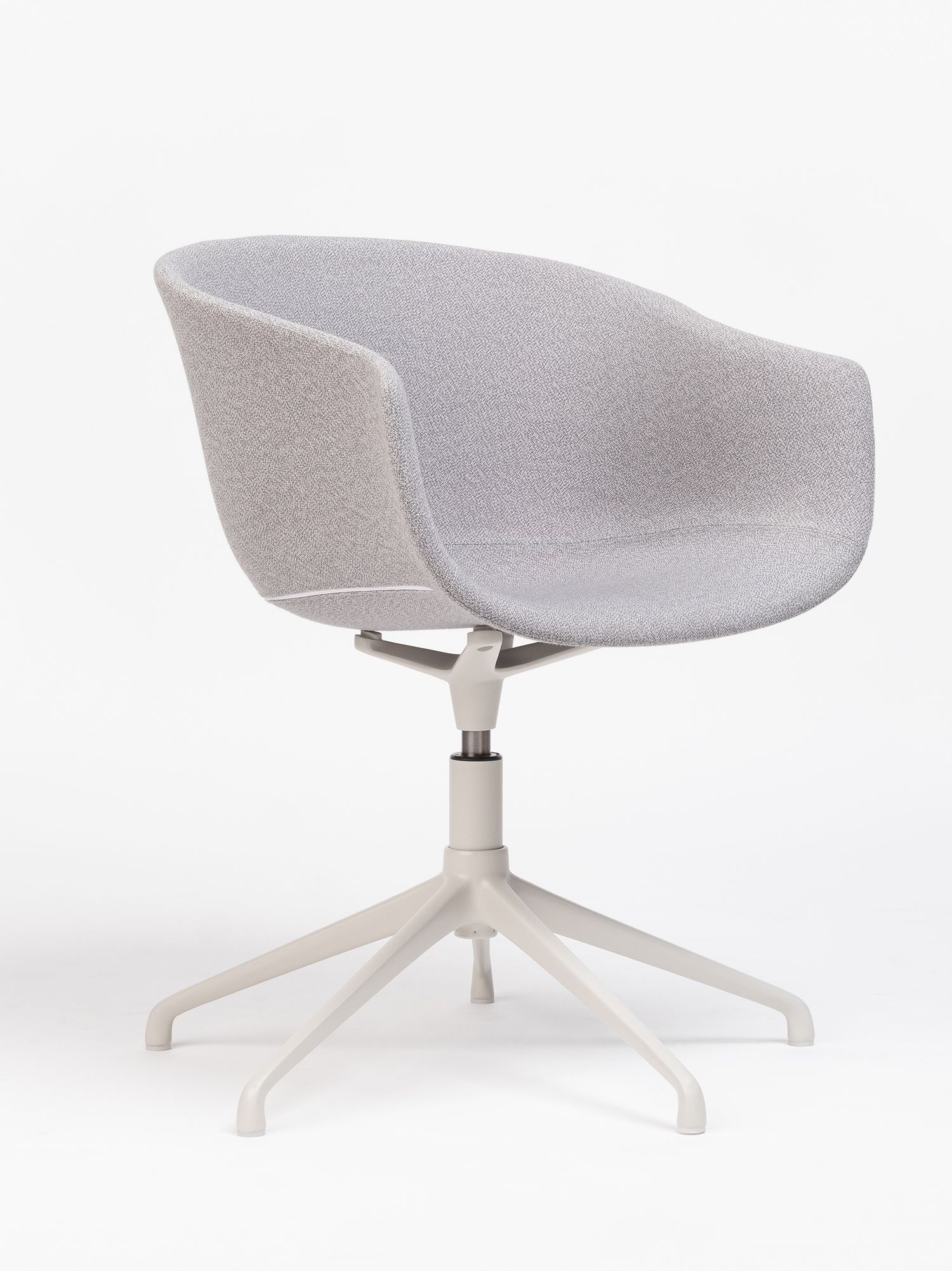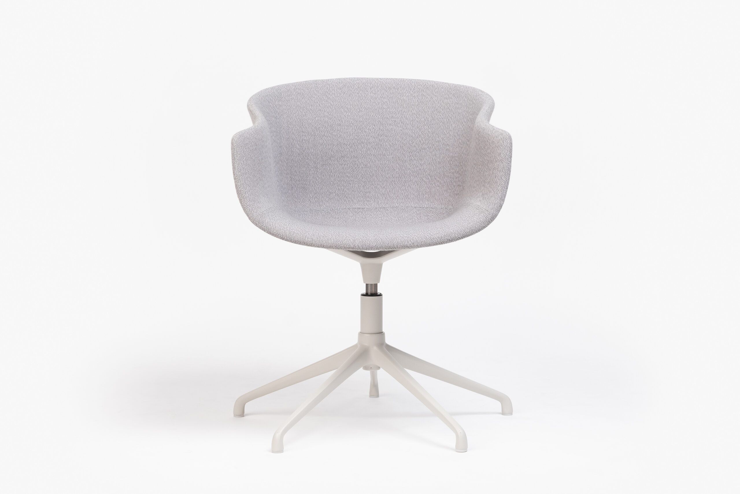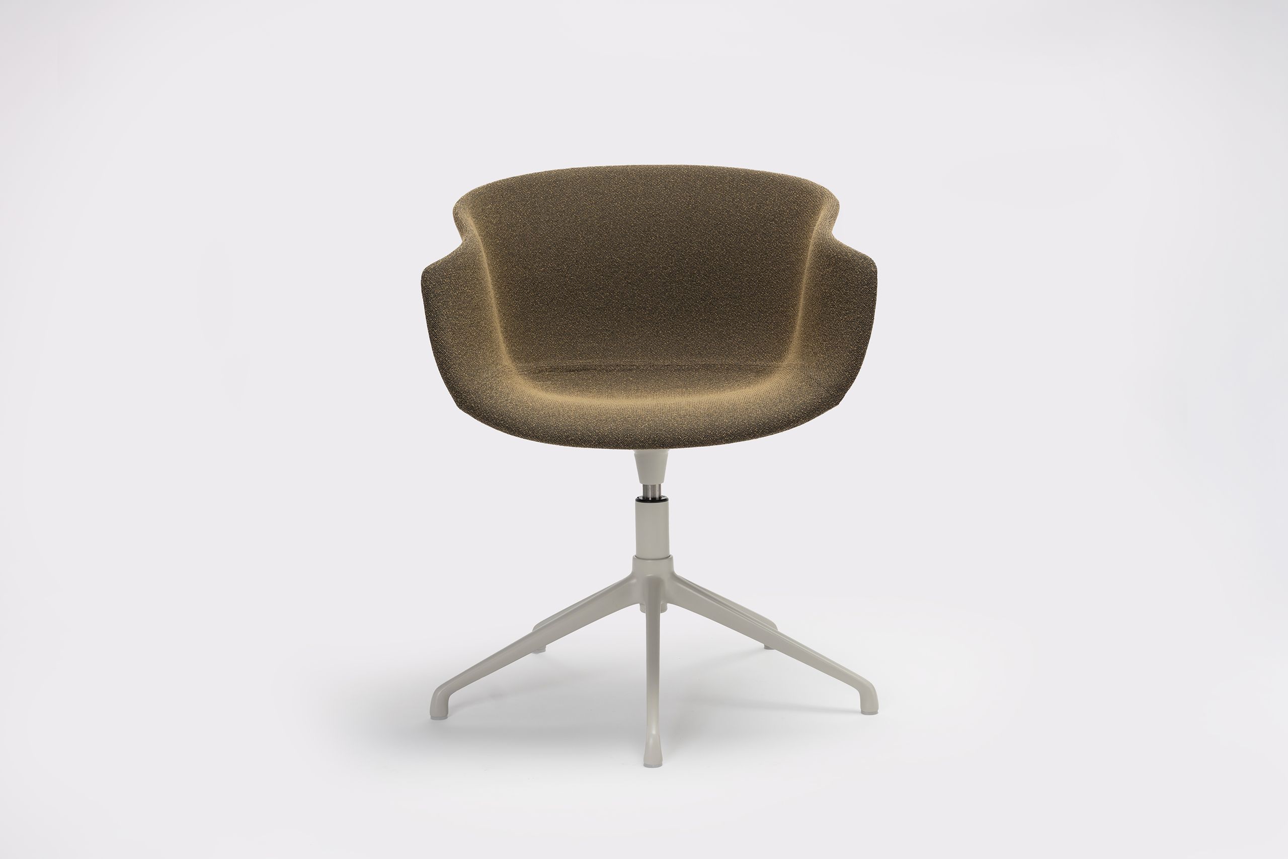 Base in variable thickness injected aluminum. Finish options for the shell include matte textured polypropylene, upholstered seat, or fully upholstered options. For more information, consult the technical sheet.