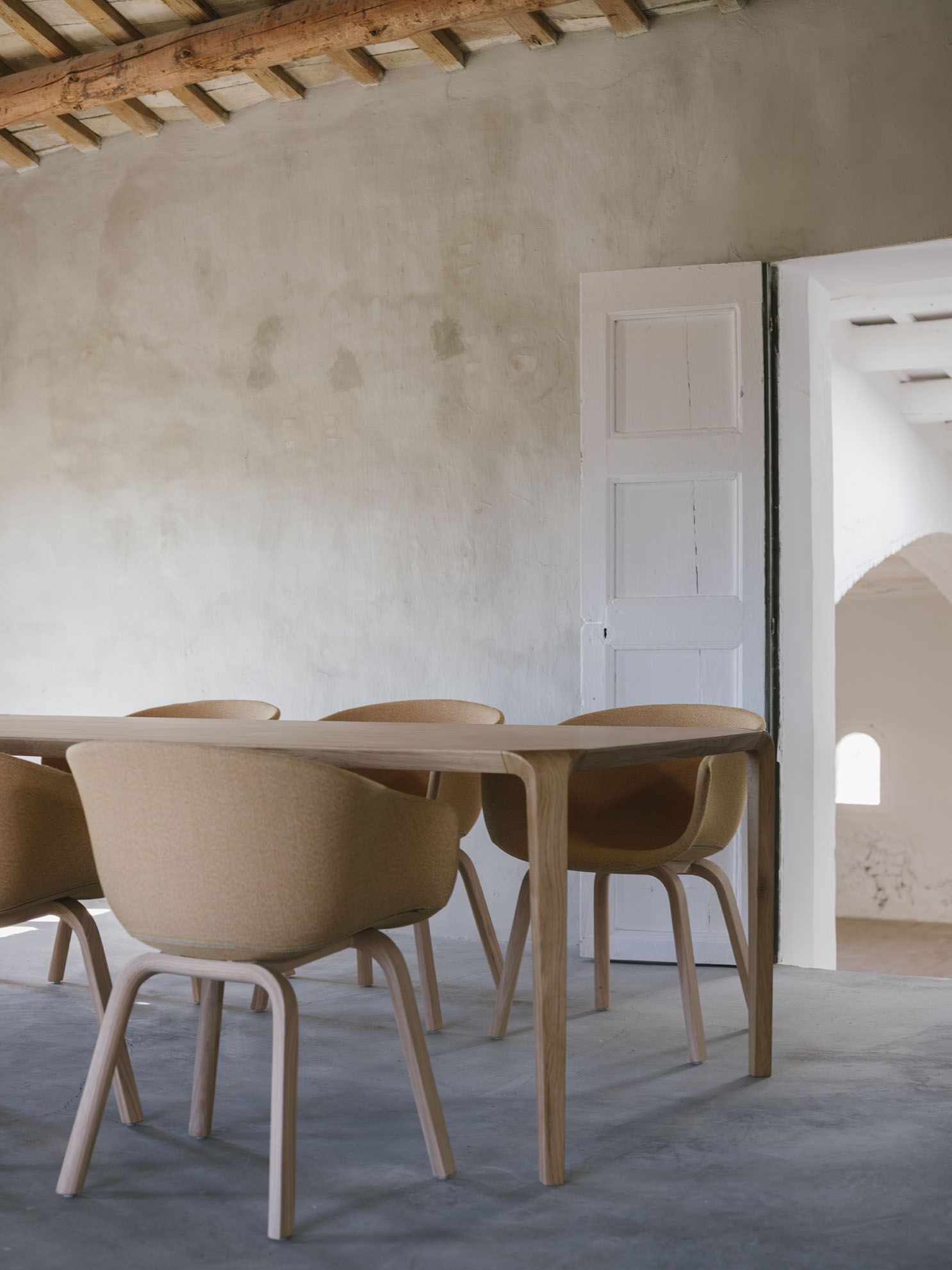 Generous proportions and wraparound lines, a versatile piece that has a noble and welcoming appearance. The Bai wood chair, a warm and sympathetic chair, that reflects our experience in woodworking.