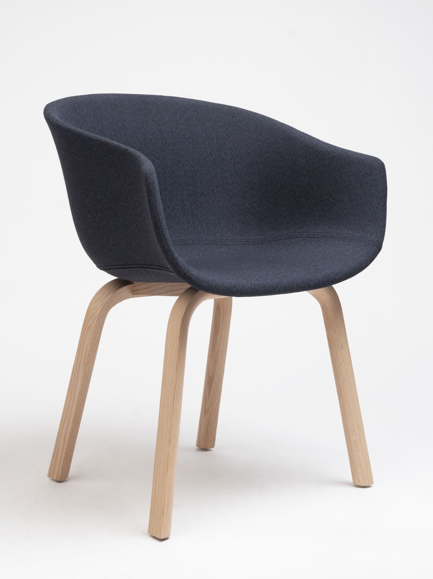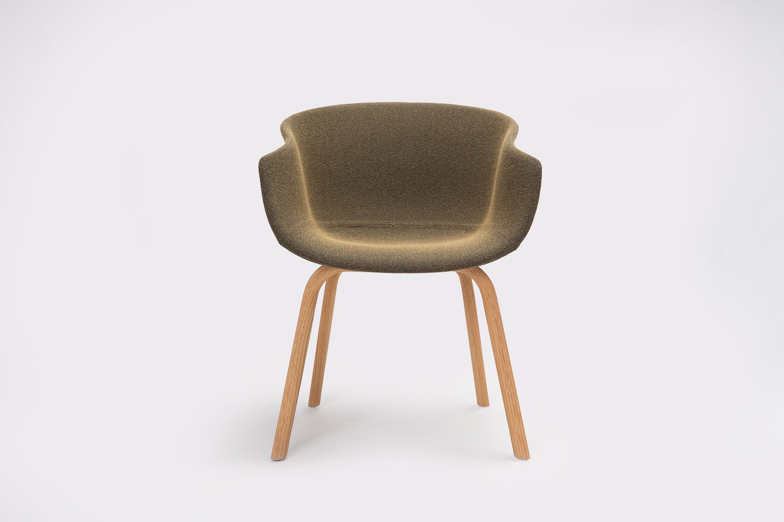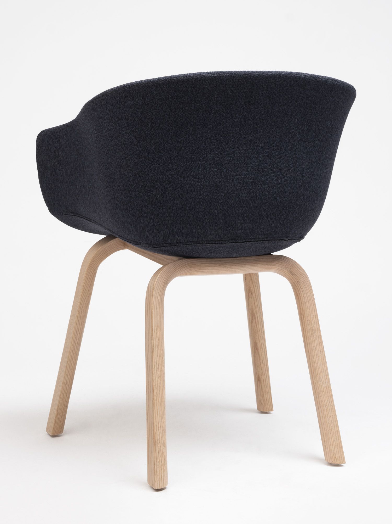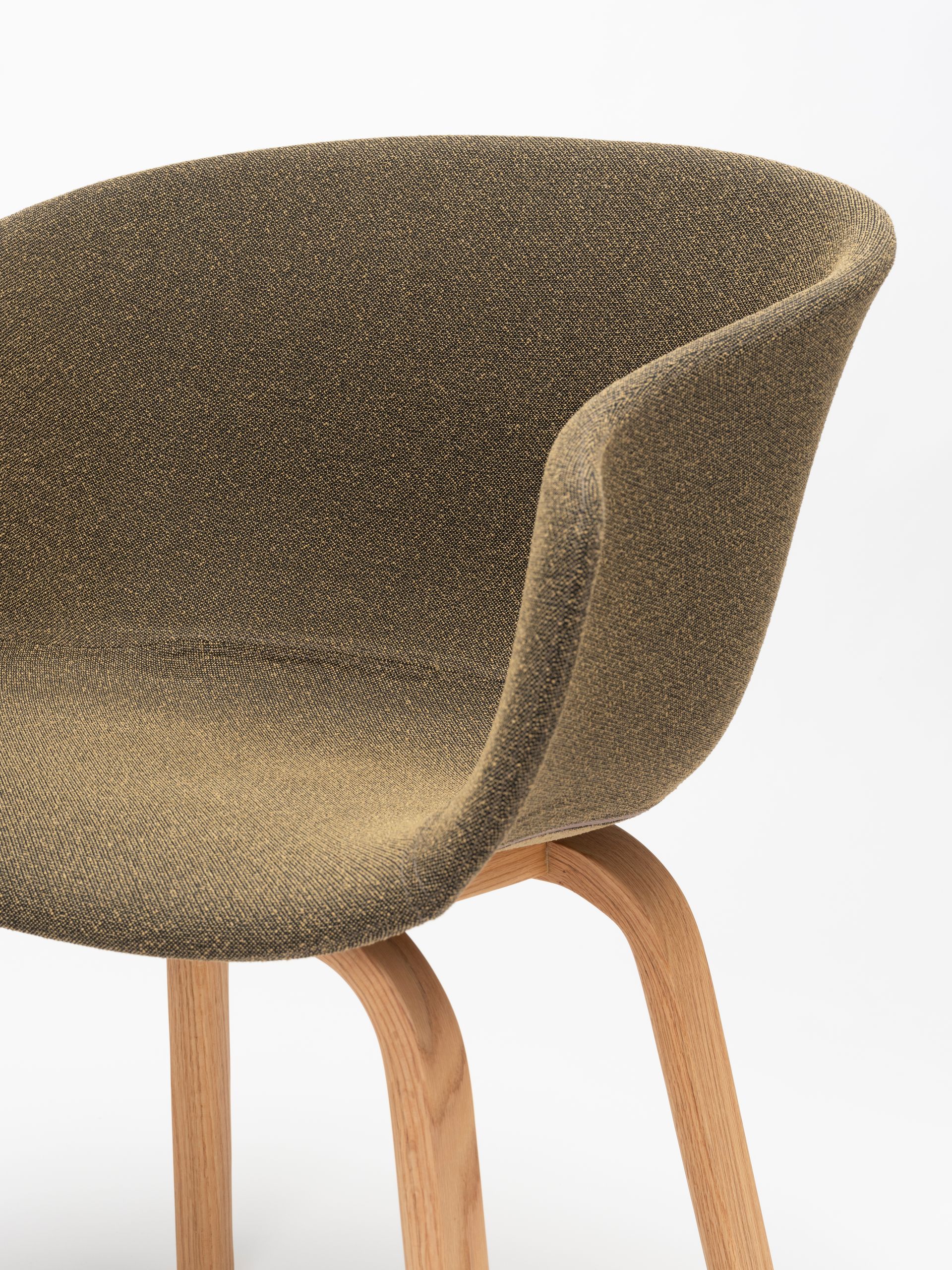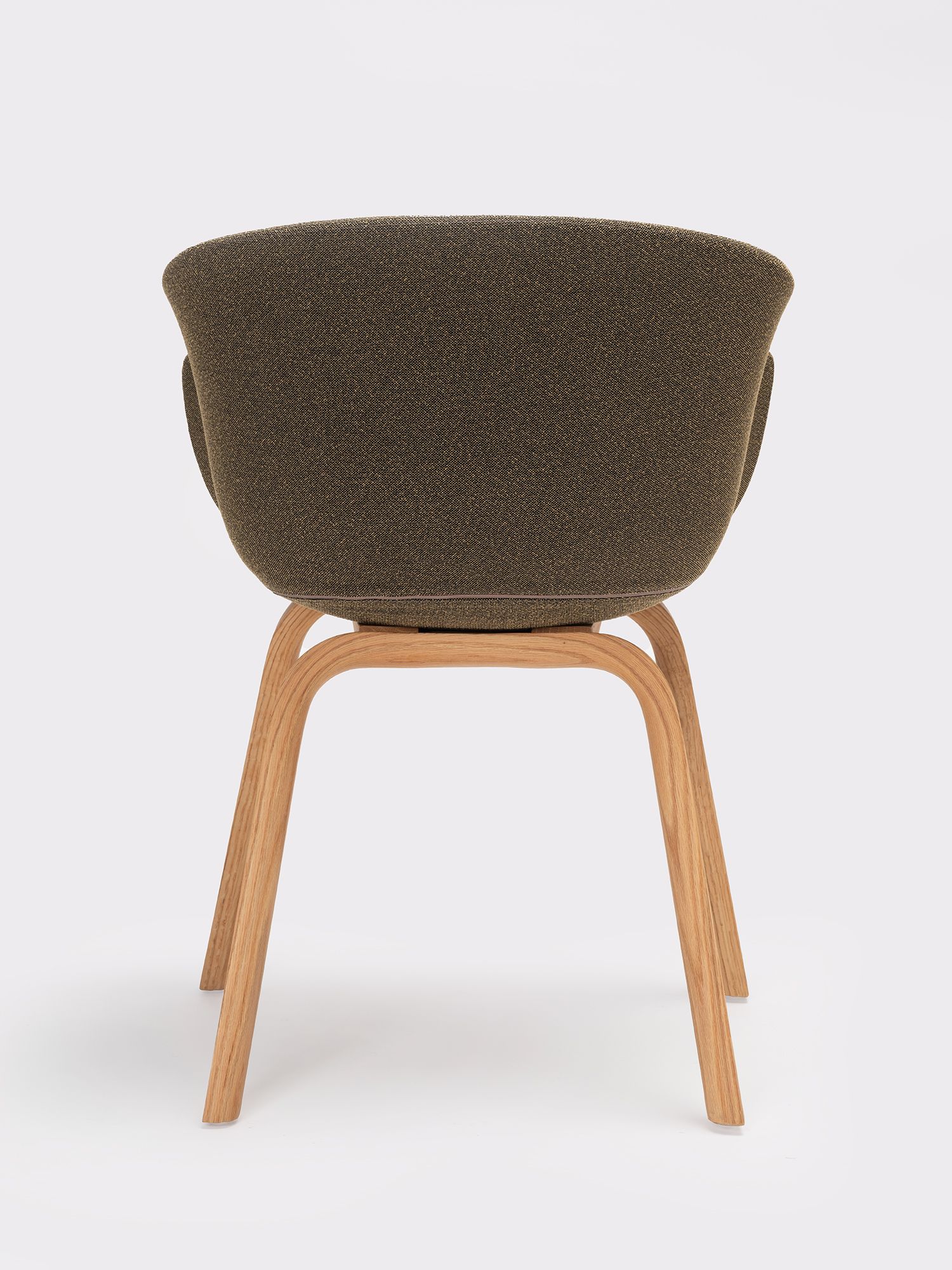 Structure in solid beech or oak wood, machined and curved through a specialized steaming and pressing process. Finish options for the shell include matte textured polypropylene, upholstered seat, or fully upholstered options. For more information, consult the technical sheet.