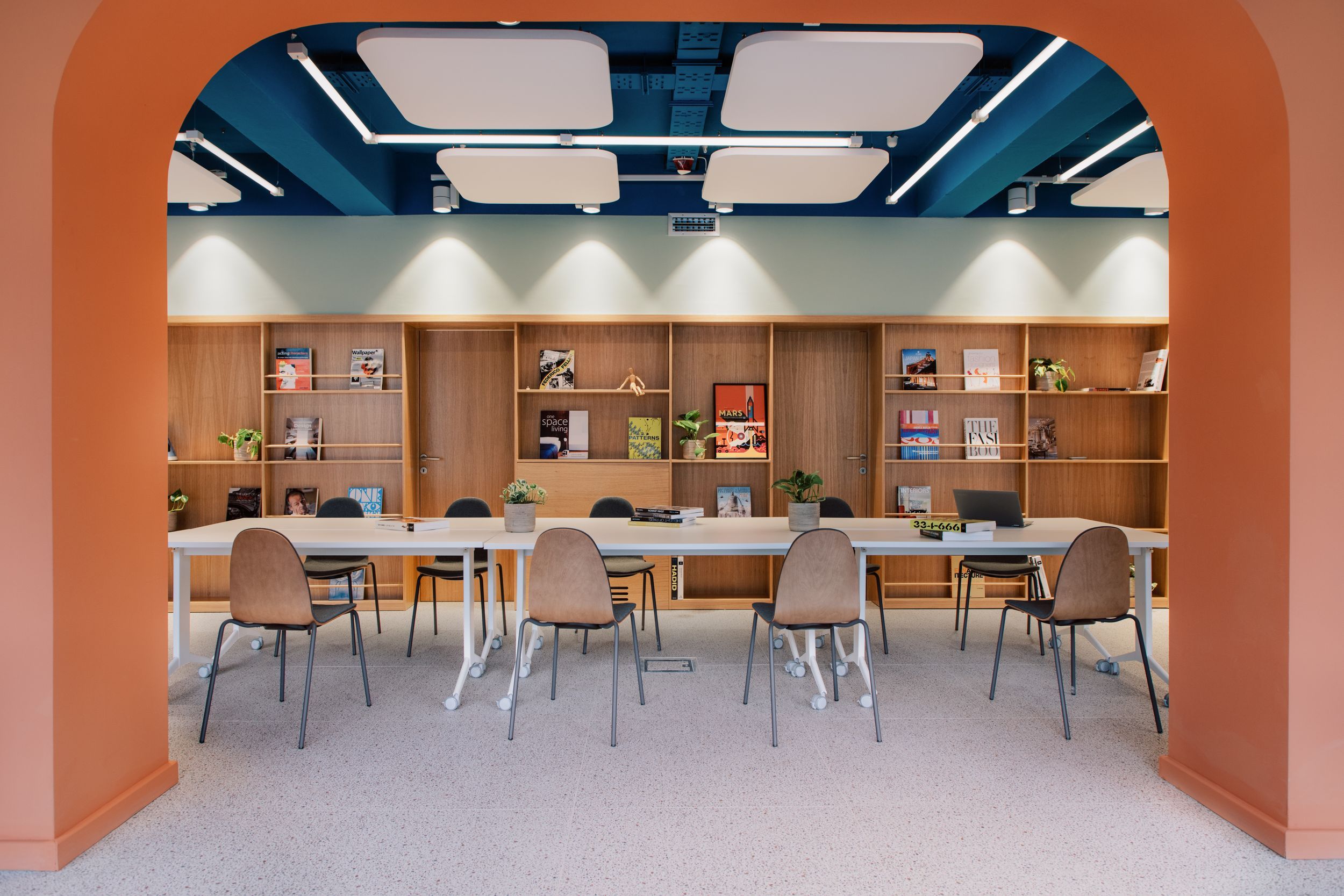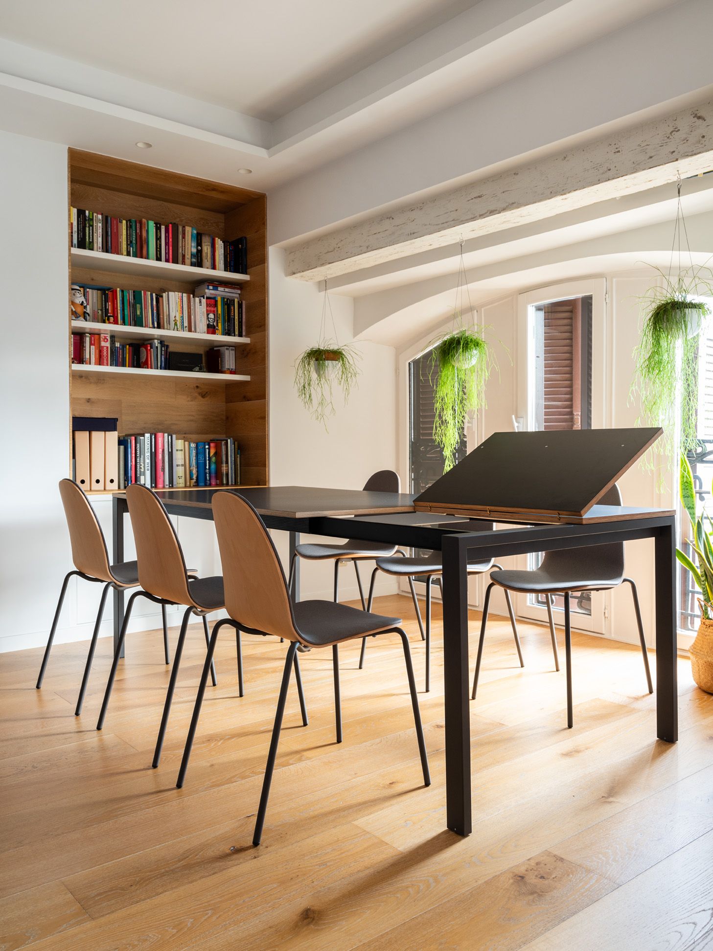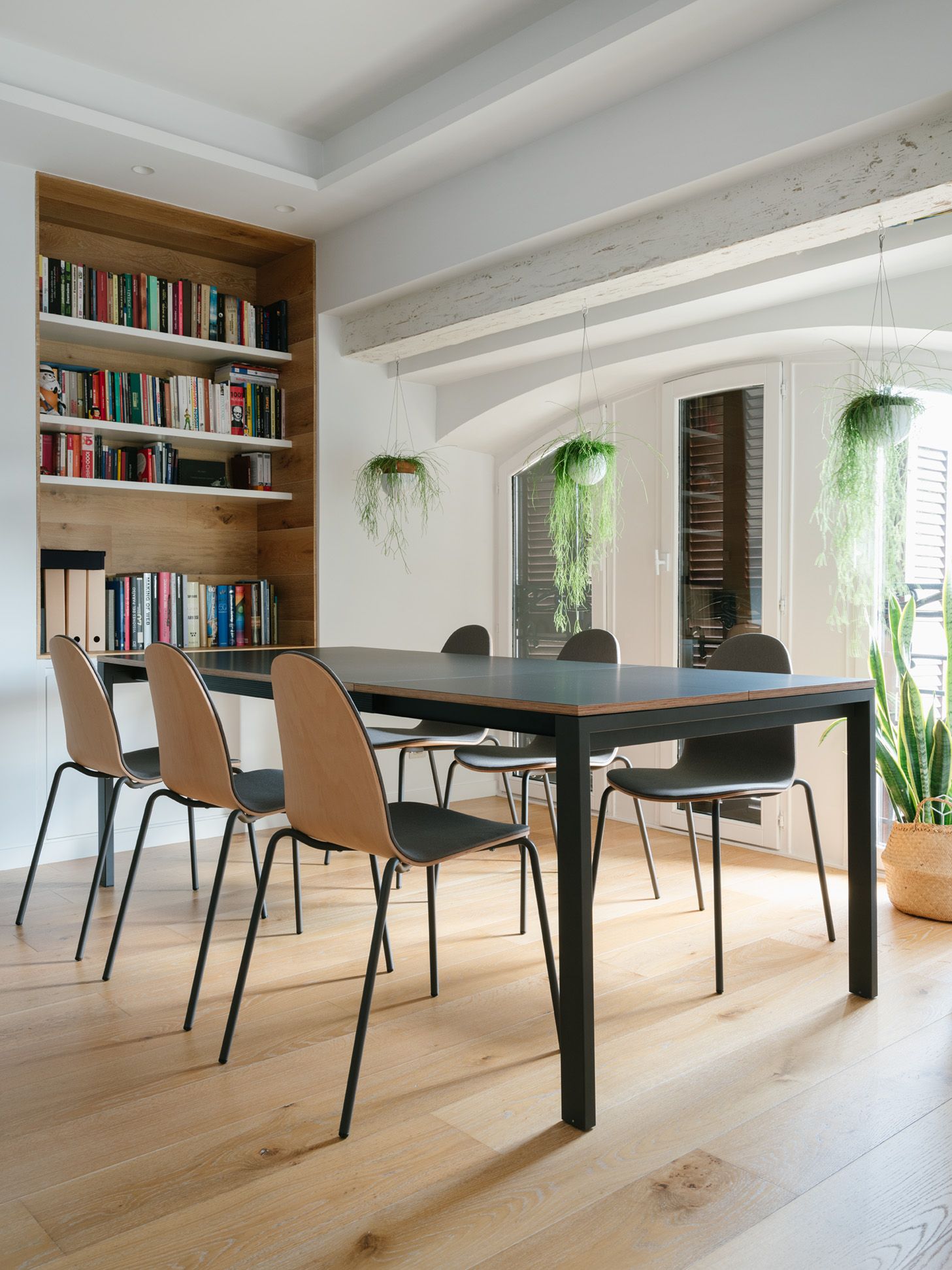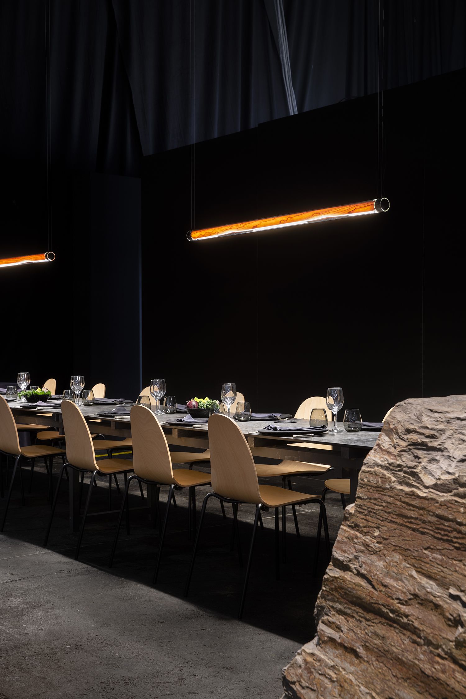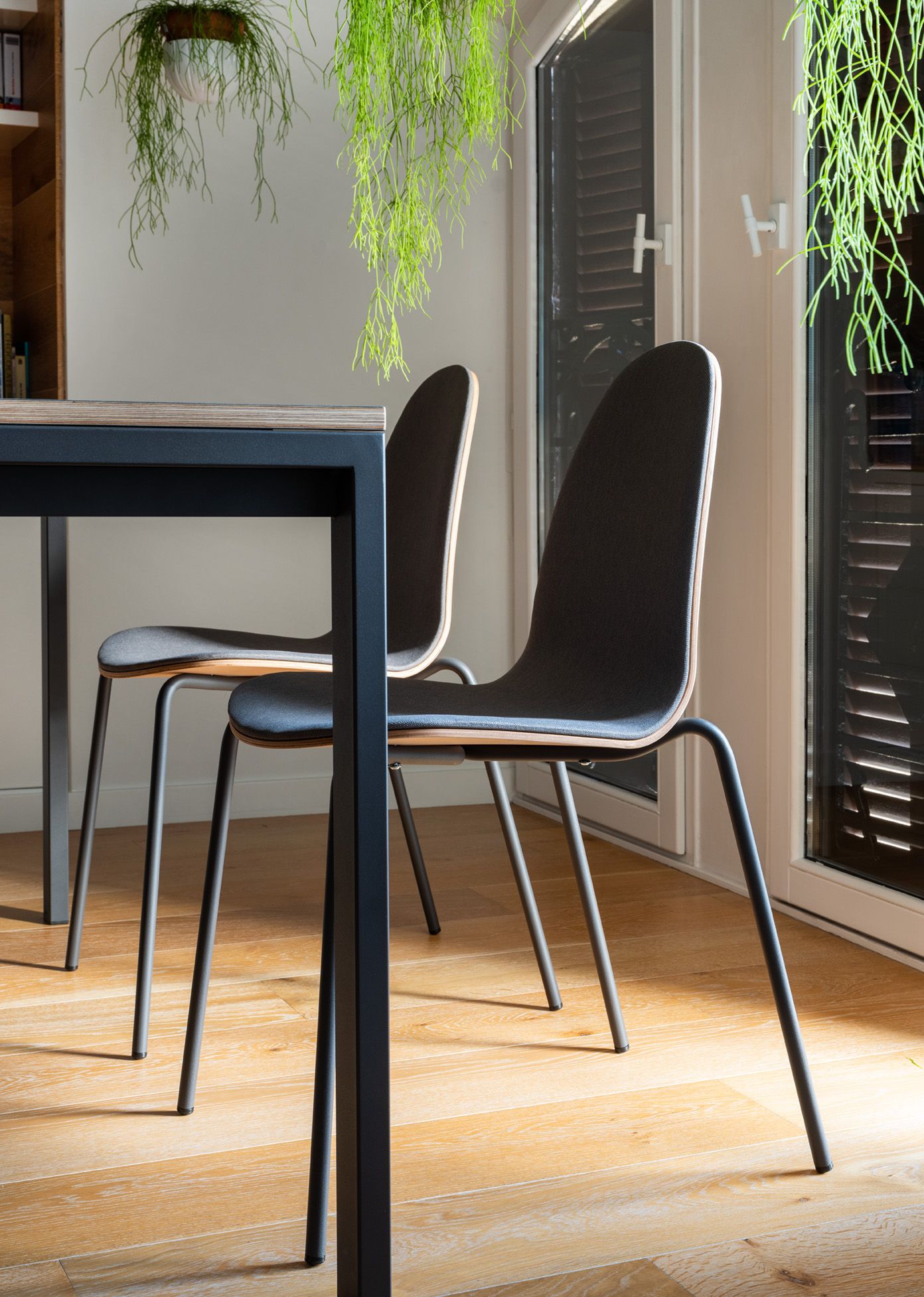 Structure composed of precision cylindrical tubing, 18 mm in diameter and 2 mm thick, in recycled cold-rolled steel. Finish options for the seat include beech, oak, fully upholstered, and combi options. For more information, consult the technical sheet.