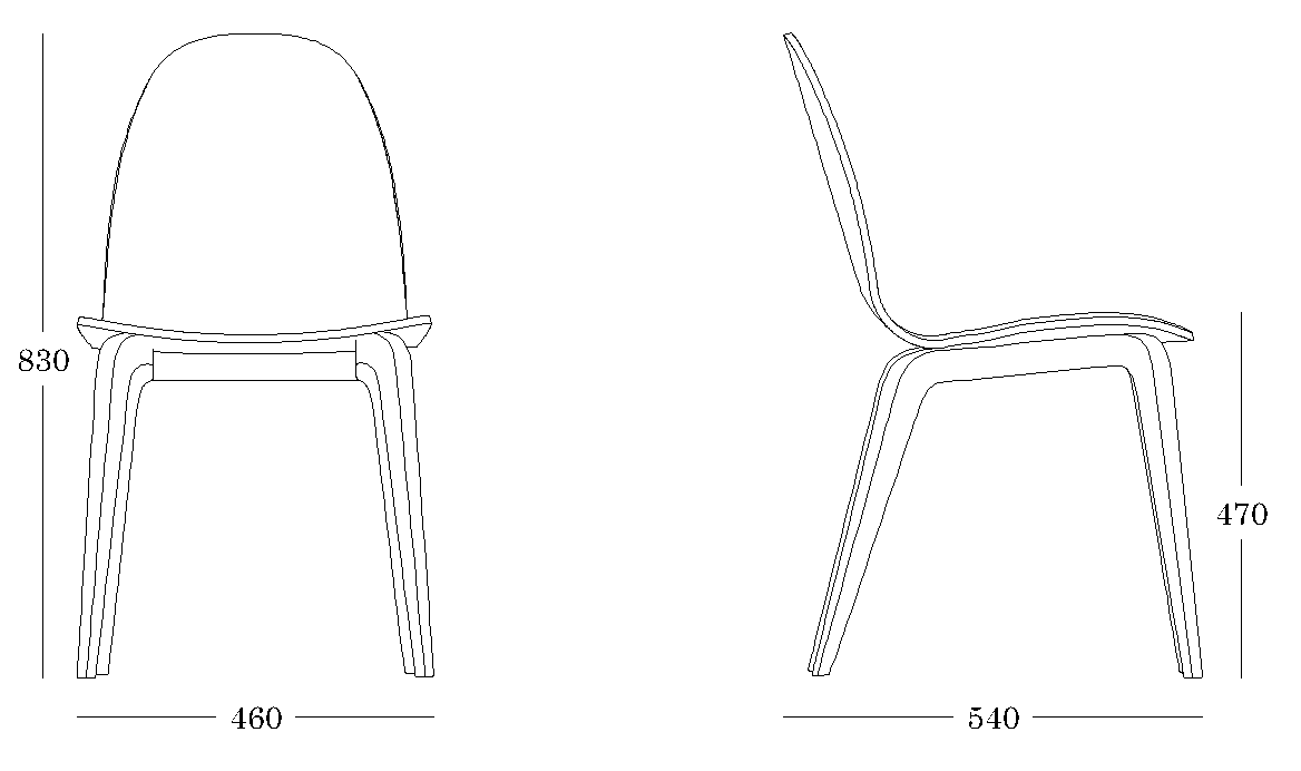 Frame made of solid beech wood, machined and curved through a specialized steaming and pressing process. Finish options for the seat include beech, oak, fully upholstered, and combi options. For more information, consult the technical sheet.