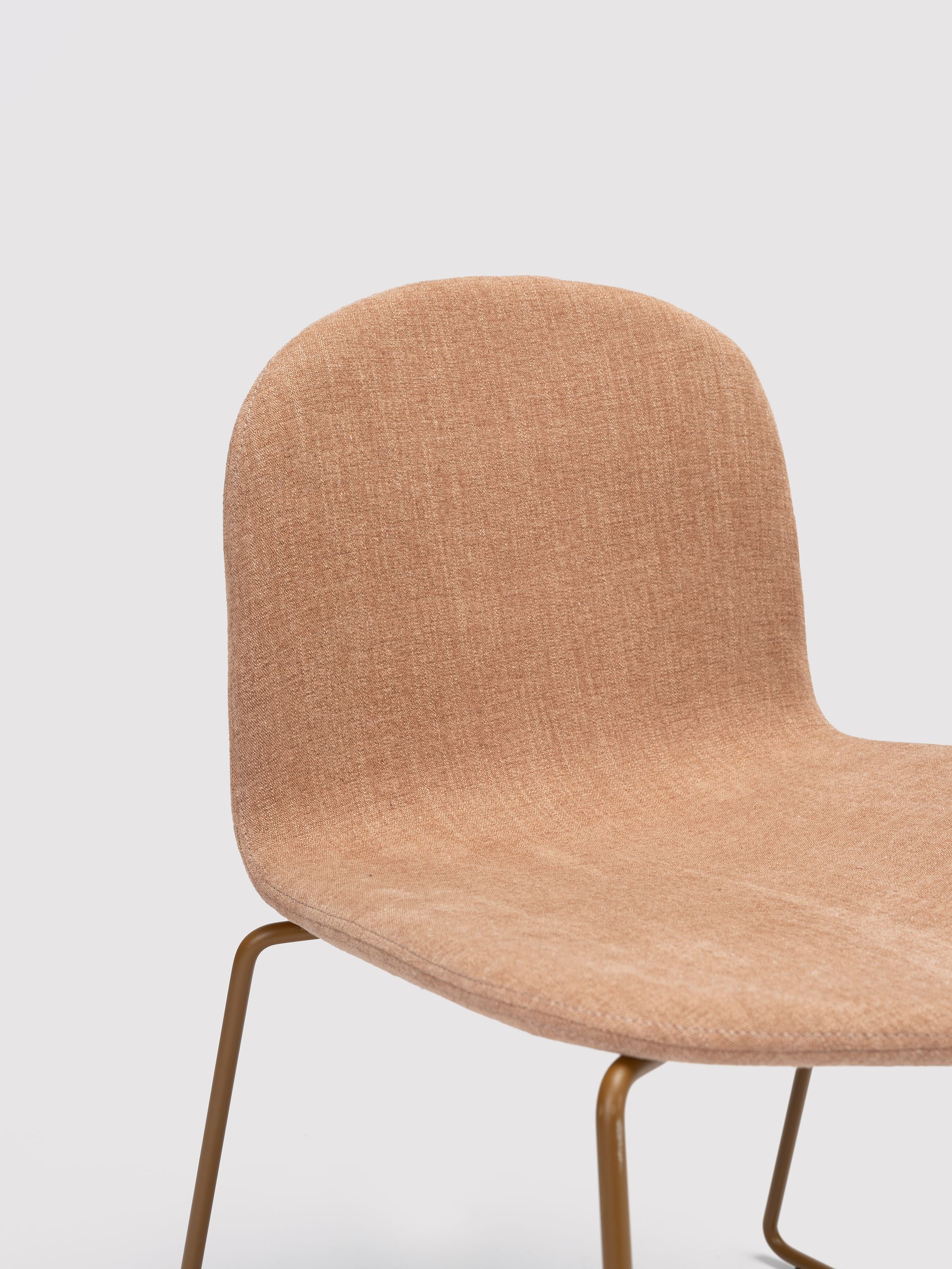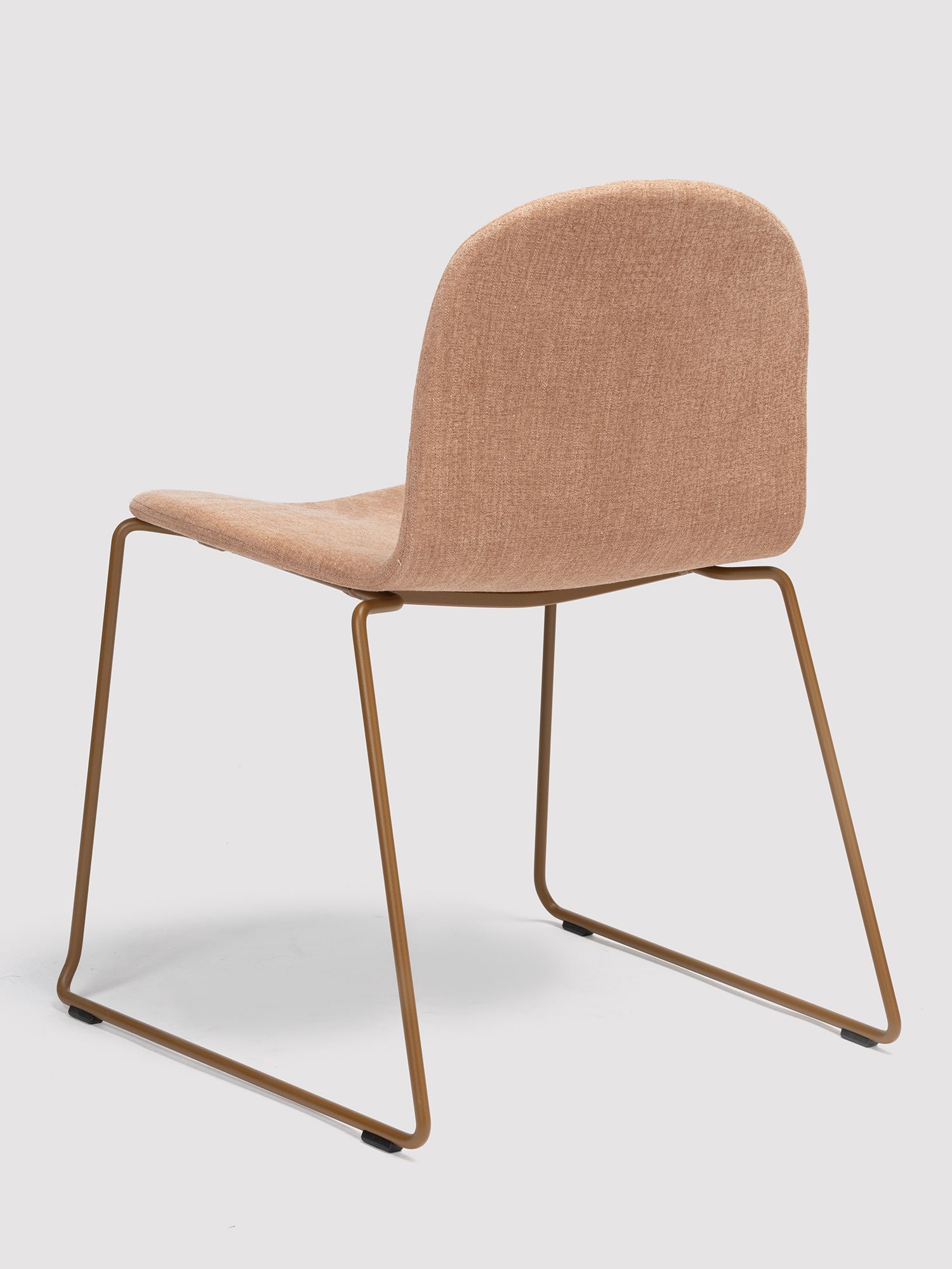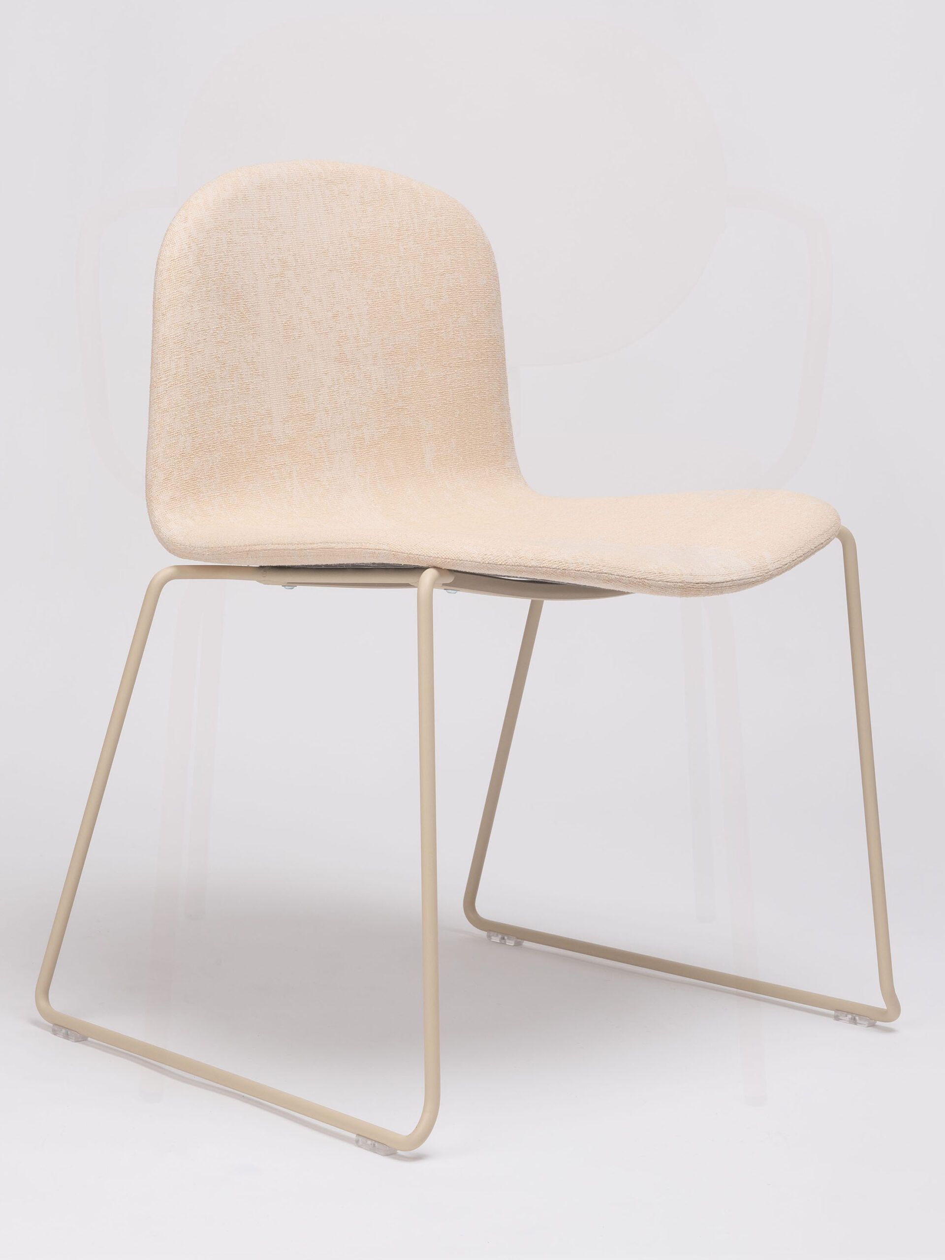 Because everyone finds comfort in different places, the Bob family adapts to every moment, every life, person and space available. to achieve this, a sled-base version was born, made with a solid metallic rod finished with epoxy. There is a wide selection of upholsteries and woods available for the seat.