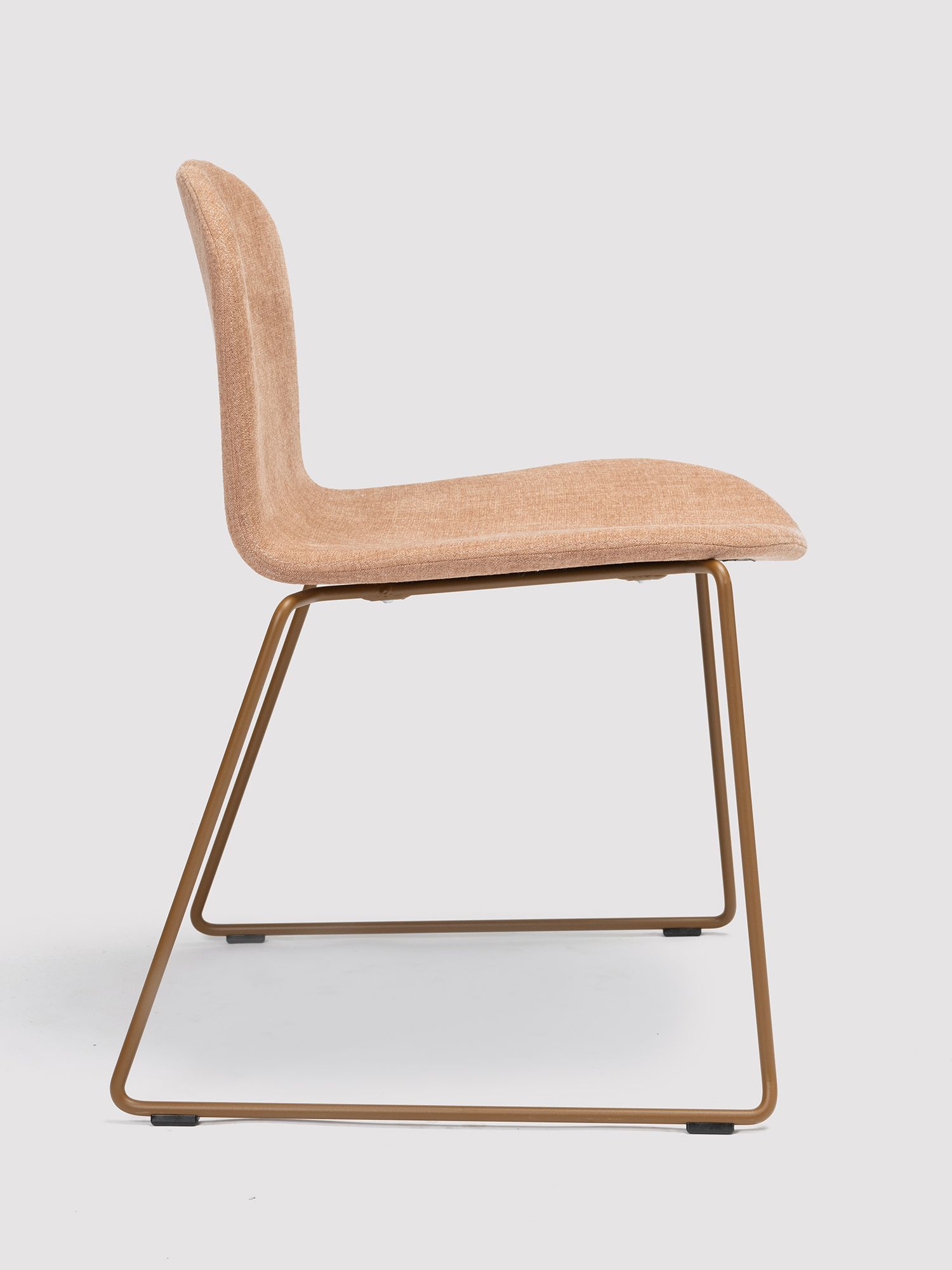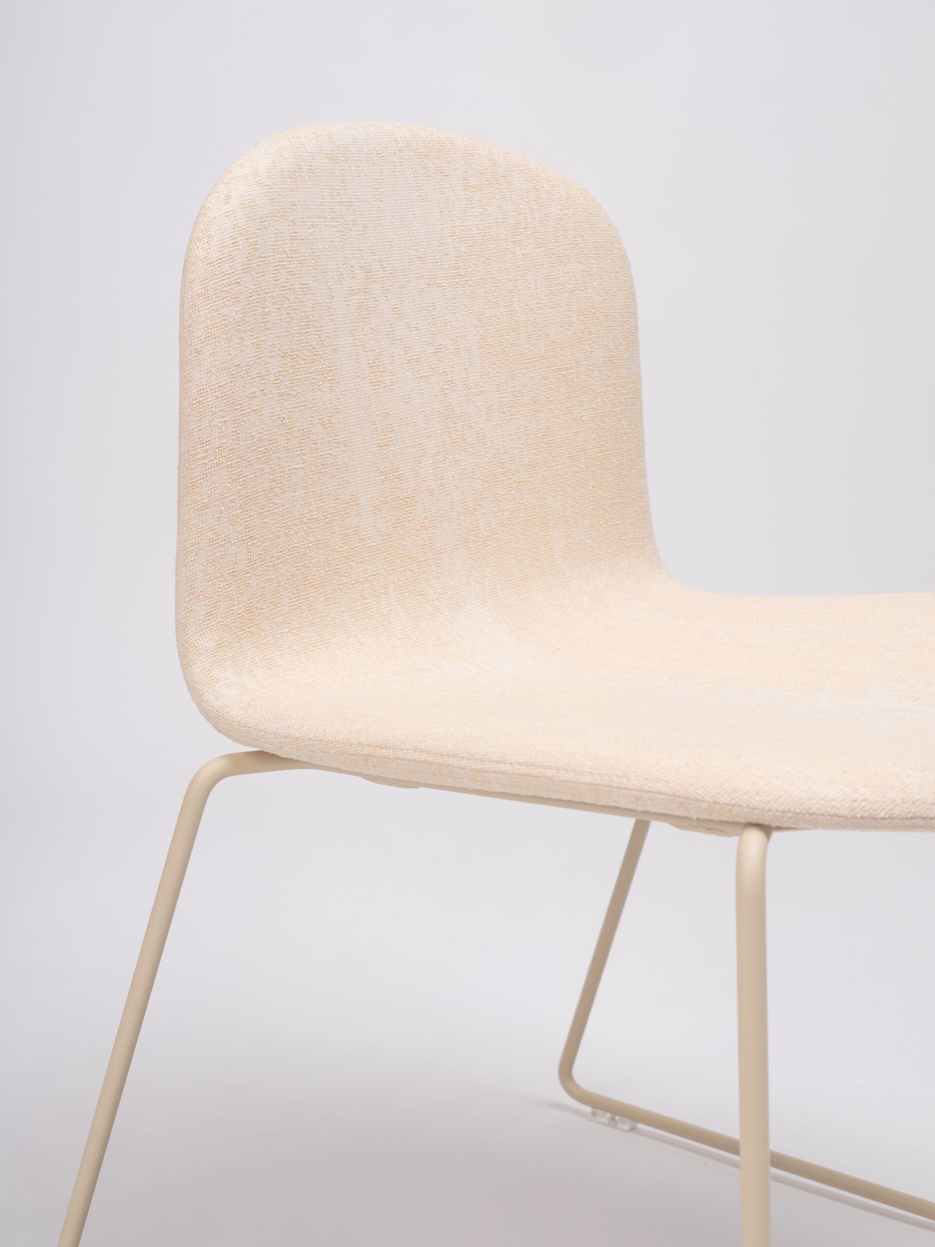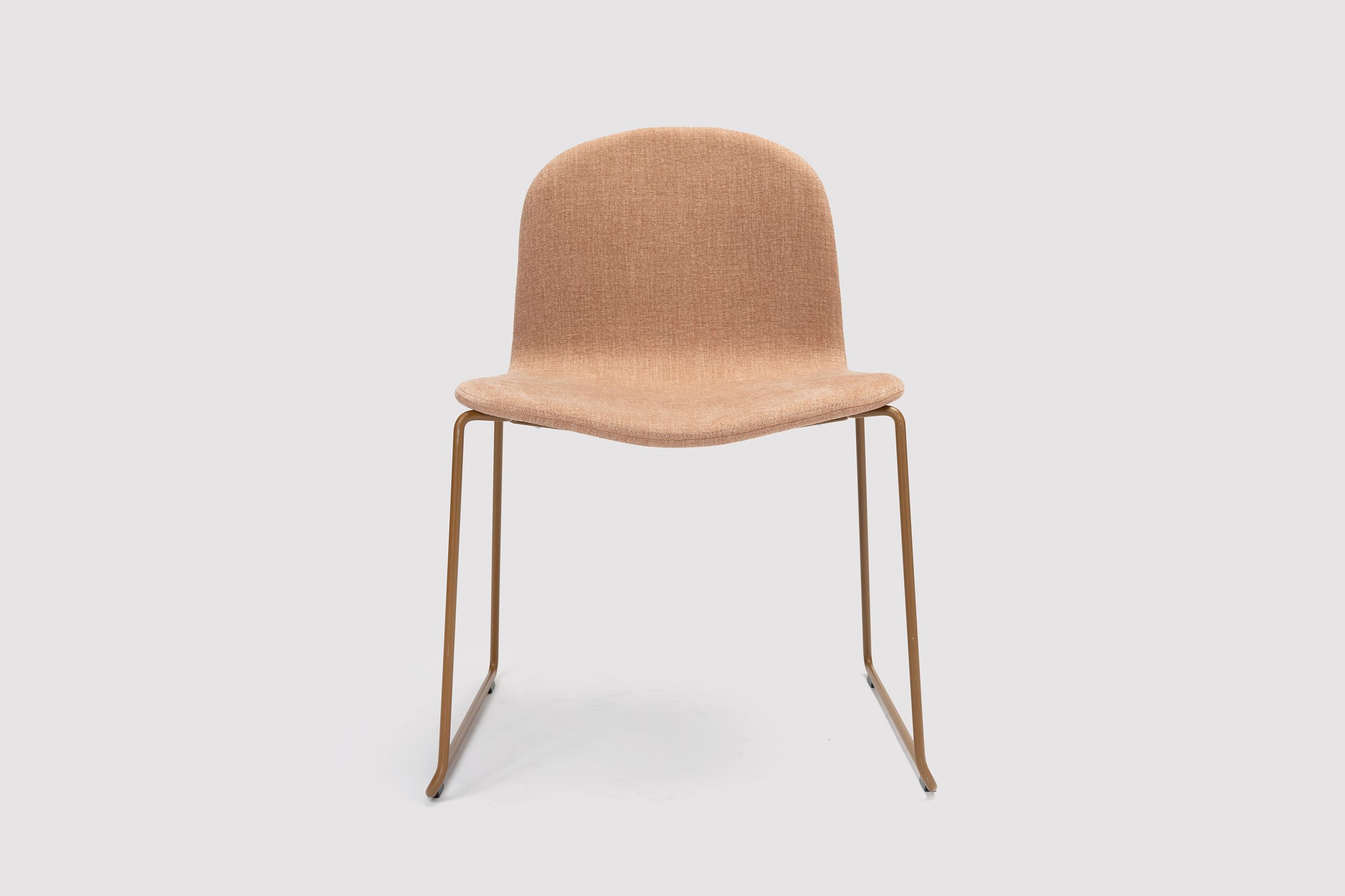 Because everyone finds comfort in different places, the Bob family adapts to every moment, every life, person and space available. to achieve this, a sled-base version was born, made with a solid metallic rod finished with epoxy. There is a wide selection of upholsteries and woods available for the seat.