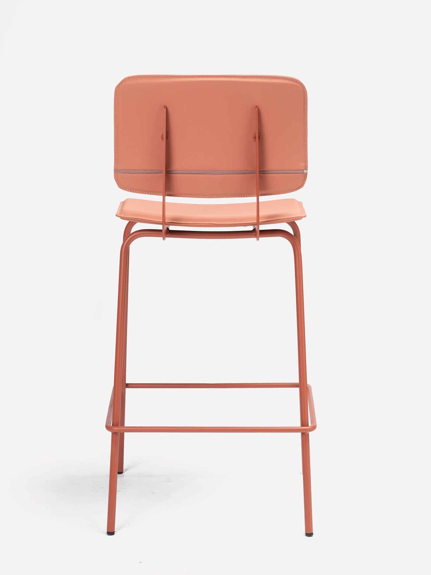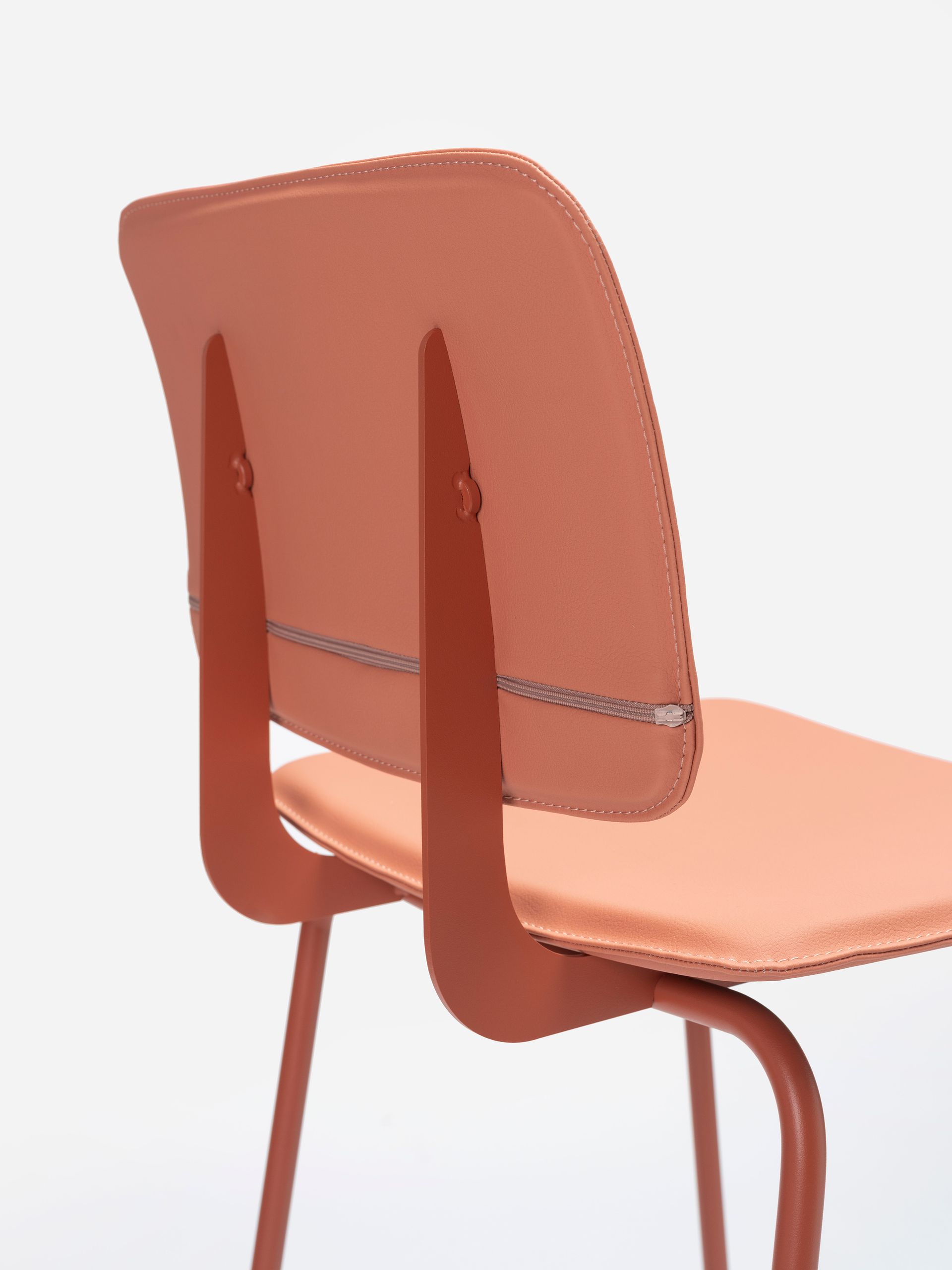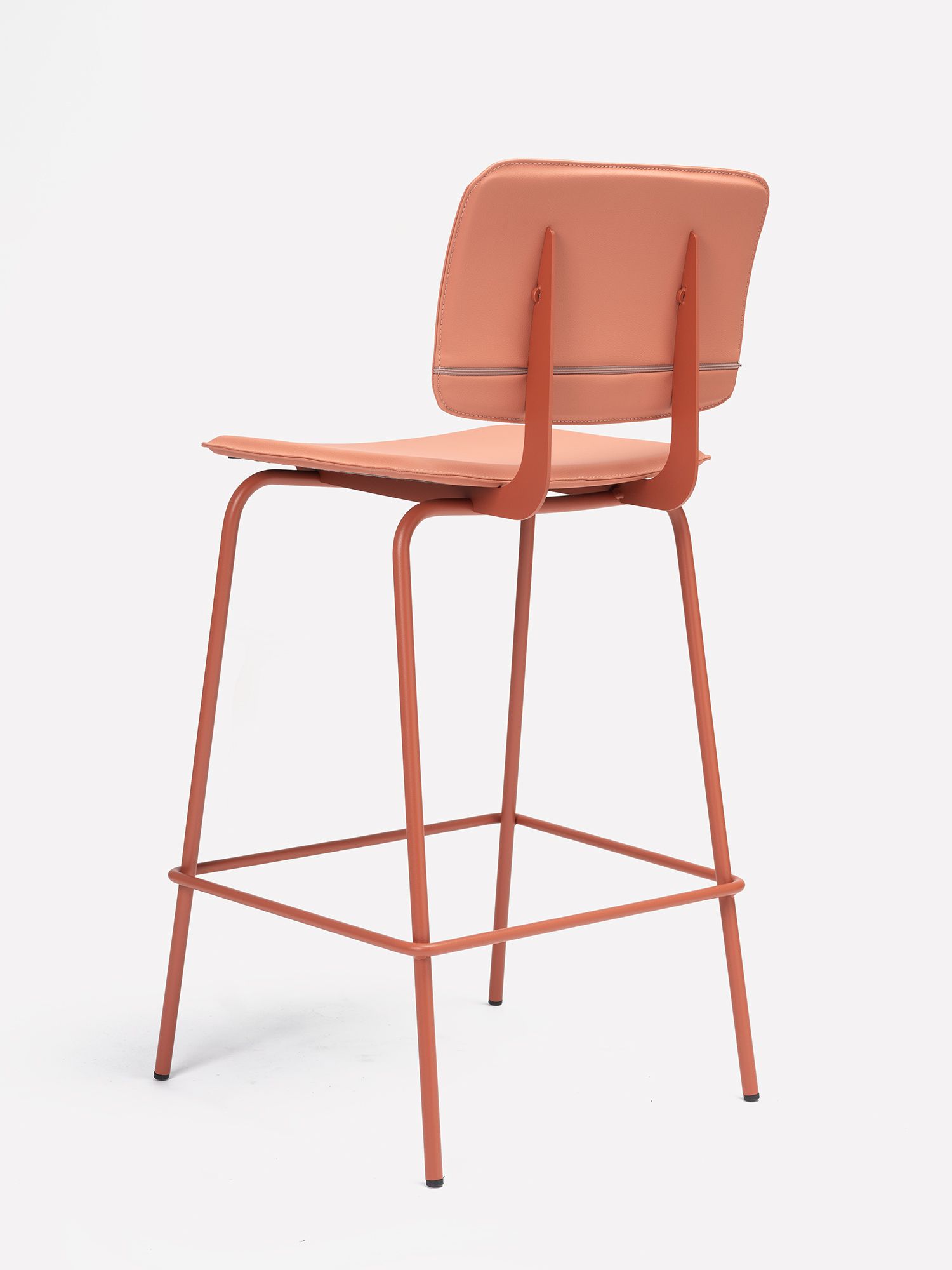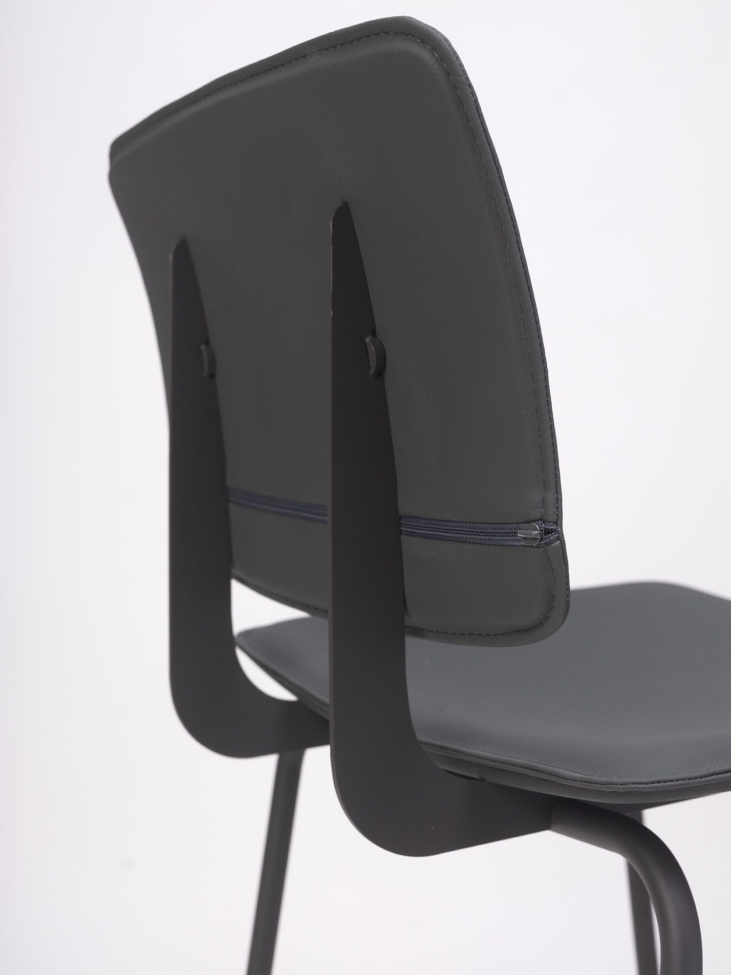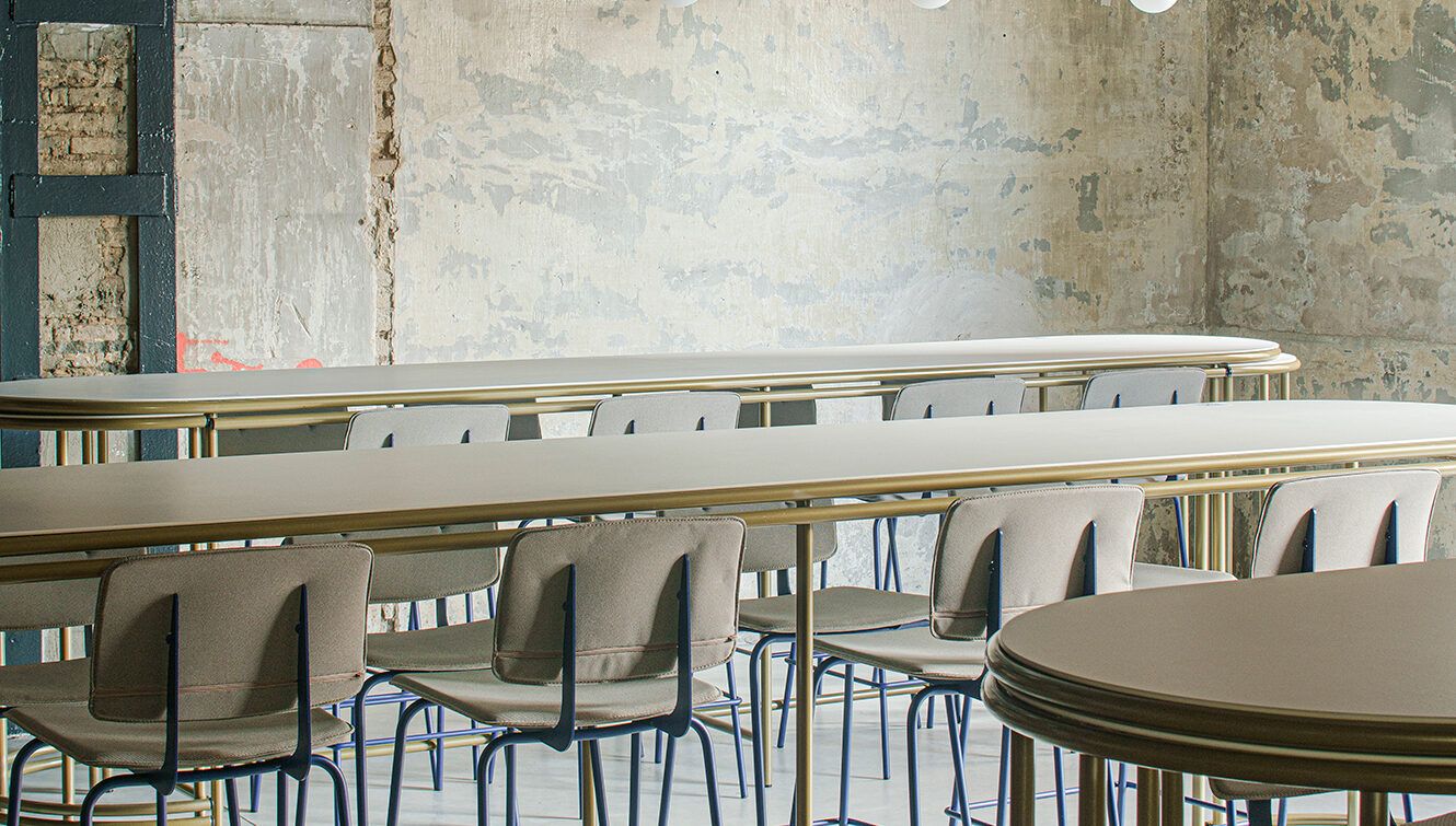 Structure composed of precision cylindrical tubing, 16 mm in diameter and 2 mm thick, in recycled cold-rolled steel. Finish options for the seat and backrest include phenolic laminate and upholstery. For more information, consult the technical sheet.