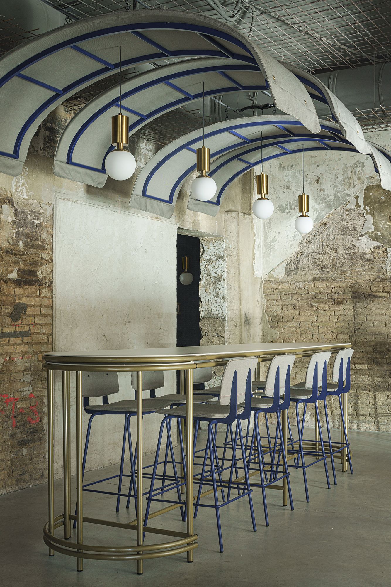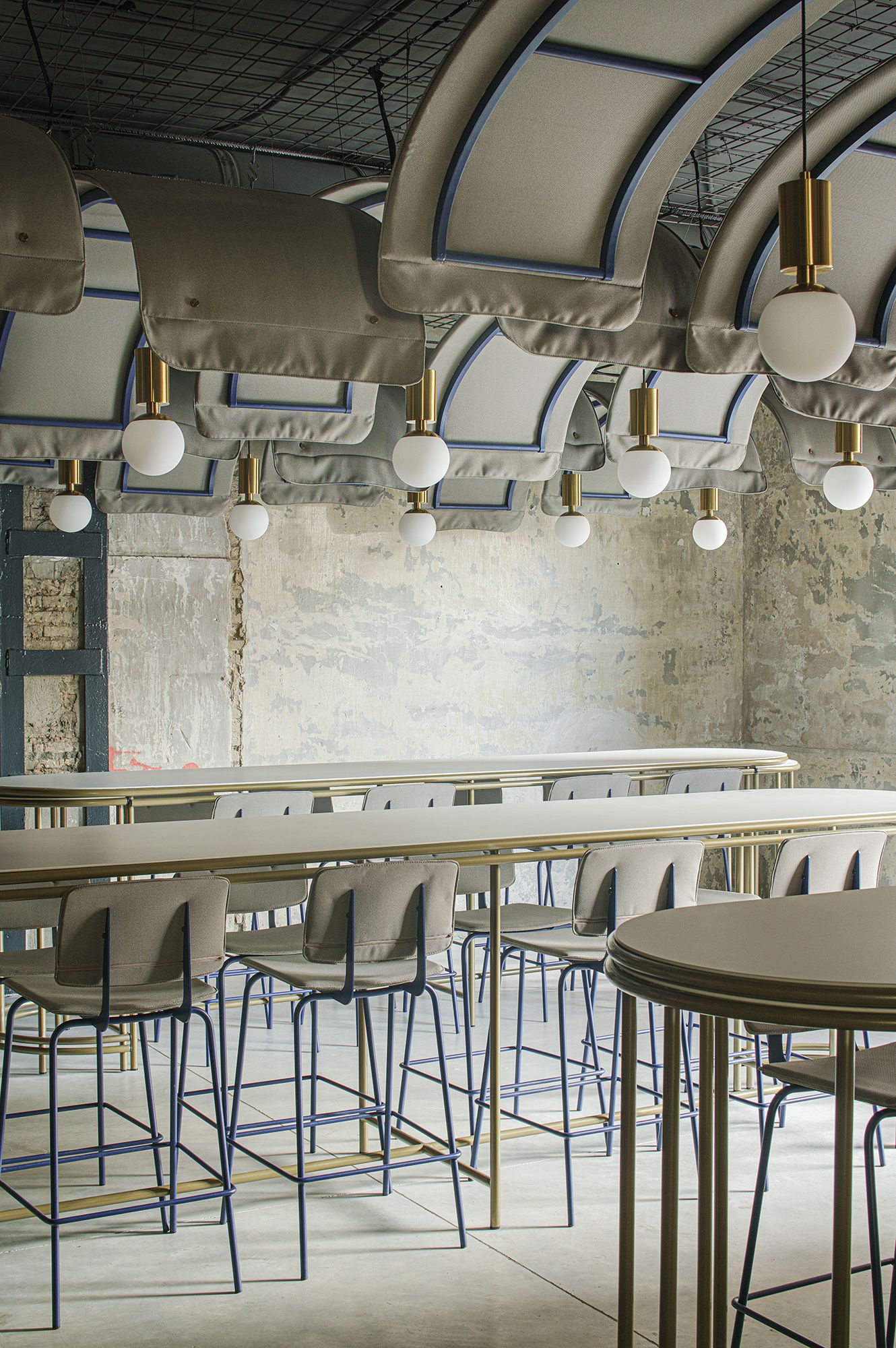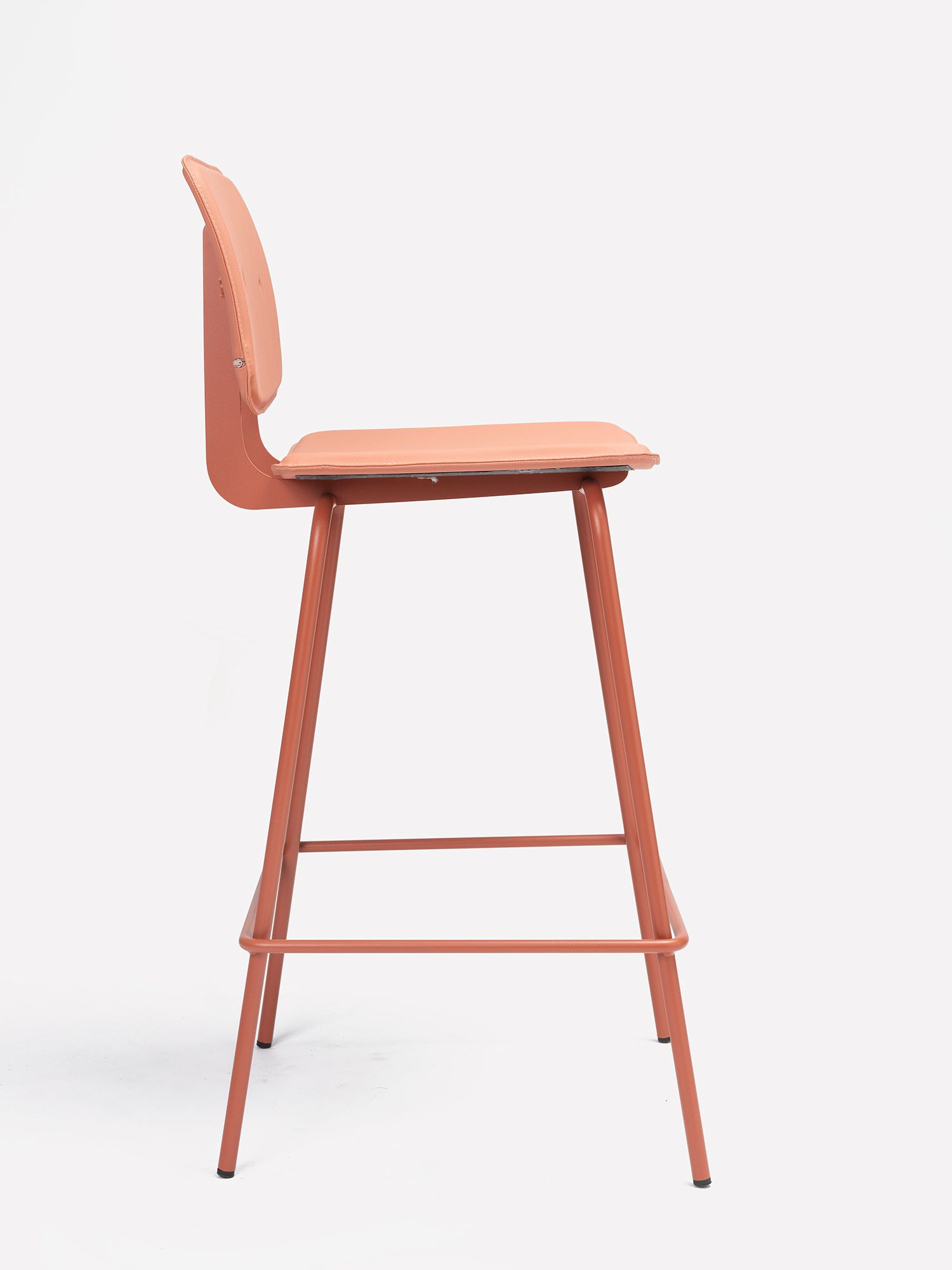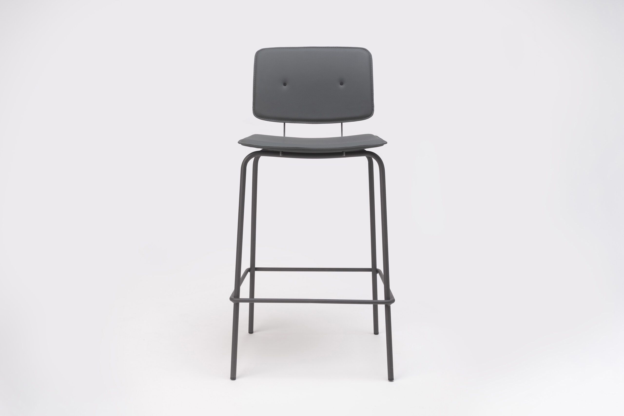 Structure composed of precision cylindrical tubing, 16 mm in diameter and 2 mm thick, in recycled cold-rolled steel. Finish options for the seat and backrest include phenolic laminate and upholstery. For more information, consult the technical sheet.