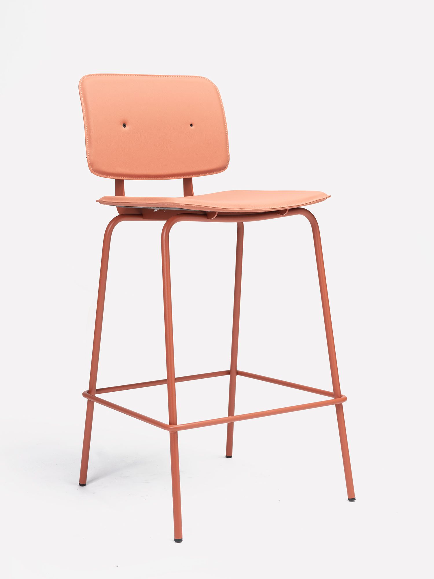 The Don stool exudes personality with an industrial style that creates different, clean, elegant and comfortable spaces. Available in two different heights, 65 and 75 cm. A piece manufactured with a metal structure and exposed screws on the back to give a retro and original feel.