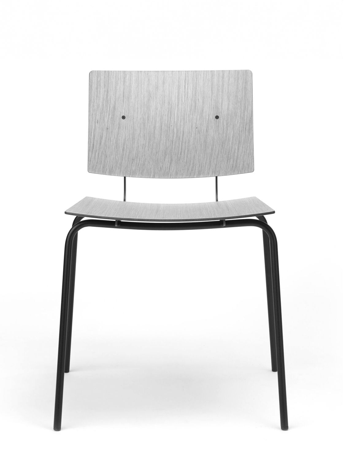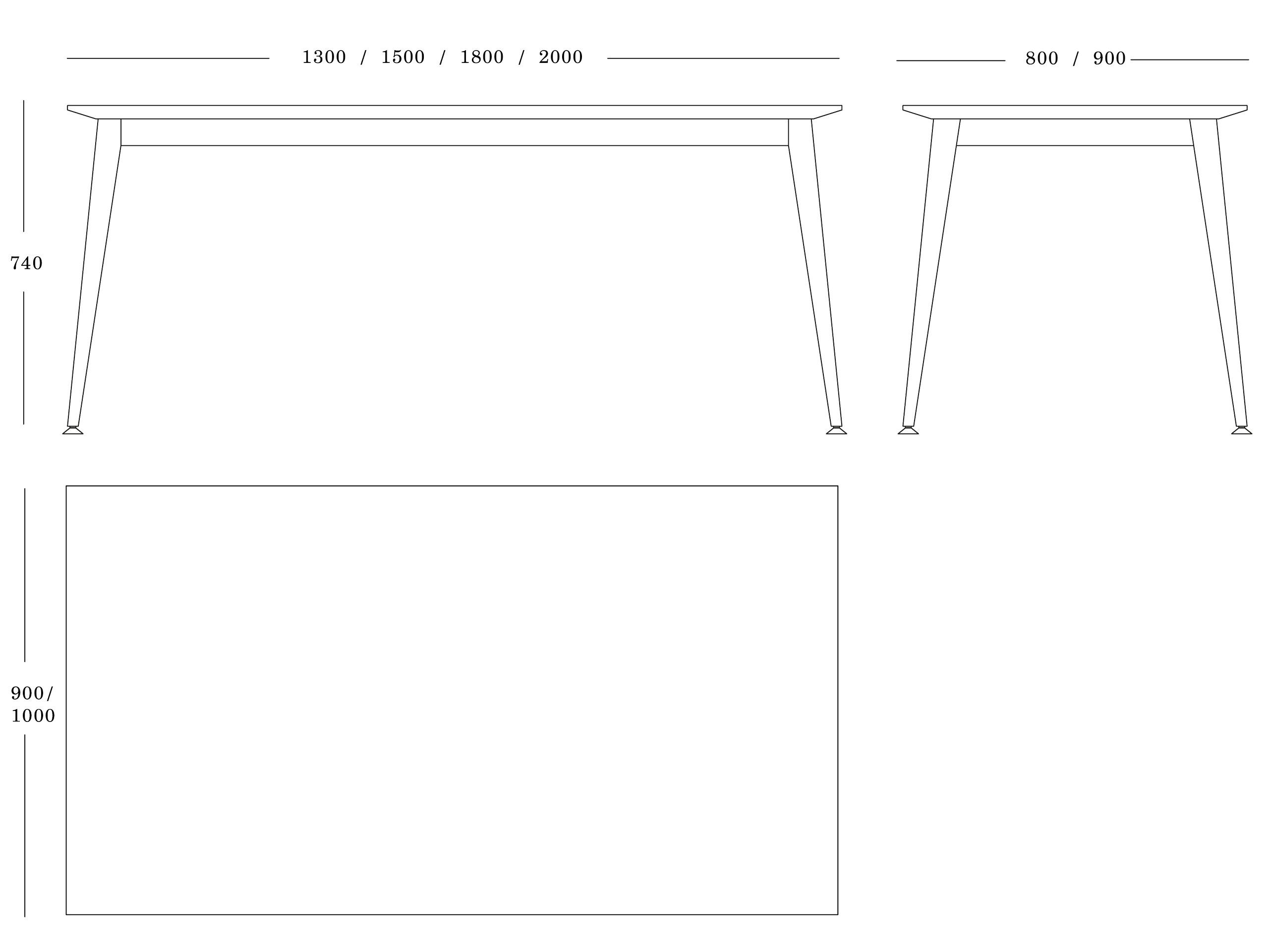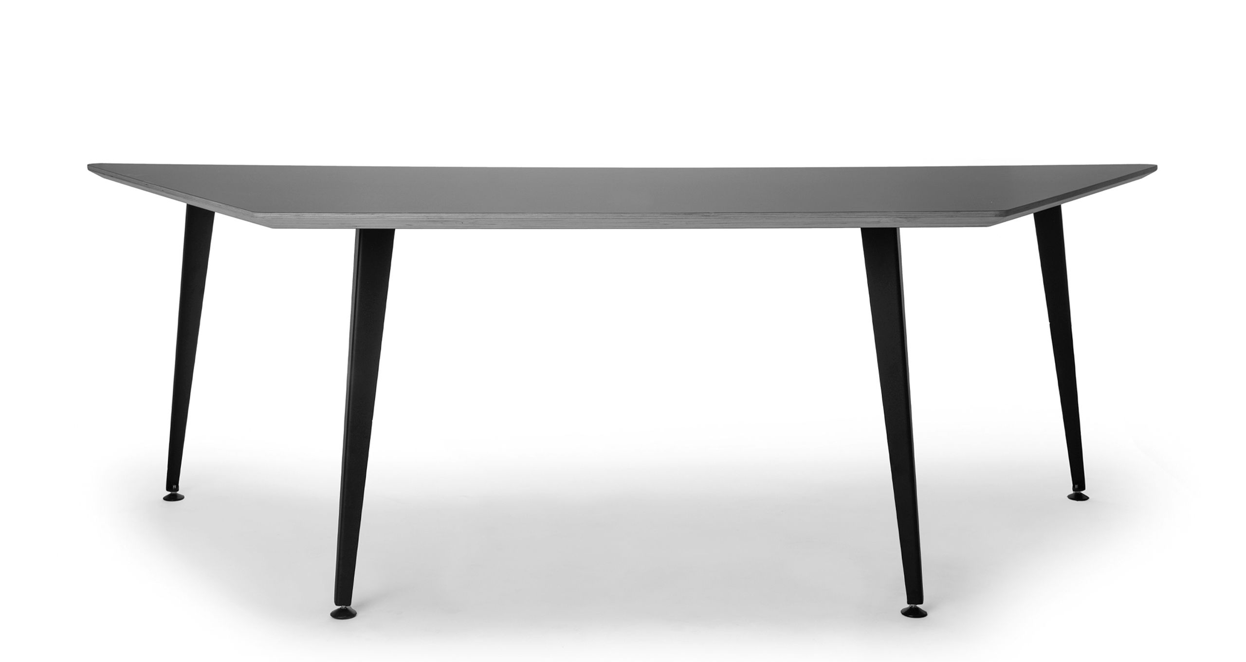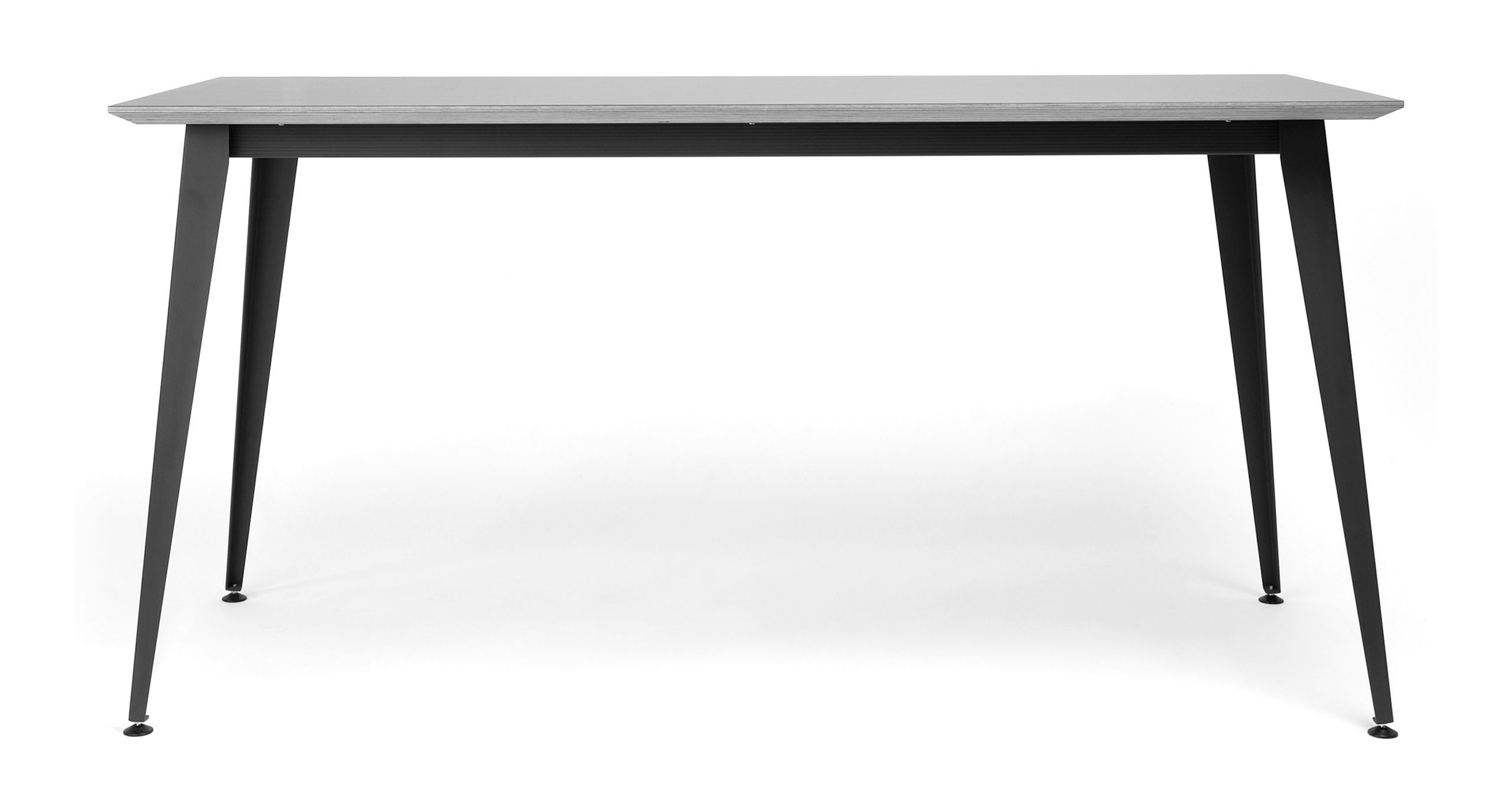Legs made of 3 mm thick steel sheet, laser-cut and bent at 90 degrees and aluminum frame.. Finish options for the tabletop include laminated birch plywood, Arpa Fenix + birch plywood, stained oak + MDF, and stained beech + MDF. For more information, consult the technical sheet.