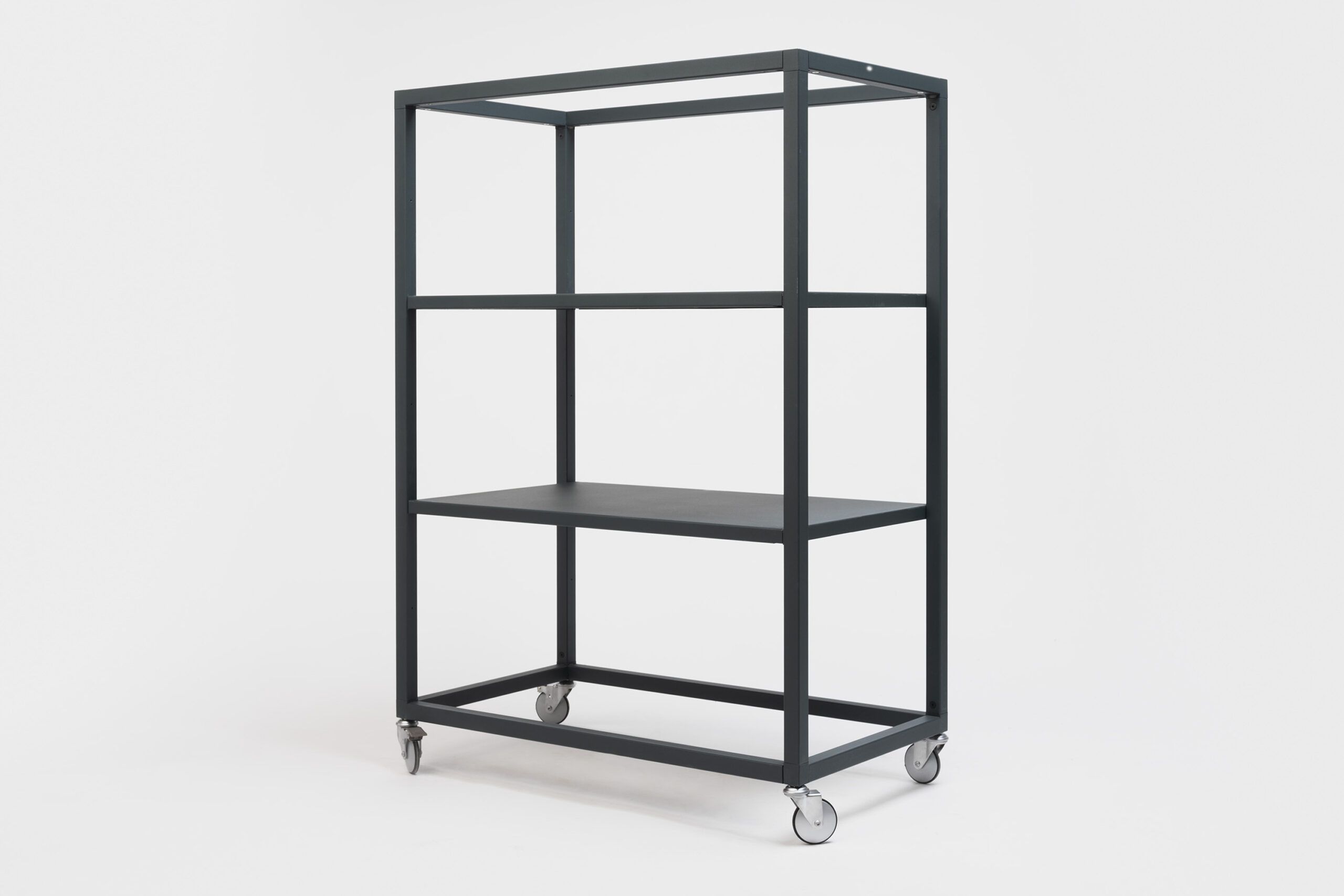 Structure composed of precision square tubing, 30 mm on each side and 2 mm thick, in recycled cold-rolled steel. Shelves are made of 1.5 mm thick cold-rolled steel sheet with epoxy color finish. For more information, consult the technical sheet.