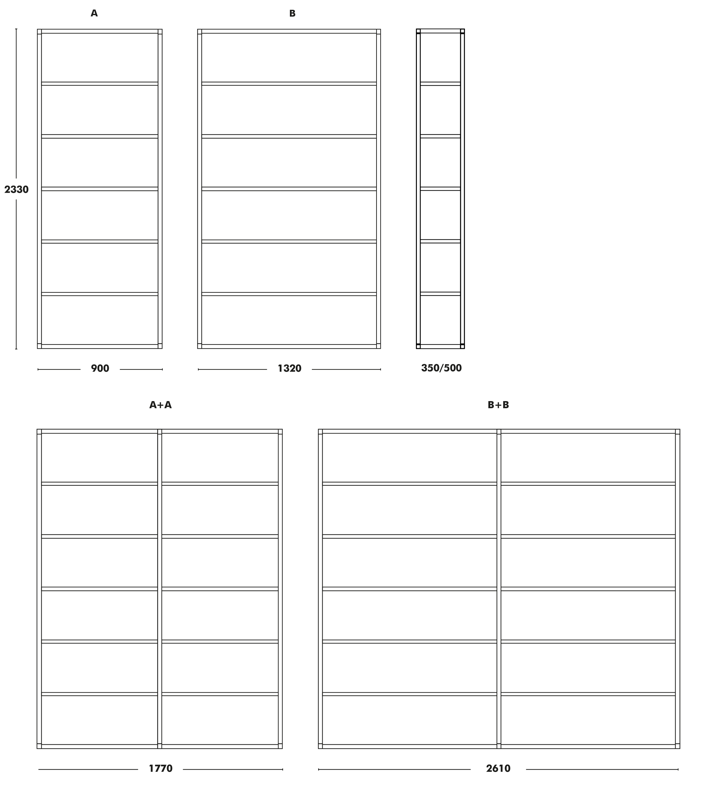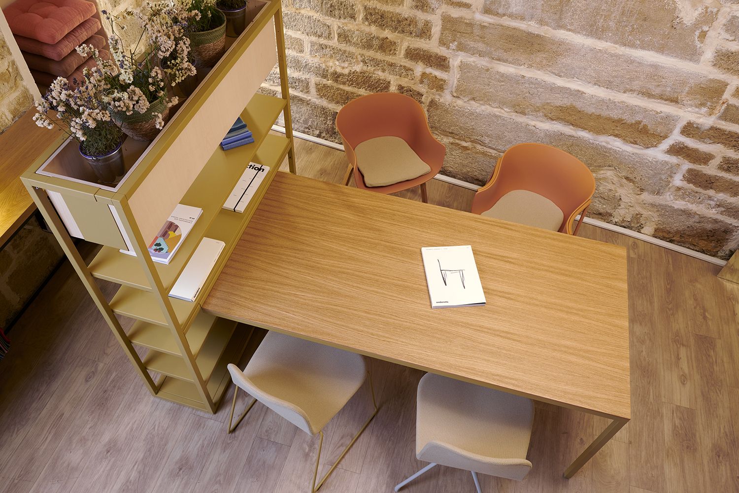 A modular system with different heights, colours and dimensions. A programme that adapts to large installations or small spaces. Create your own, 6 heights, 2 lengths and 2 depths. Simple system, pure functionality.