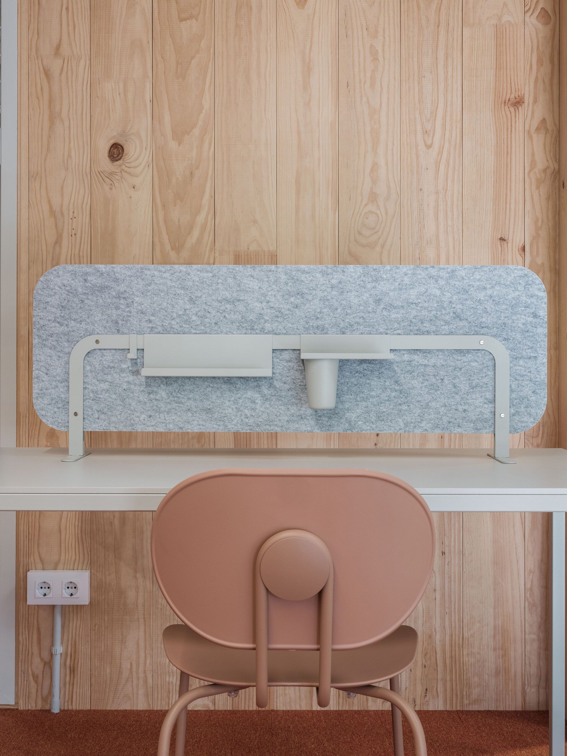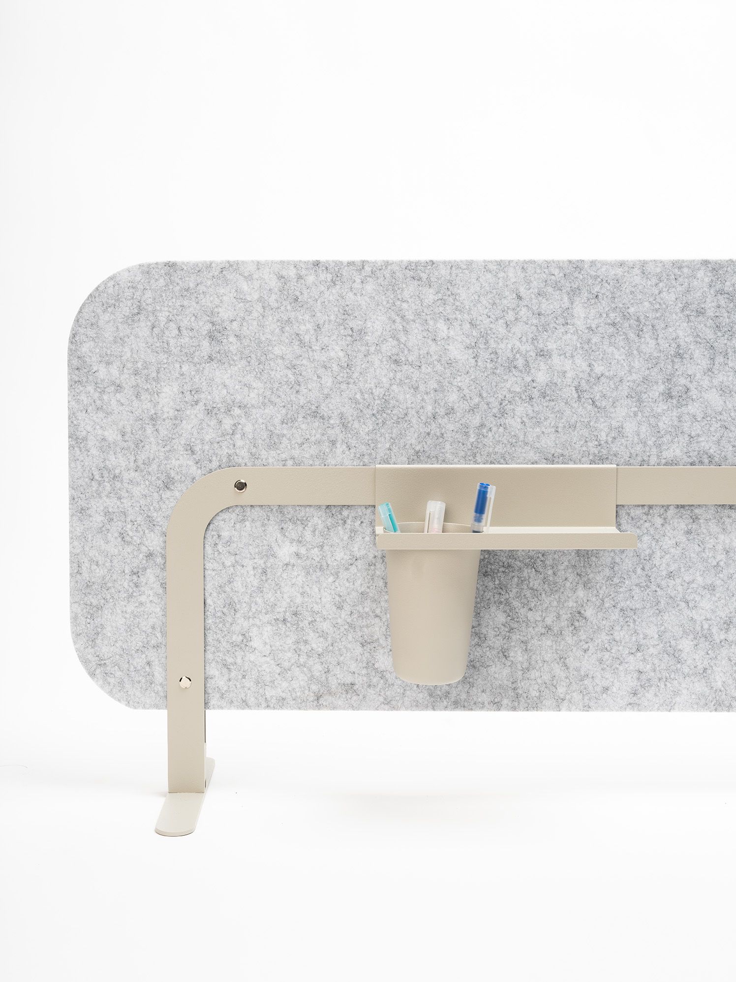 The Espai collection consists of dividing panels, which flow across the desktop, moving closer, moving away, looking for an answer to a new way of understanding the workspace, both individual or shared. The Espai dividers are built with recycled felt material, made 60-70% of recycled plastic bottles: the brand’s new commitment to Eco-Design.