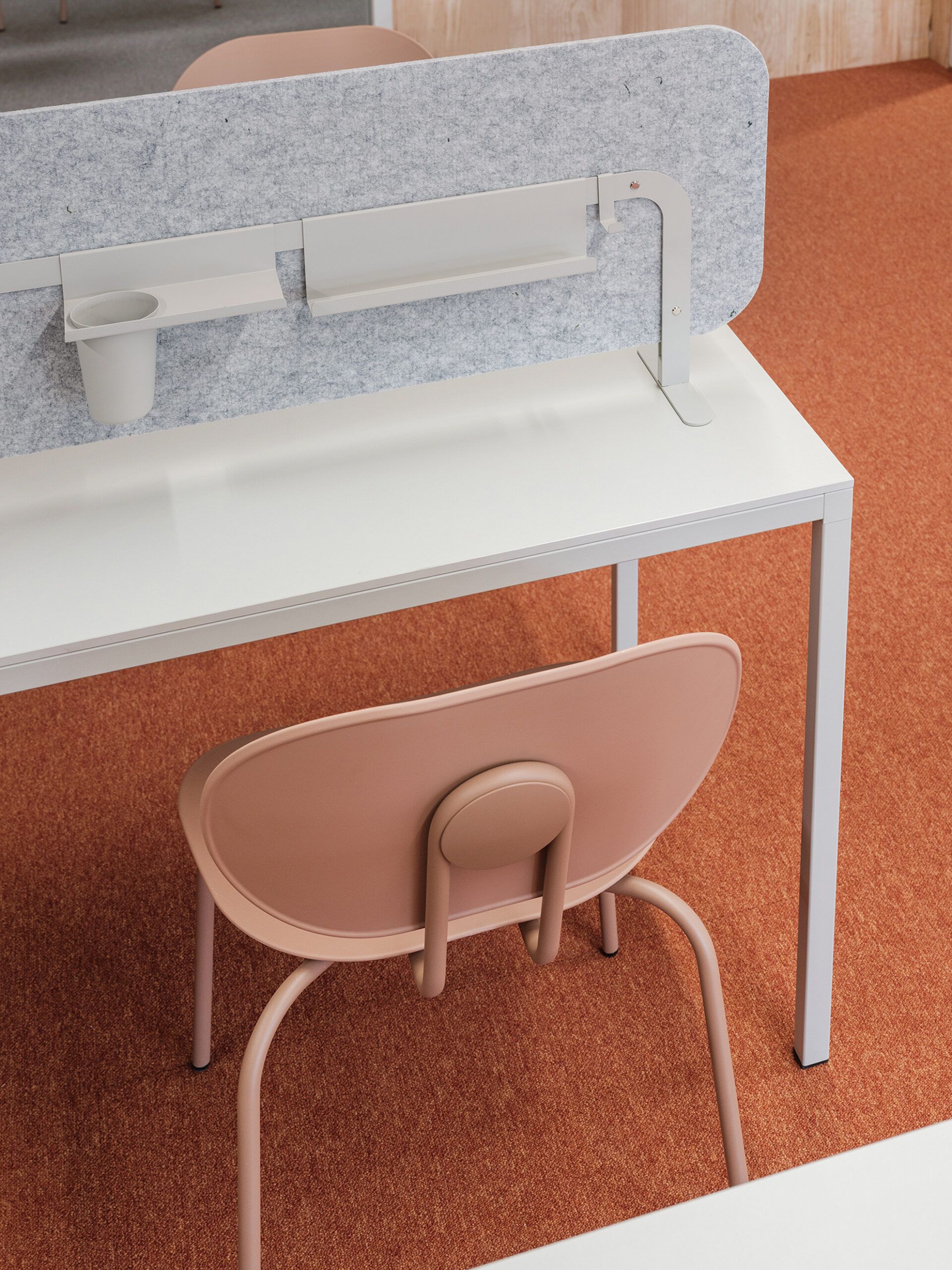 The Espai collection consists of dividing panels, which flow across the desktop, moving closer, moving away, looking for an answer to a new way of understanding the workspace, both individual or shared. The Espai dividers are built with recycled felt material, made 60-70% of recycled plastic bottles: the brand’s new commitment to Eco-Design.