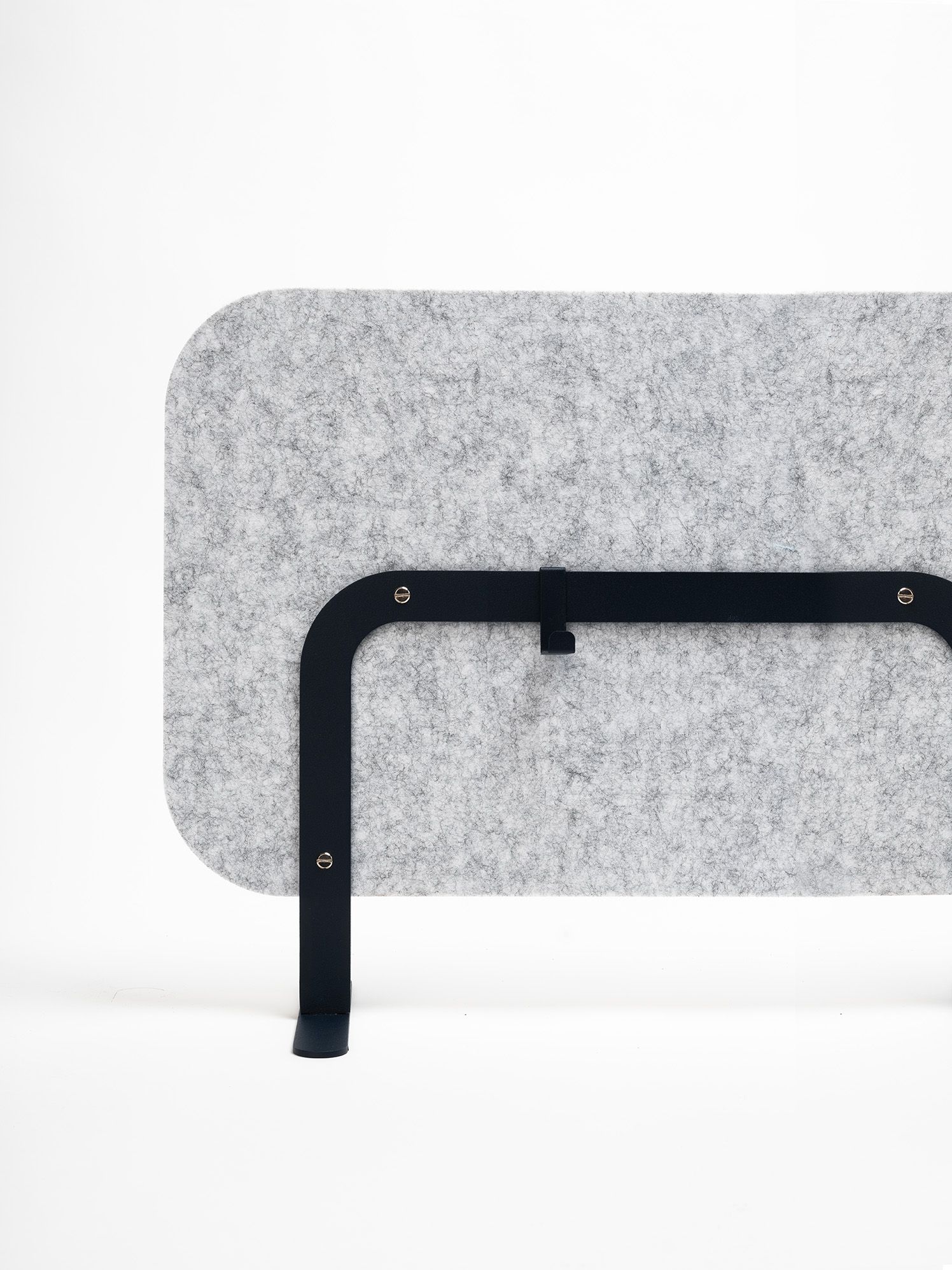Structure made of 3 mm thick sheet steel in recycled cold-rolled steel. The material for the divider panel is composed of 9 mm thick felt made of 60% recycled PET bottles and 40% new PET.