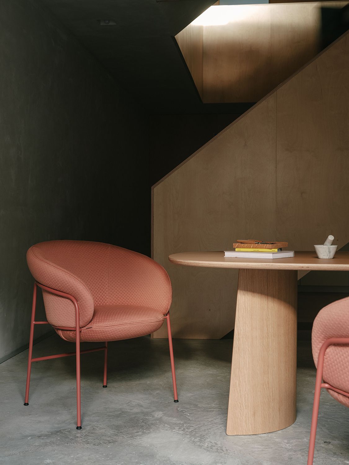 Craftsmanship and technique go hand-in-hand in the Ginger table design. Available in different heights, this table stands out for the complex wooden curvature of its legs and the round shapes of it table top.
