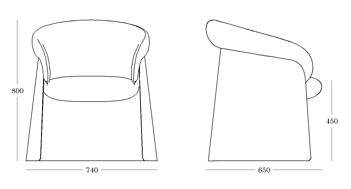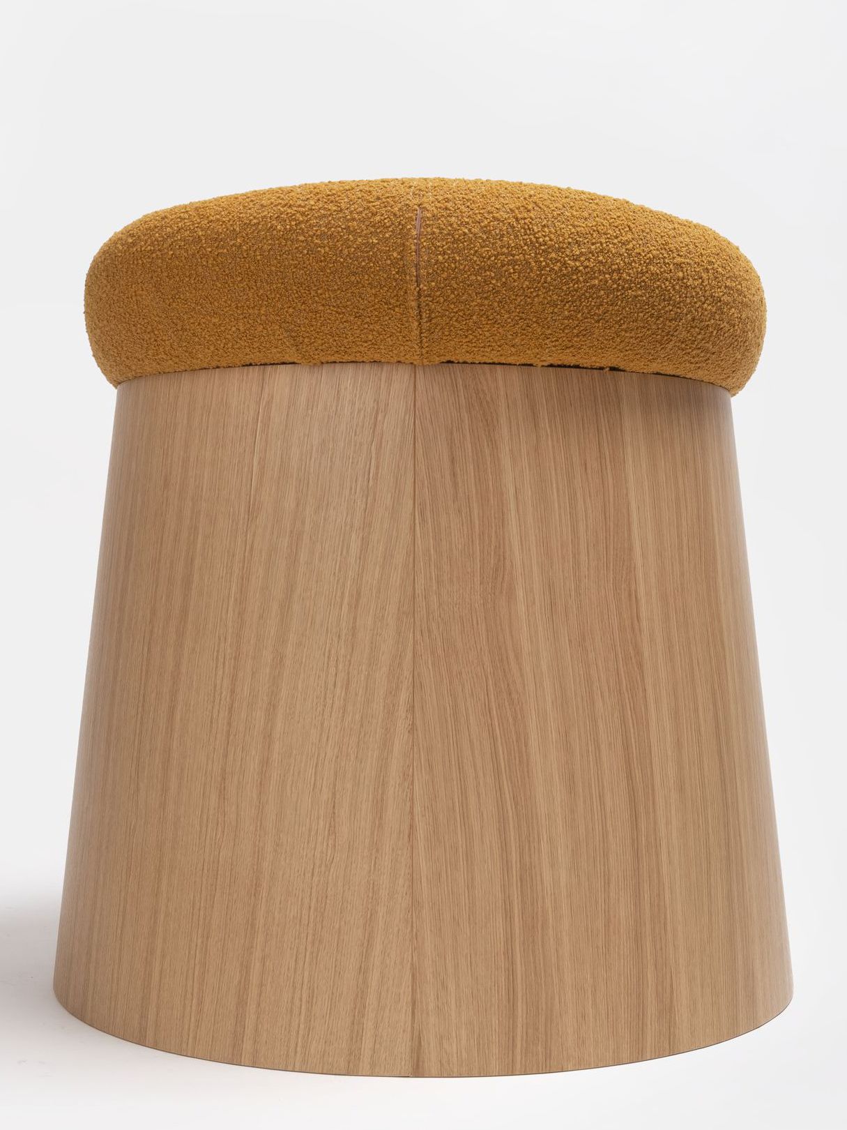 Structure in oak wood over 12 mm thick beech plywood. Seat and backrest made of flexible polyurethane injection with removable upholstery. For more information, consult the technical sheet.