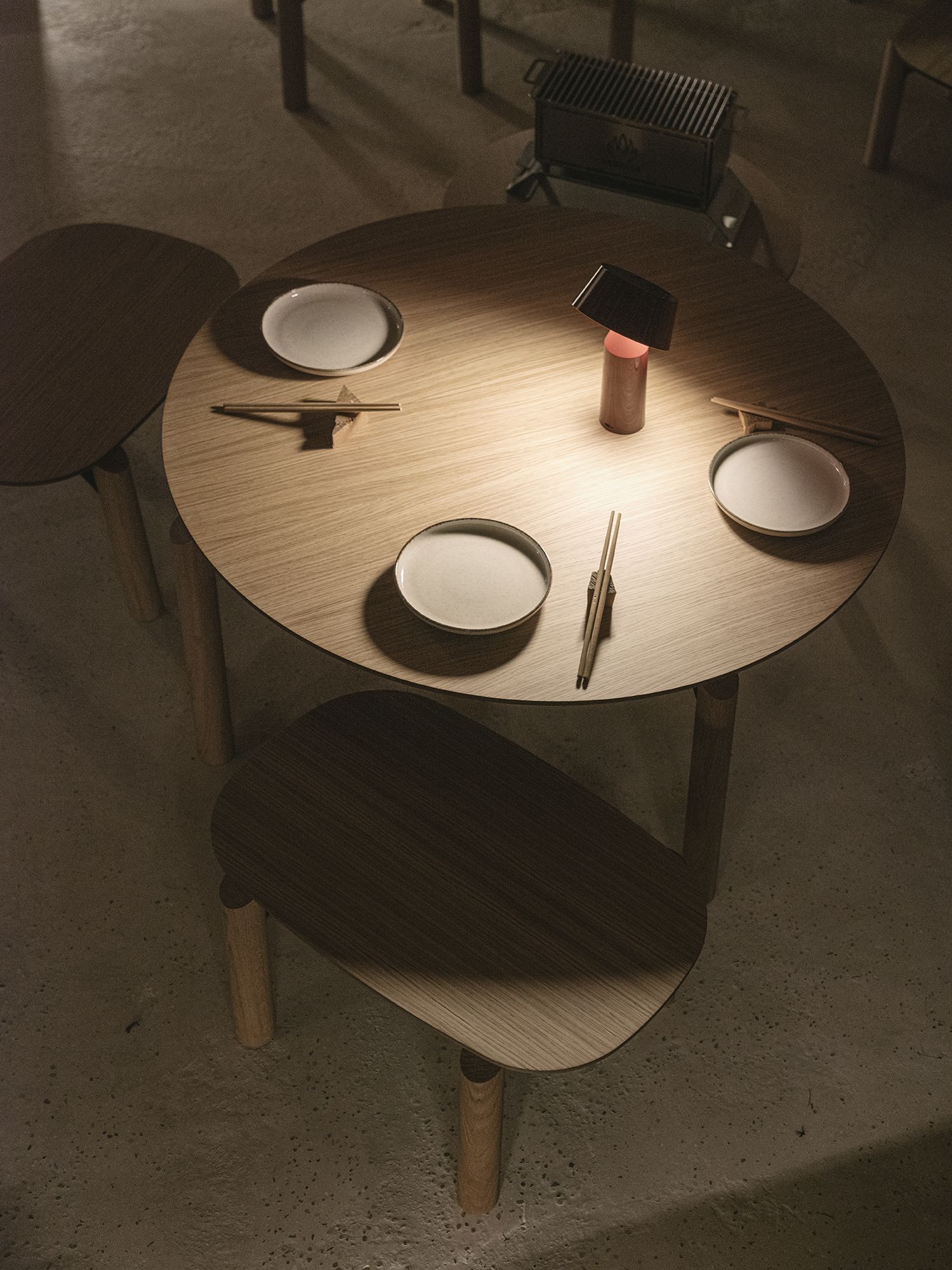 The collection of Juno tables has soft and round shapes that reinforces its character. With delicate, balanced and expressive proportions, this is a collection designed to dialogue and adapt to any environment in a friendly, integrated and honest way. The family consists of low tables and fixed and extendable dining tables available in different sizes and table top materials.