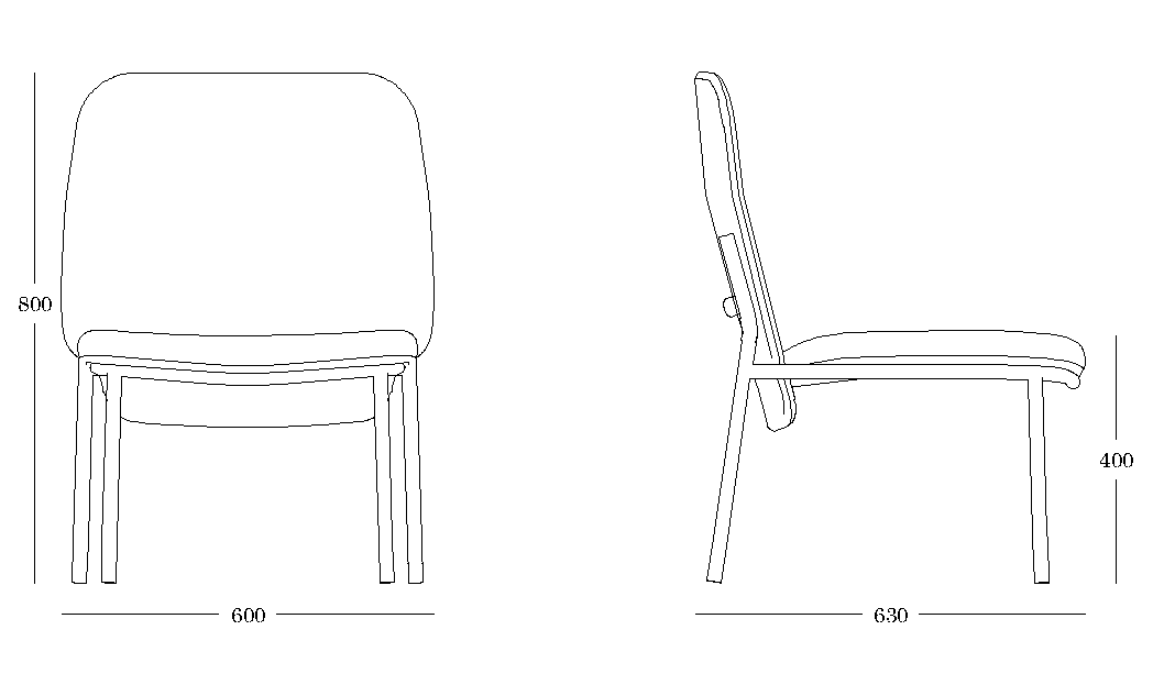 Structure of precision cylindrical tubing, 25 mm in diameter and 2 mm thick, in recycled cold-rolled steel. Upholstered seat and backrest.