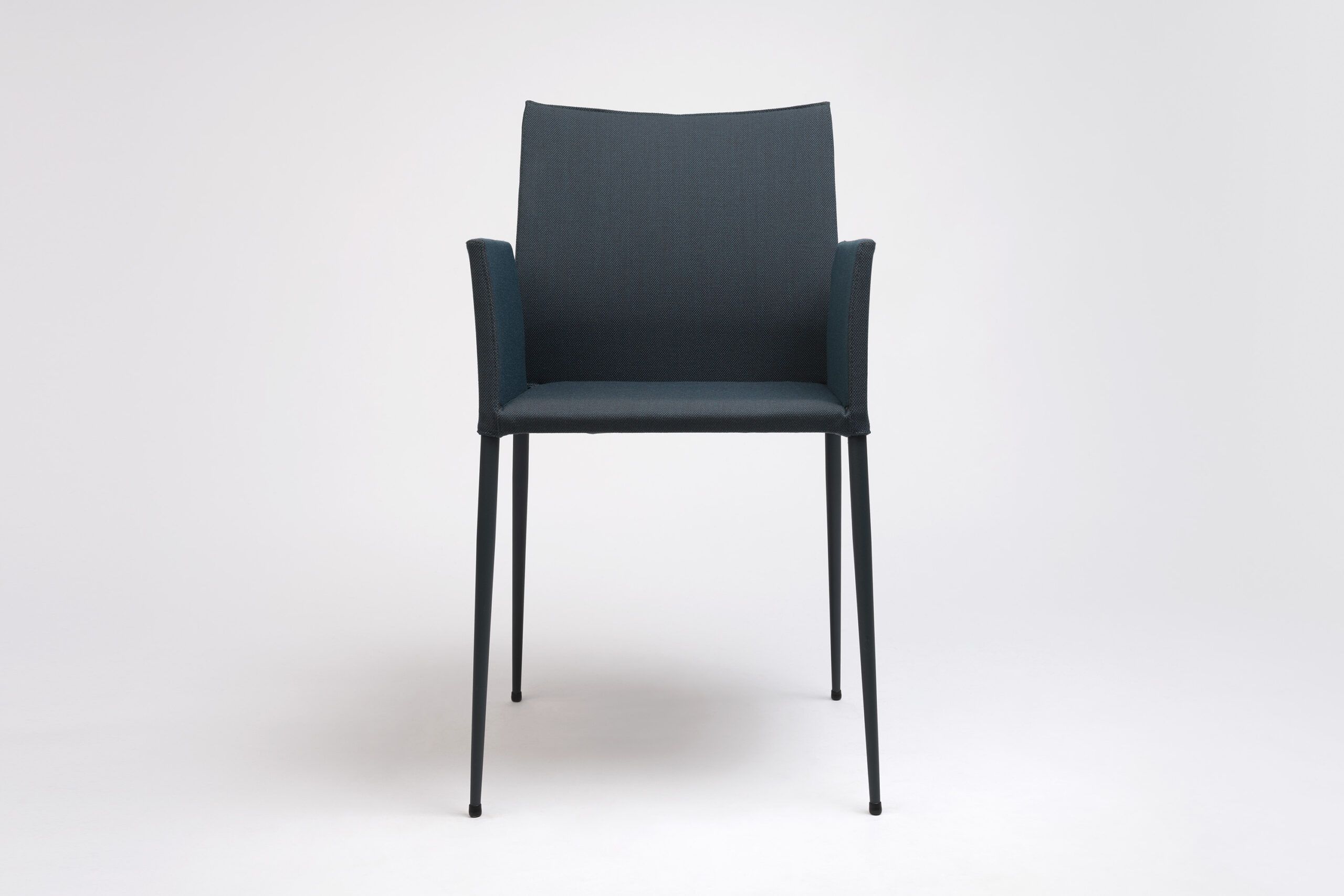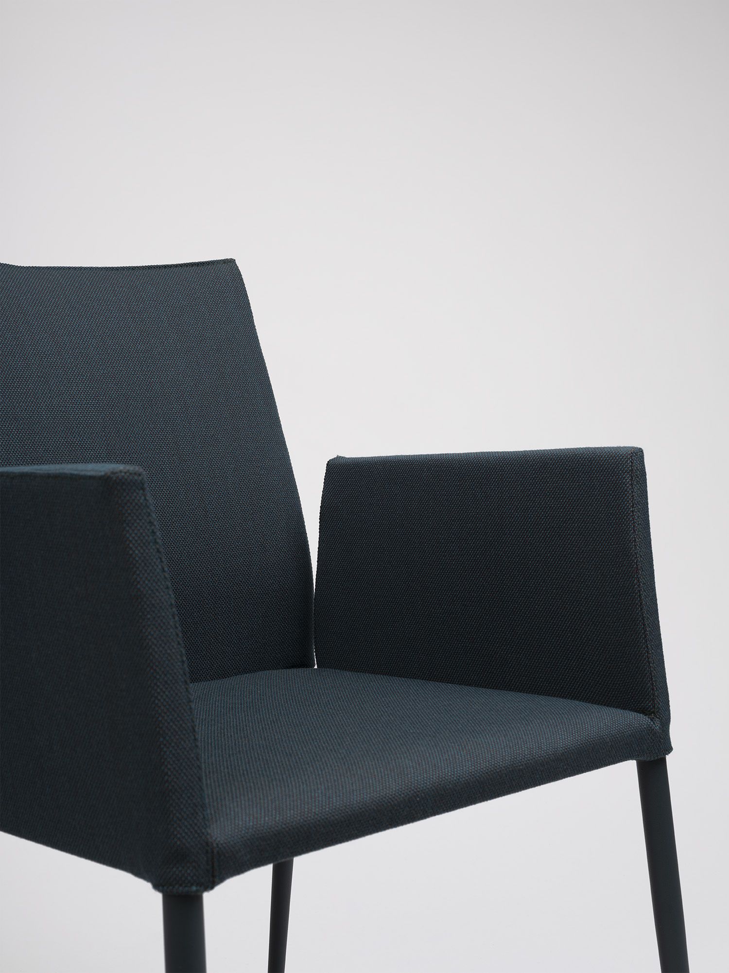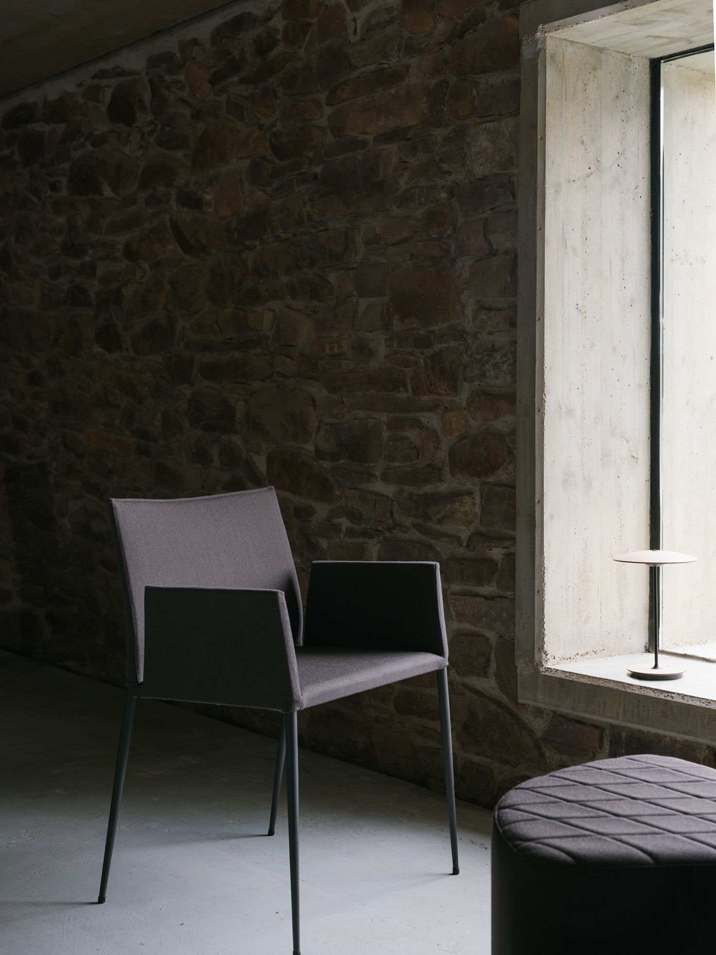 A chair with the comfort of an easychair, Moka has been designed to fit providing warmth, making a minimal and simple space, more welcoming . With its elegant and fine steel structure and its seat fully upholstered.