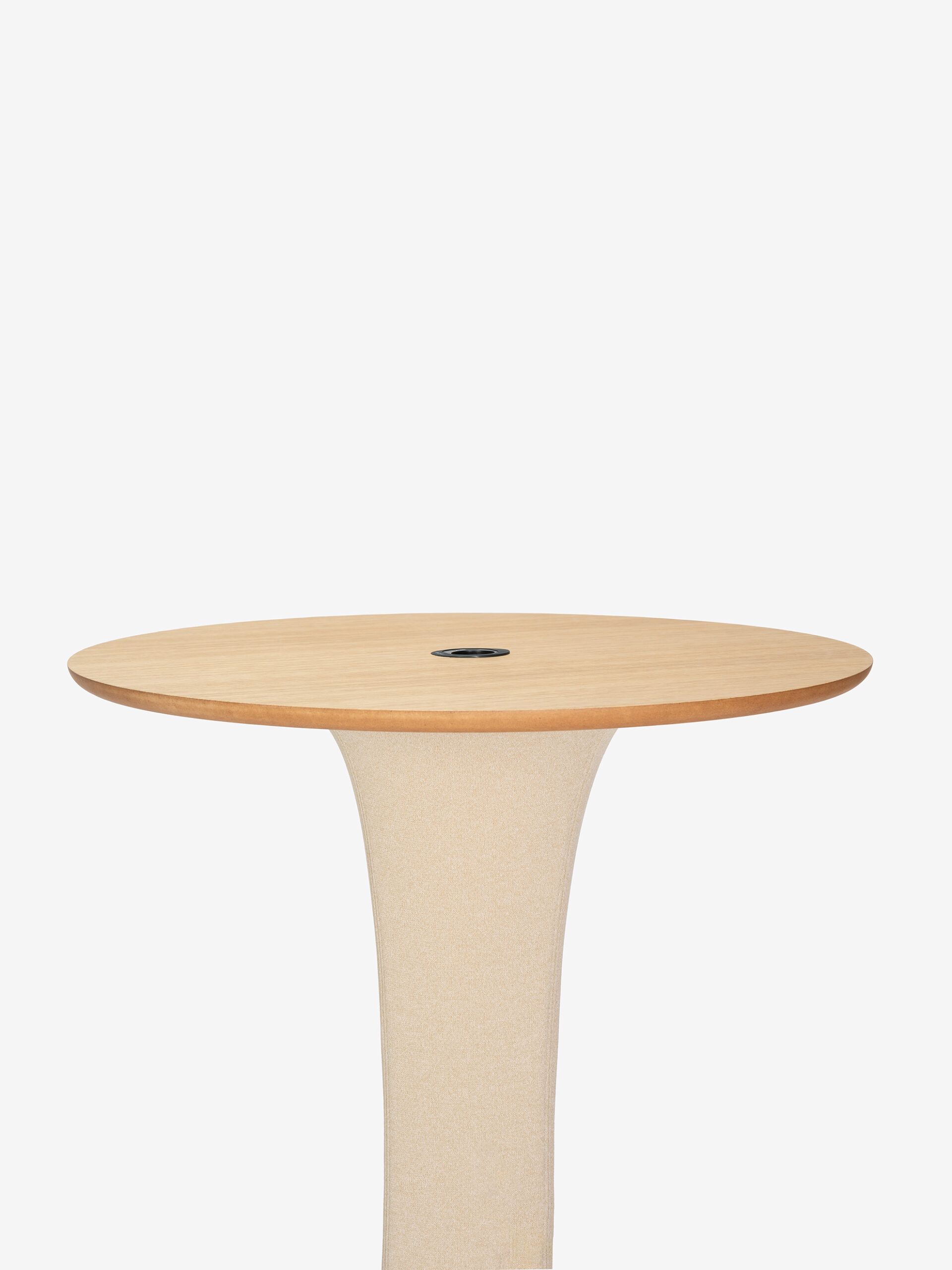 This new collection of tables is born out of the search for pure, soft, and gentle shapes to enhance any interior. The fabric material that envelops the pedestal provides the piece with a sense of warmth and great versatility. It is a functional piece with endless possibilities.