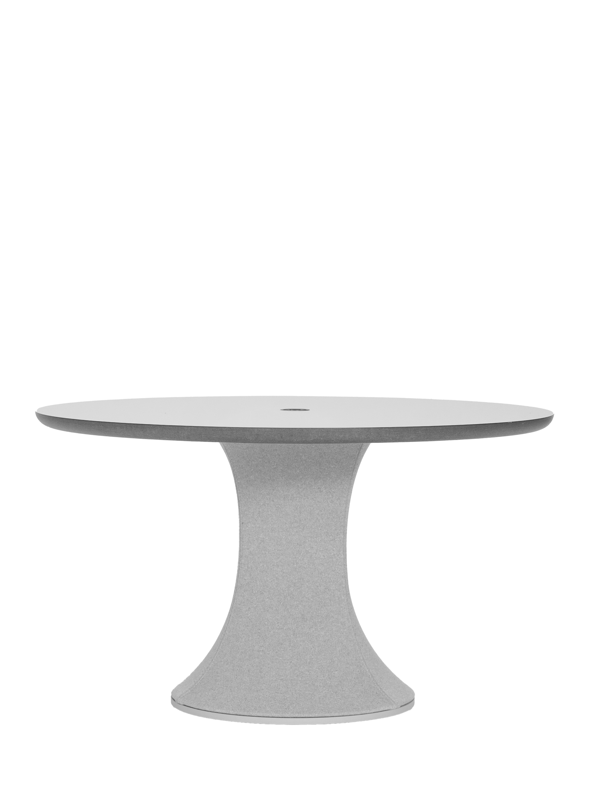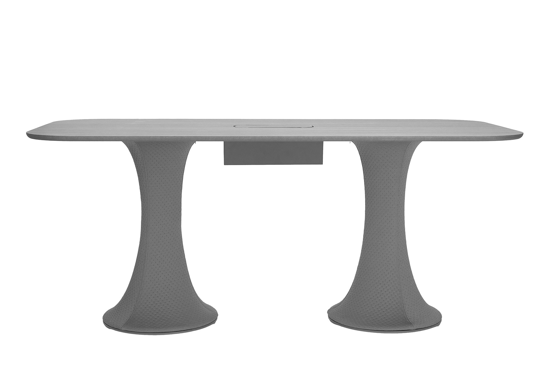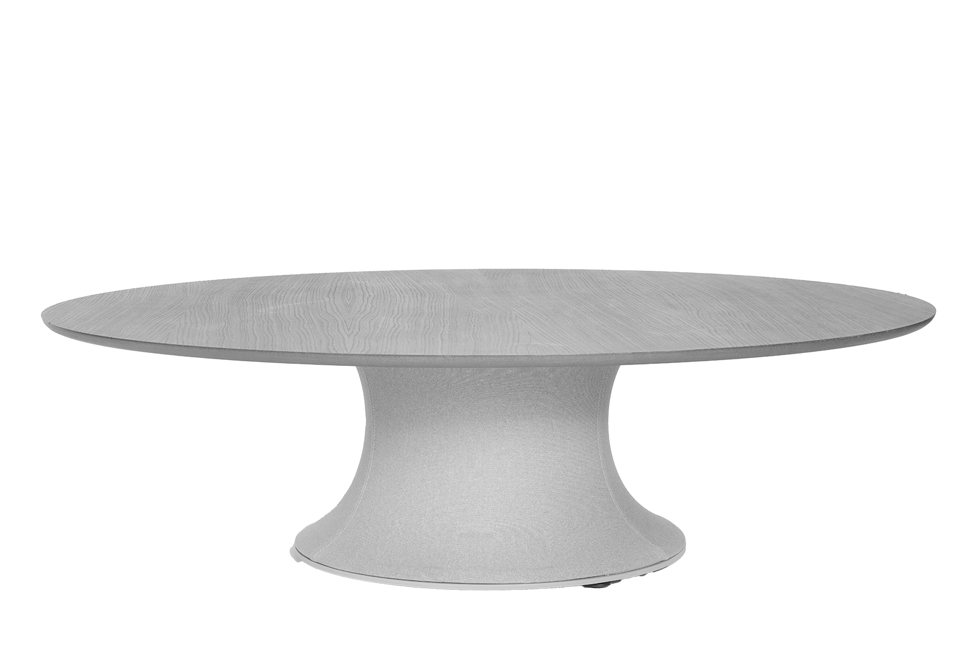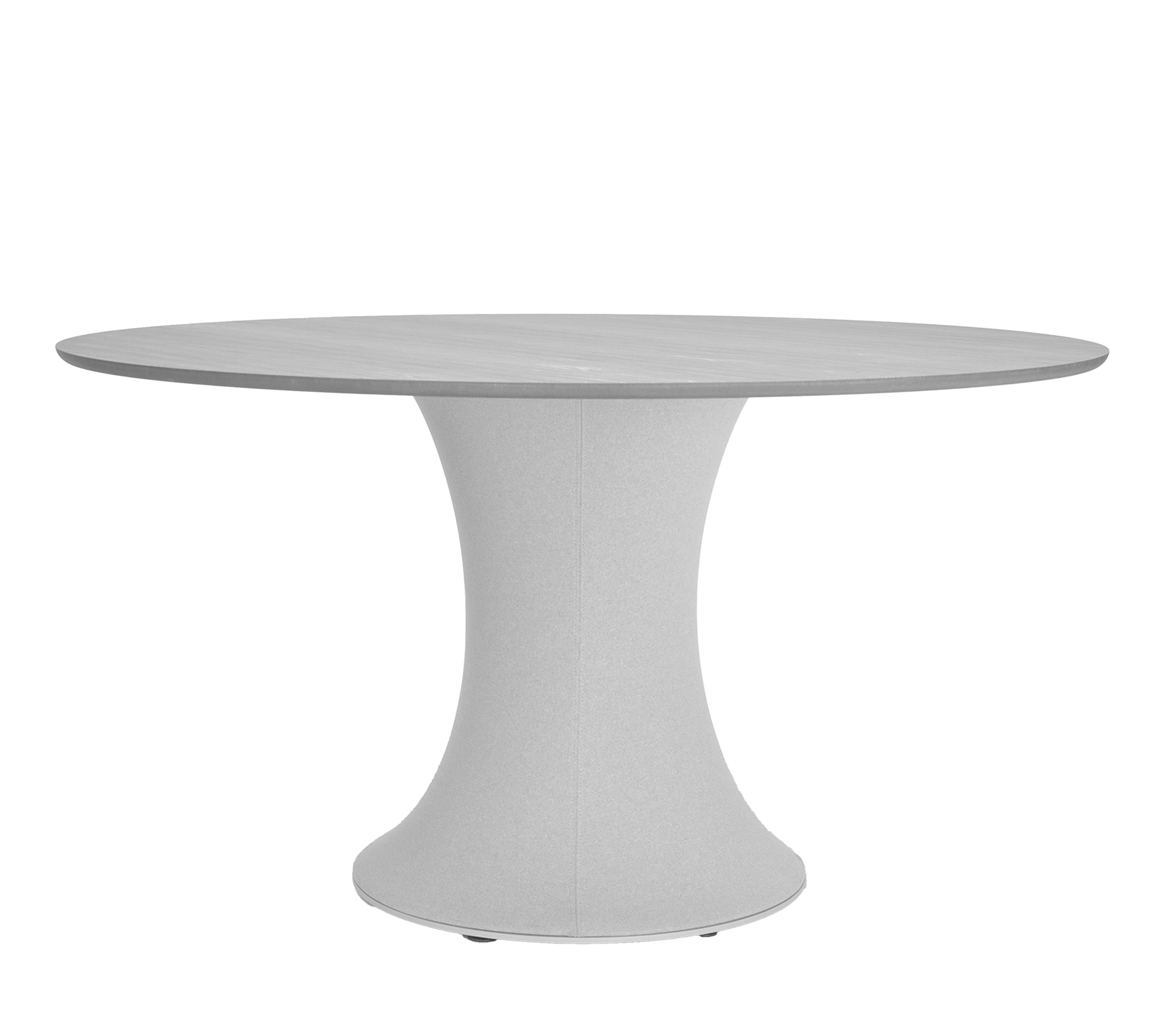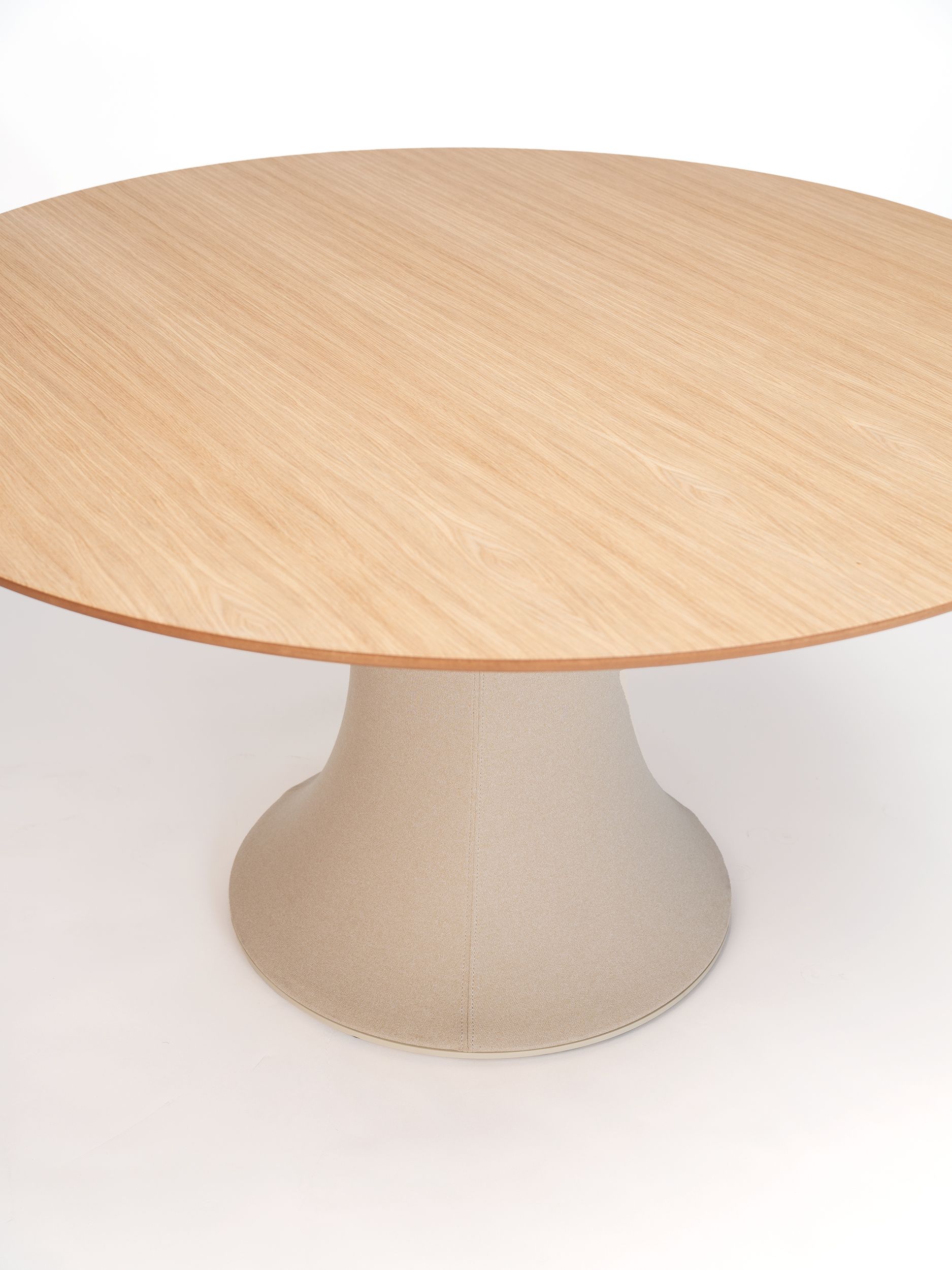 This new collection of tables is born out of the search for pure, soft, and gentle shapes to enhance any interior. The fabric material that envelops the pedestal provides the piece with a sense of warmth and great versatility. It is a functional piece with endless possibilities.