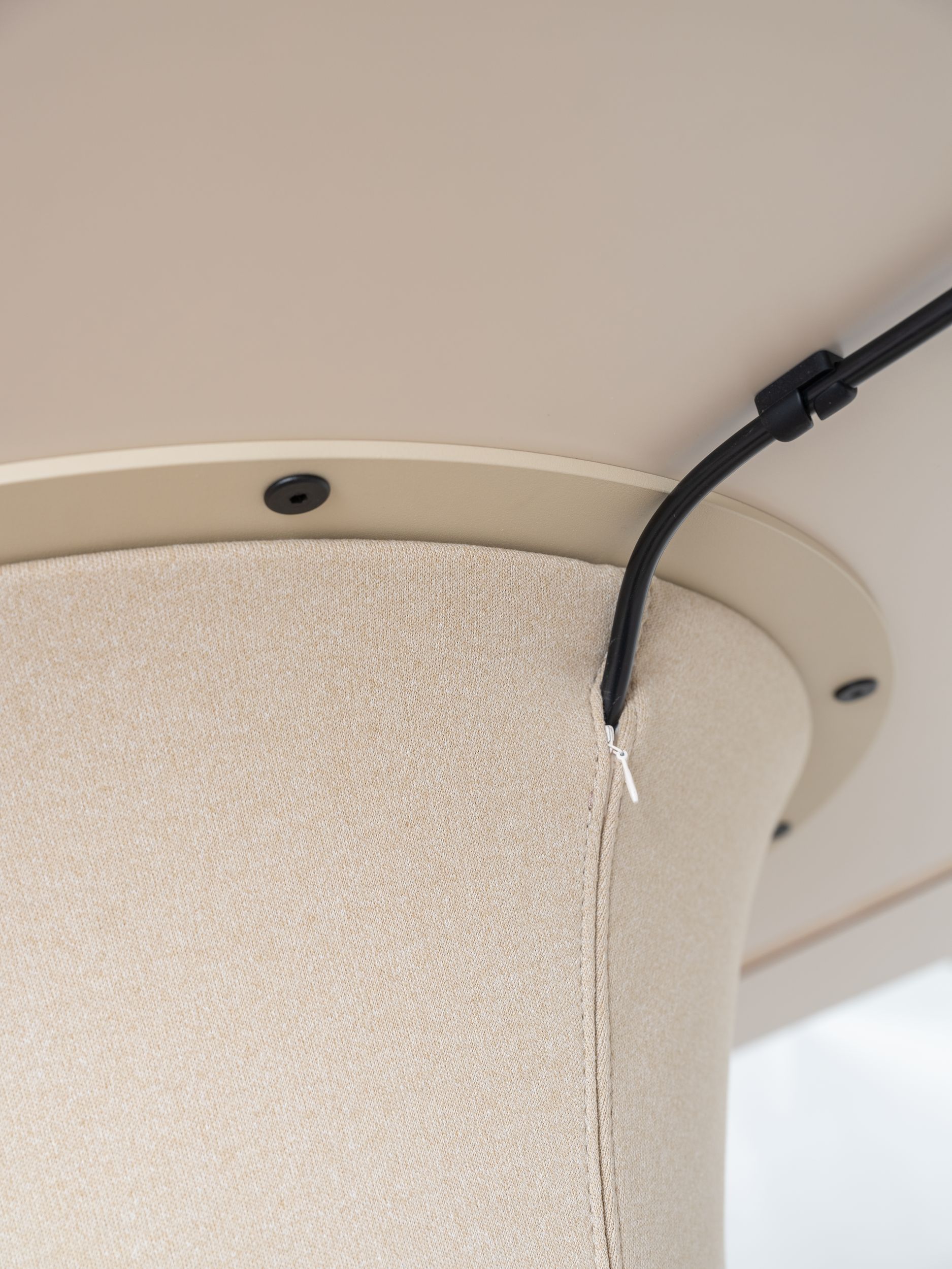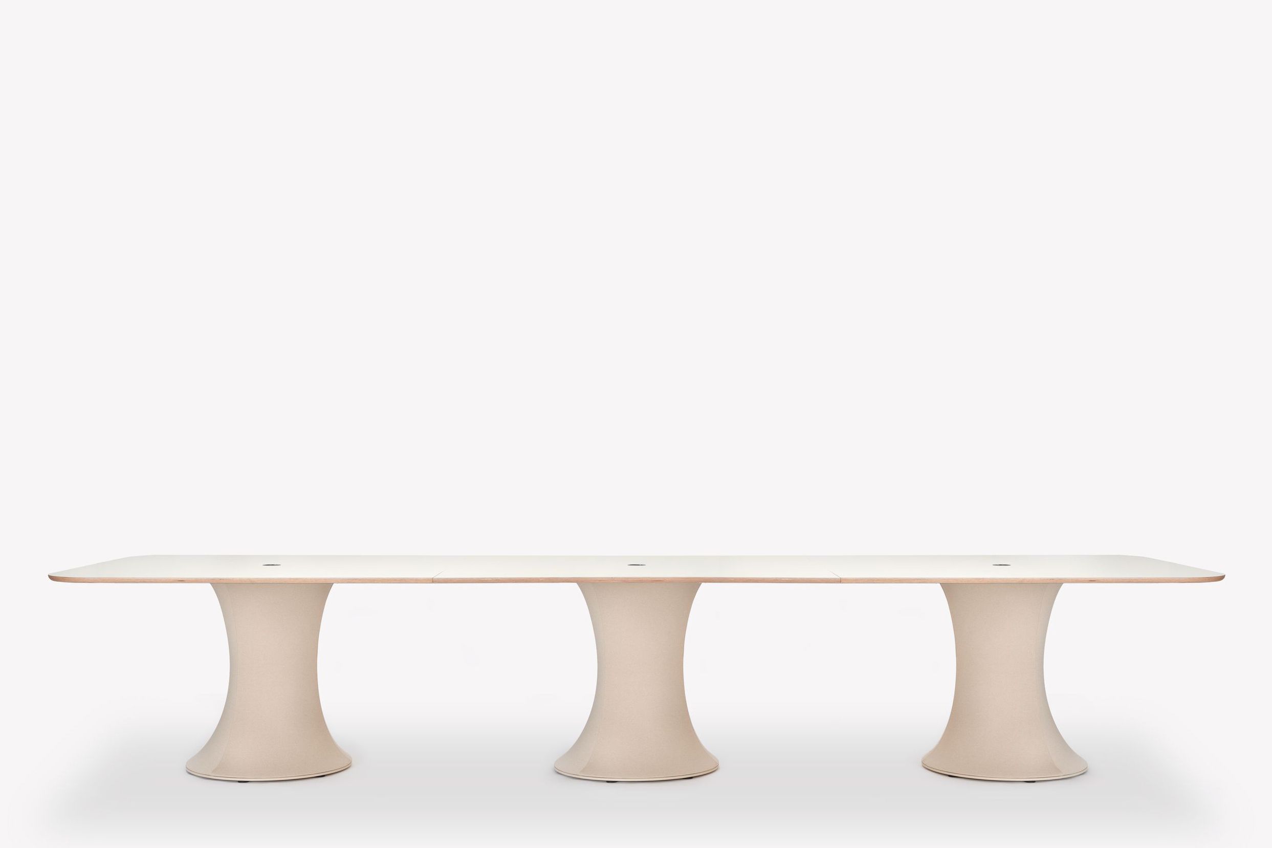 This new collection of tables is born out of the search for pure, soft, and gentle shapes to enhance any interior. The fabric material that envelops the pedestal provides the piece with a sense of warmth and great versatility. It is a functional piece with endless possibilities.