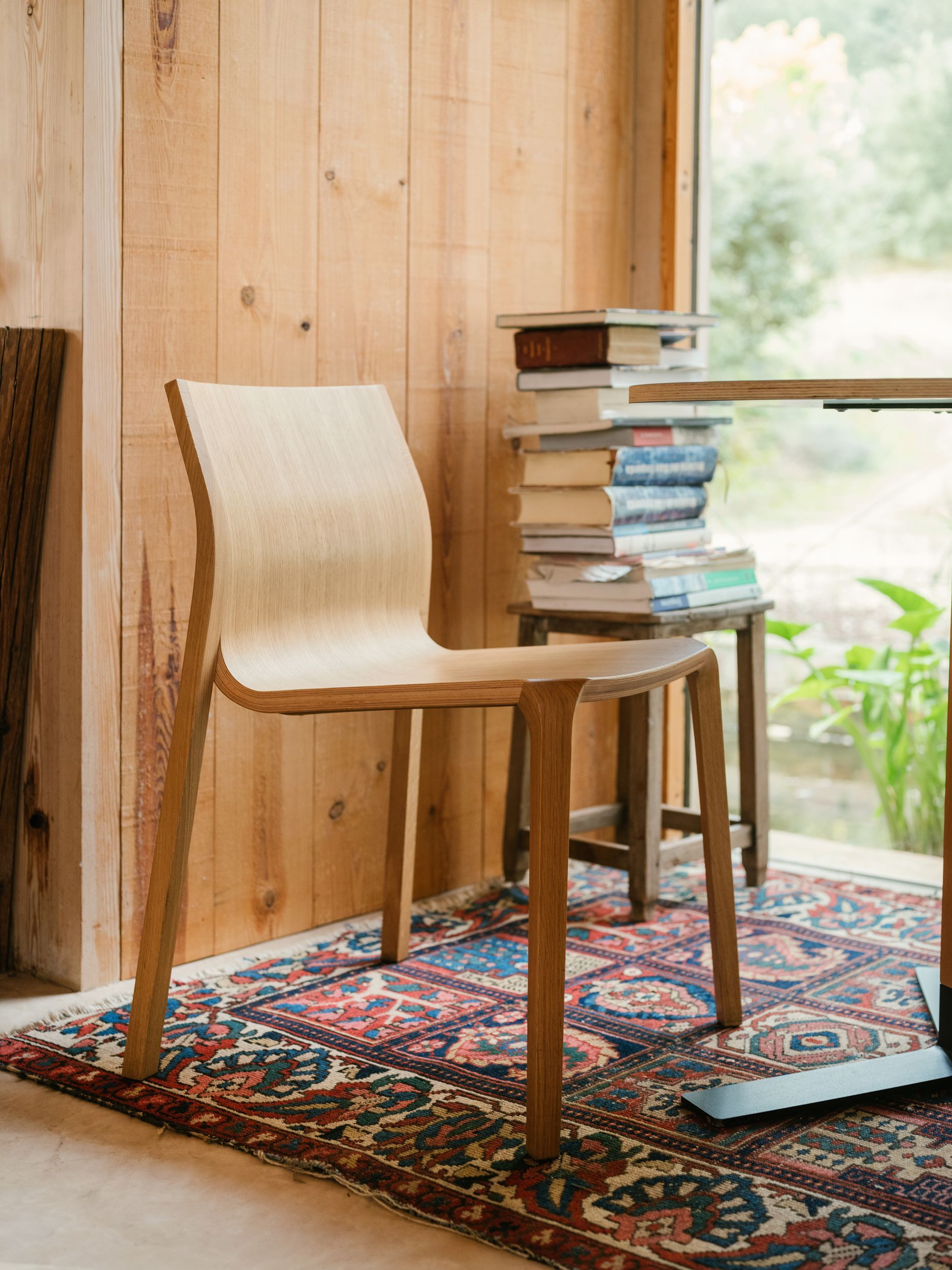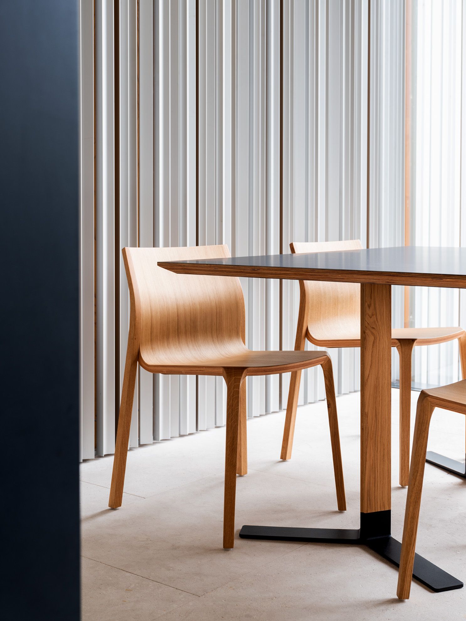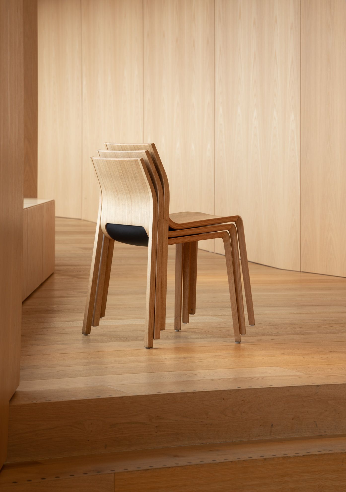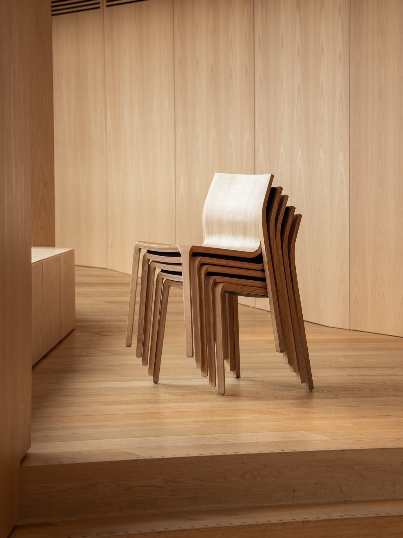 A fusion of traditional wood bending techniques and traditional know-how with the most contemporary design. The sinuous profile and stackability of the Silu chair turn this family into an architectural masterpiece.