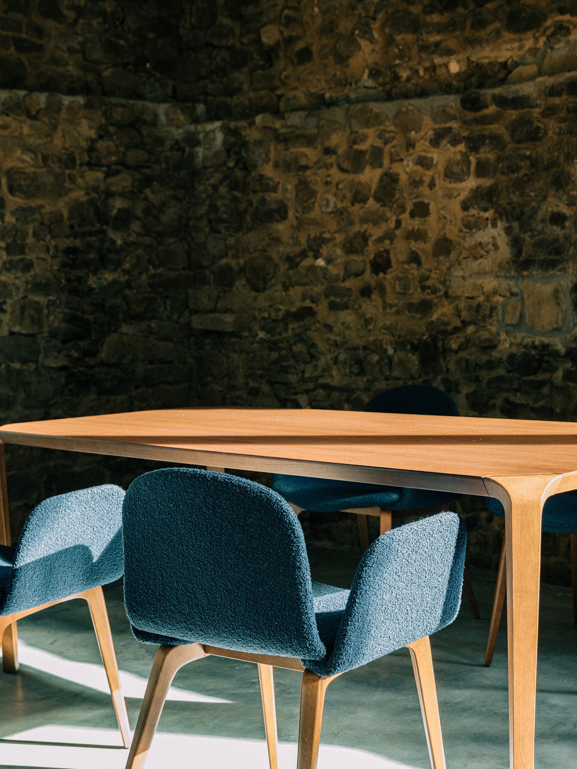 A fusion of traditional wood bending techniques and traditional know-how with the most contemporary design. In the Silu table, the designer showcases the union between the leg and the tabletop. Inspired by architectural shapes, the leg curves to meet the solid tabletop.