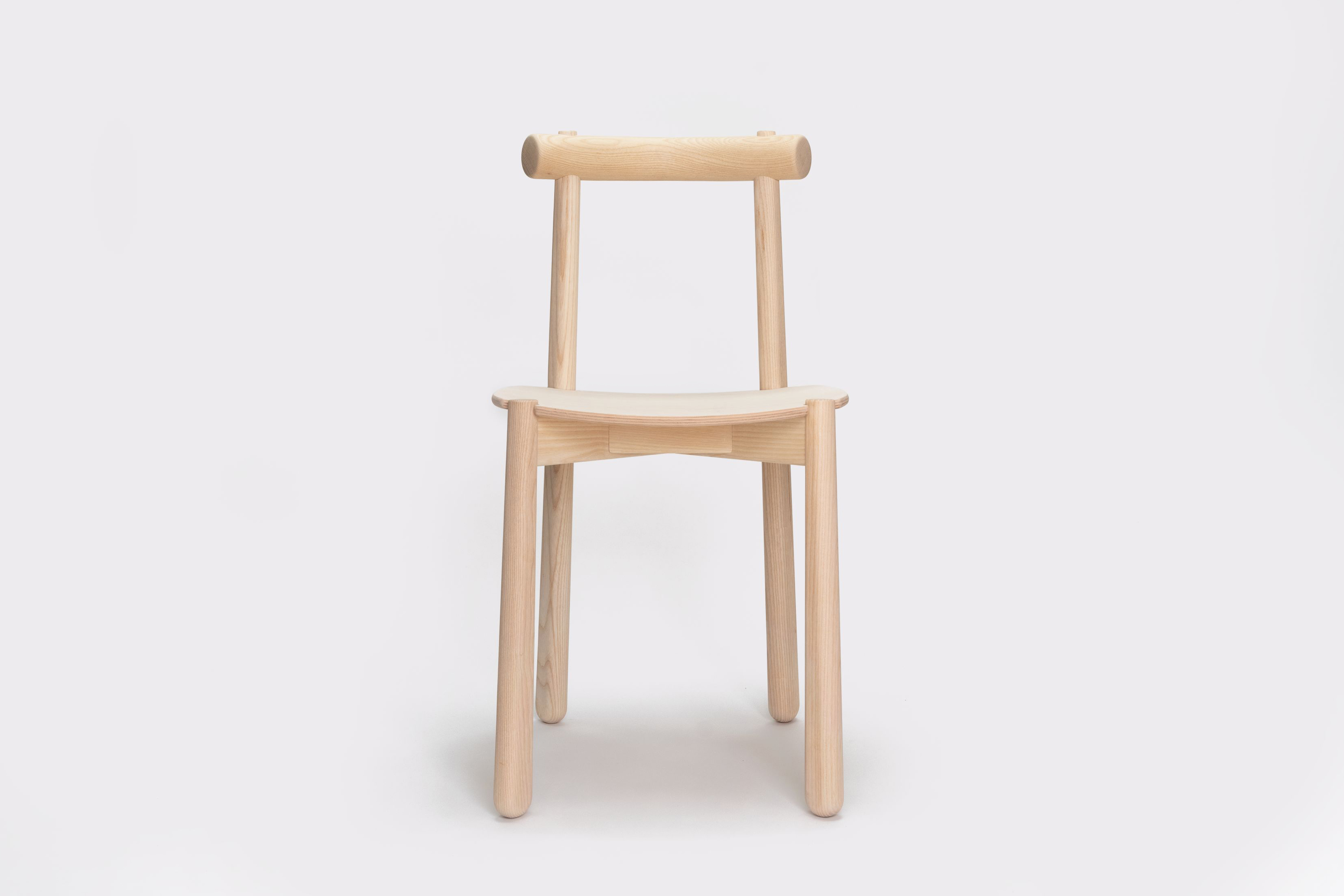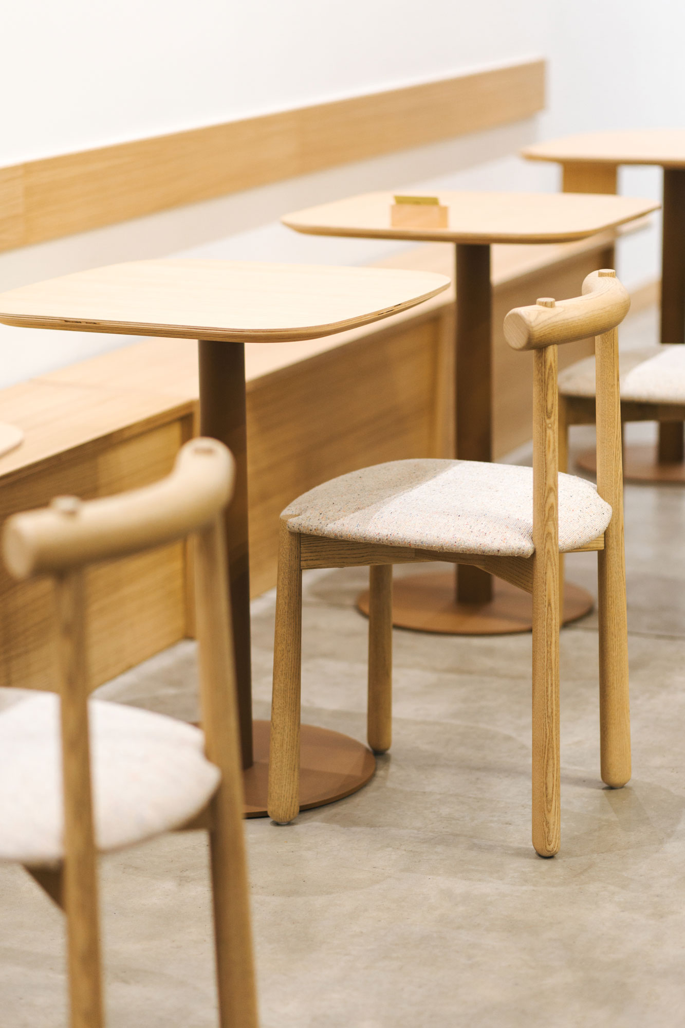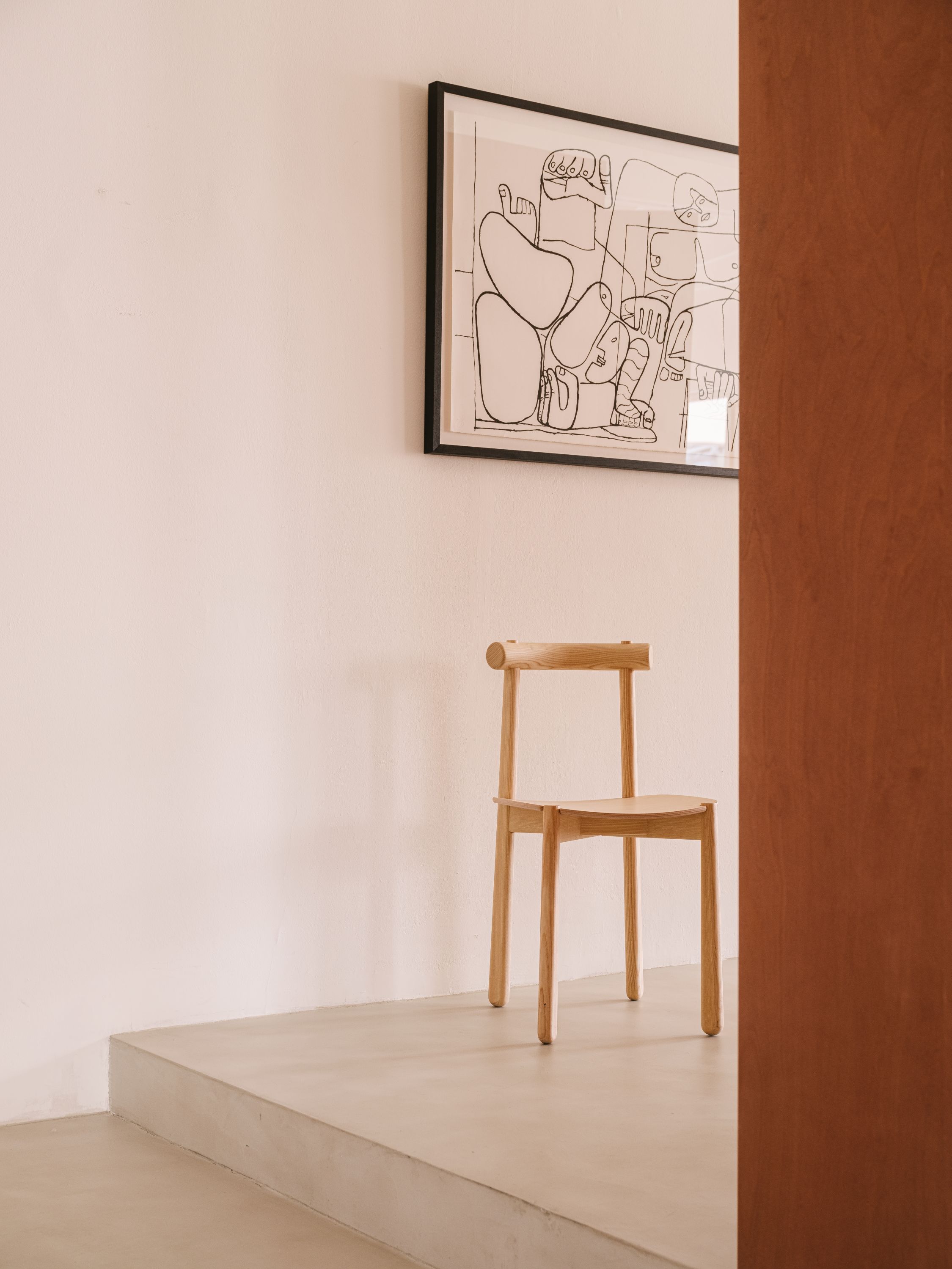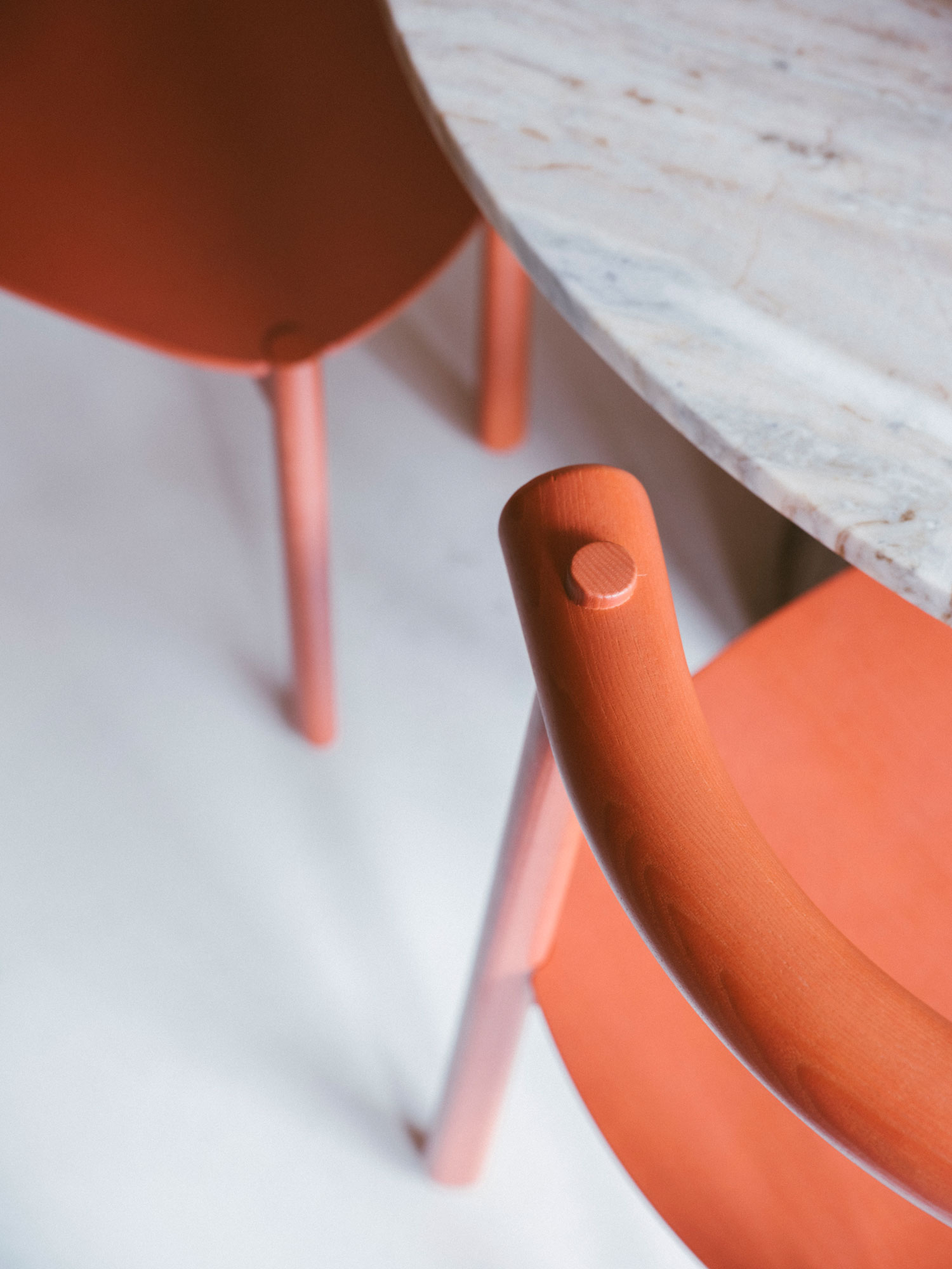 El armazón está conformado por madera maciza de fresno mecanizada y curvada mediante un proceso especial de vaporizado y prensado. Para más información, consultar ficha técnica.