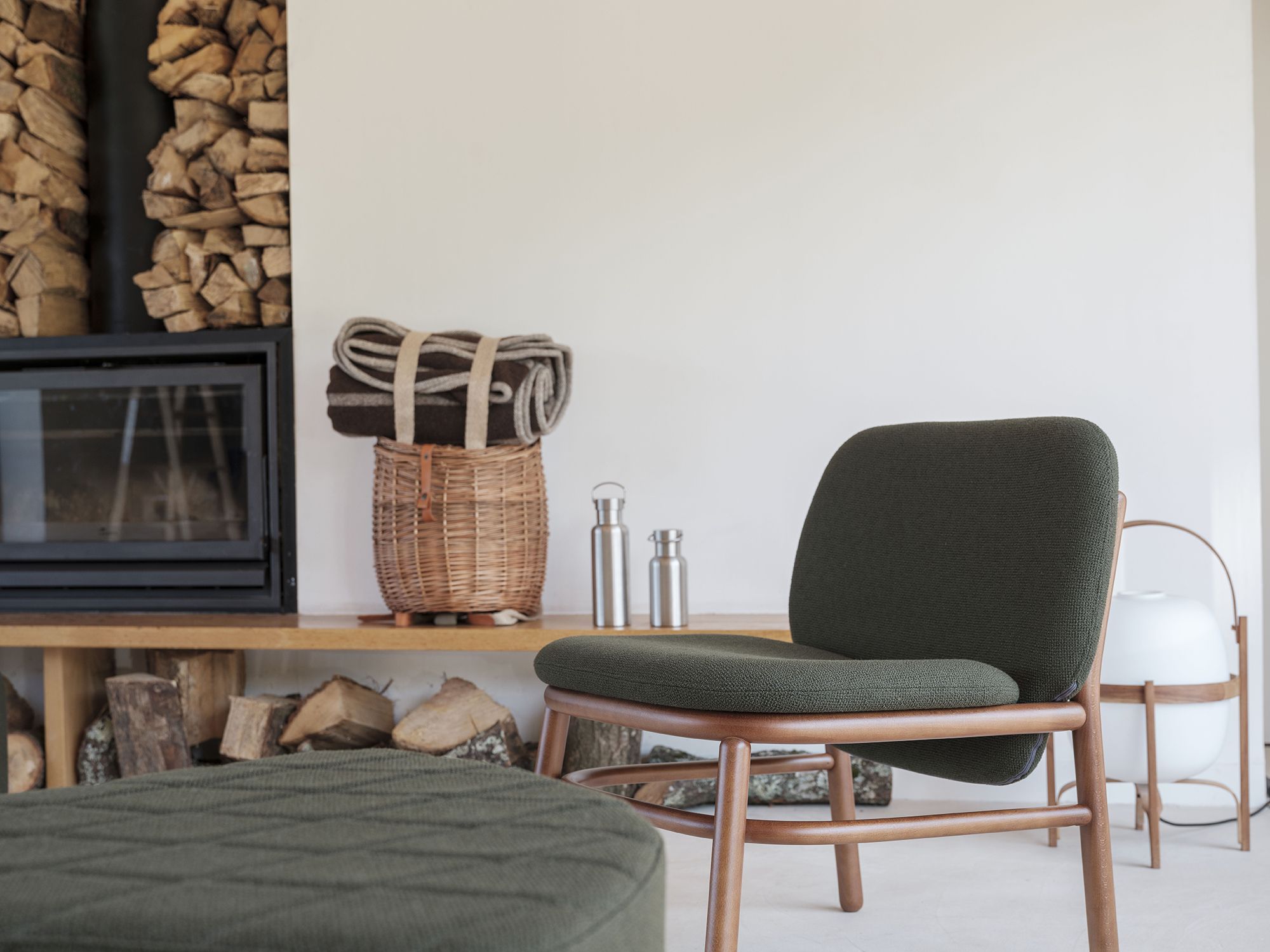 Lana Fauteuil Bois Dossier BasAia Pouf H40