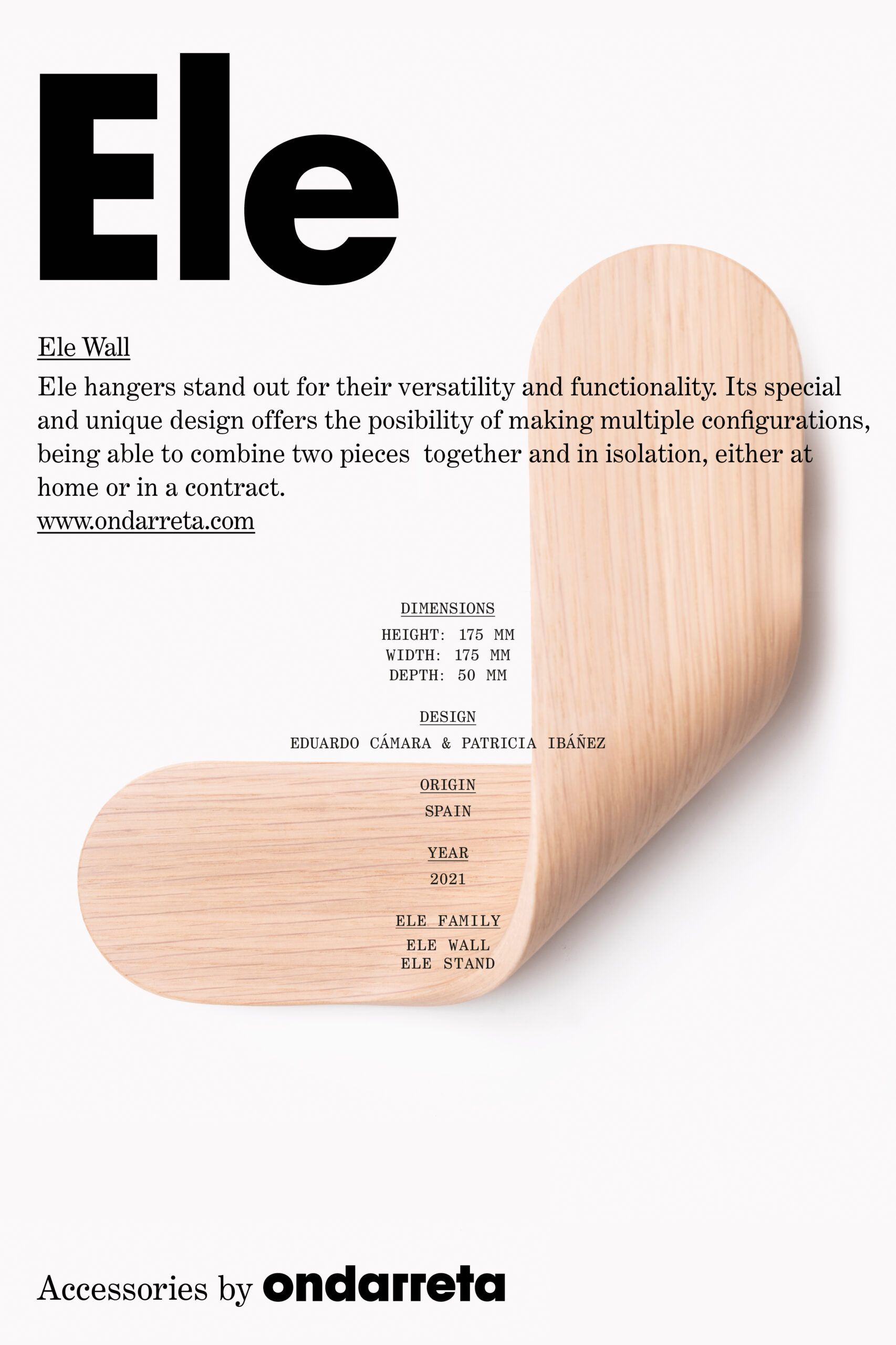 Los colgadores ELE destacan por su versatilidad y funcionalidad. Su especial y único diseño, ofrece la posibilidad de realizar múltiples configuraciones, pudiendo combinar dos piezas de forma conjunta y aislada, bien en entorno hogar como contract.