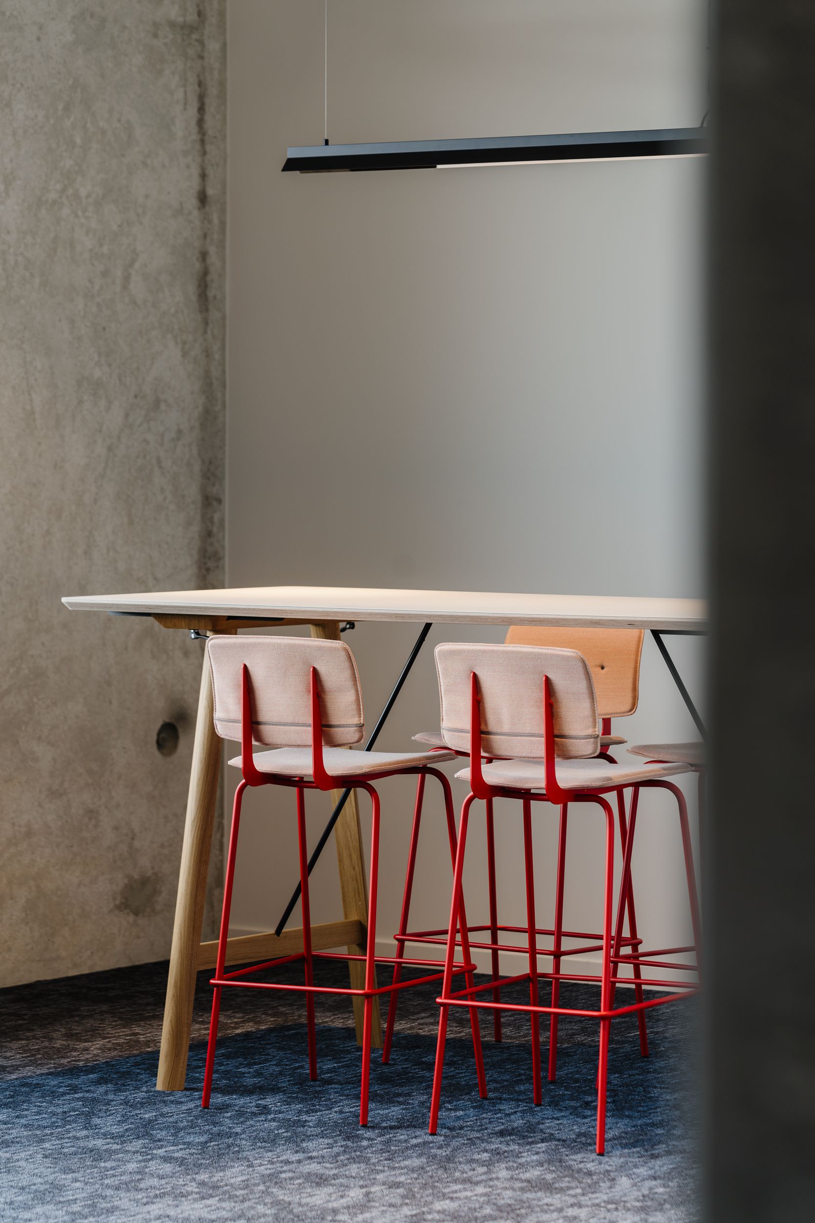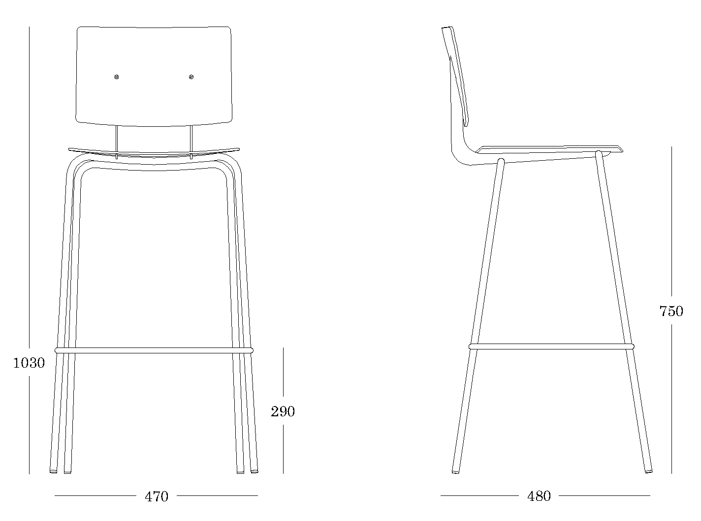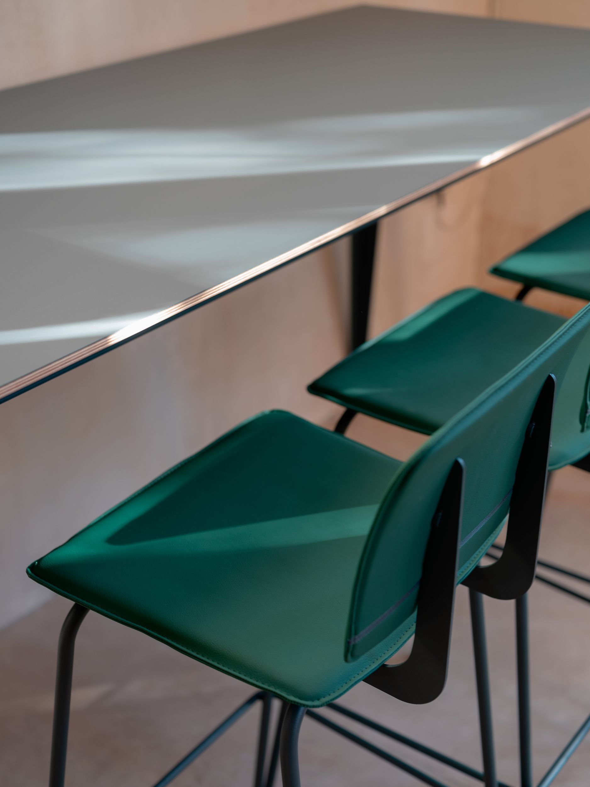 Estructura compuesta por tubo cilíndrico de precisión de 16 mm de diámetro y 2 mm de grosor en acero reciclado laminado en frío. Las opciones de acabado para el asiento y el respaldo incluyen laminado fenólico y tapizado. Para más información, consultar ficha técnica.