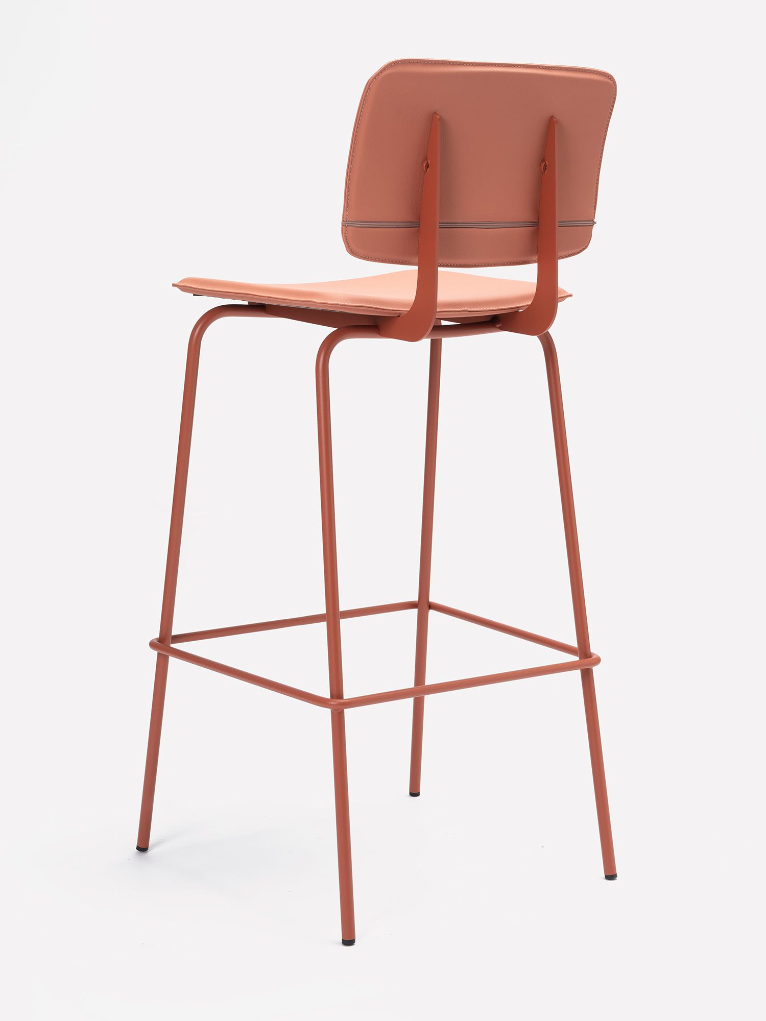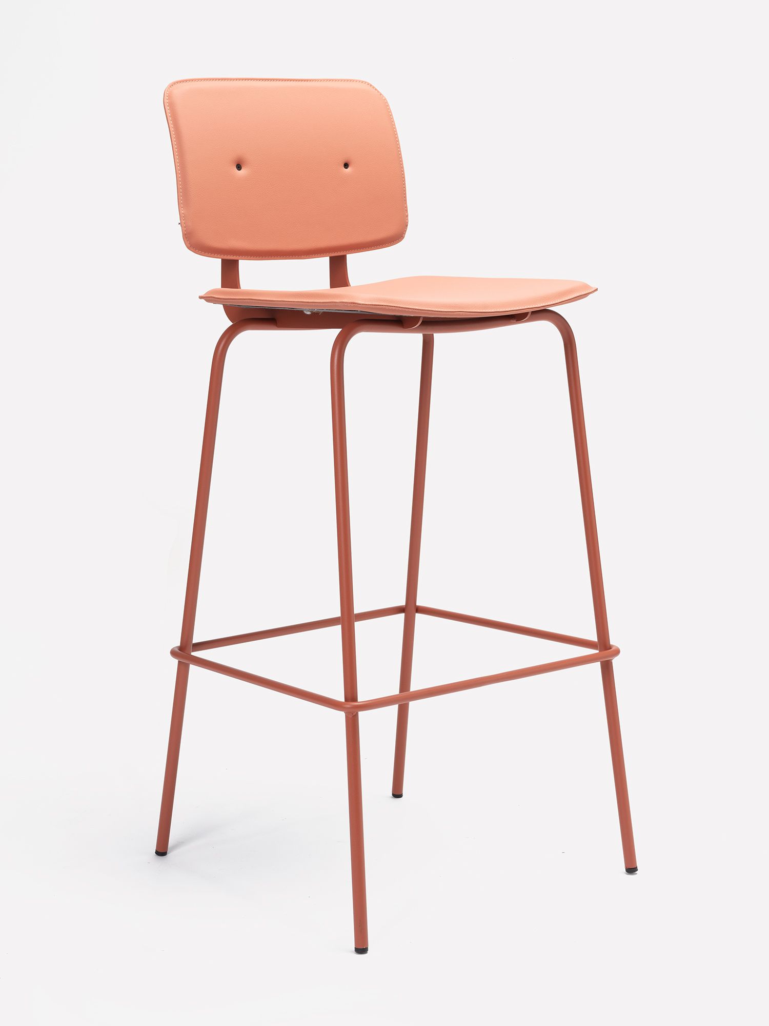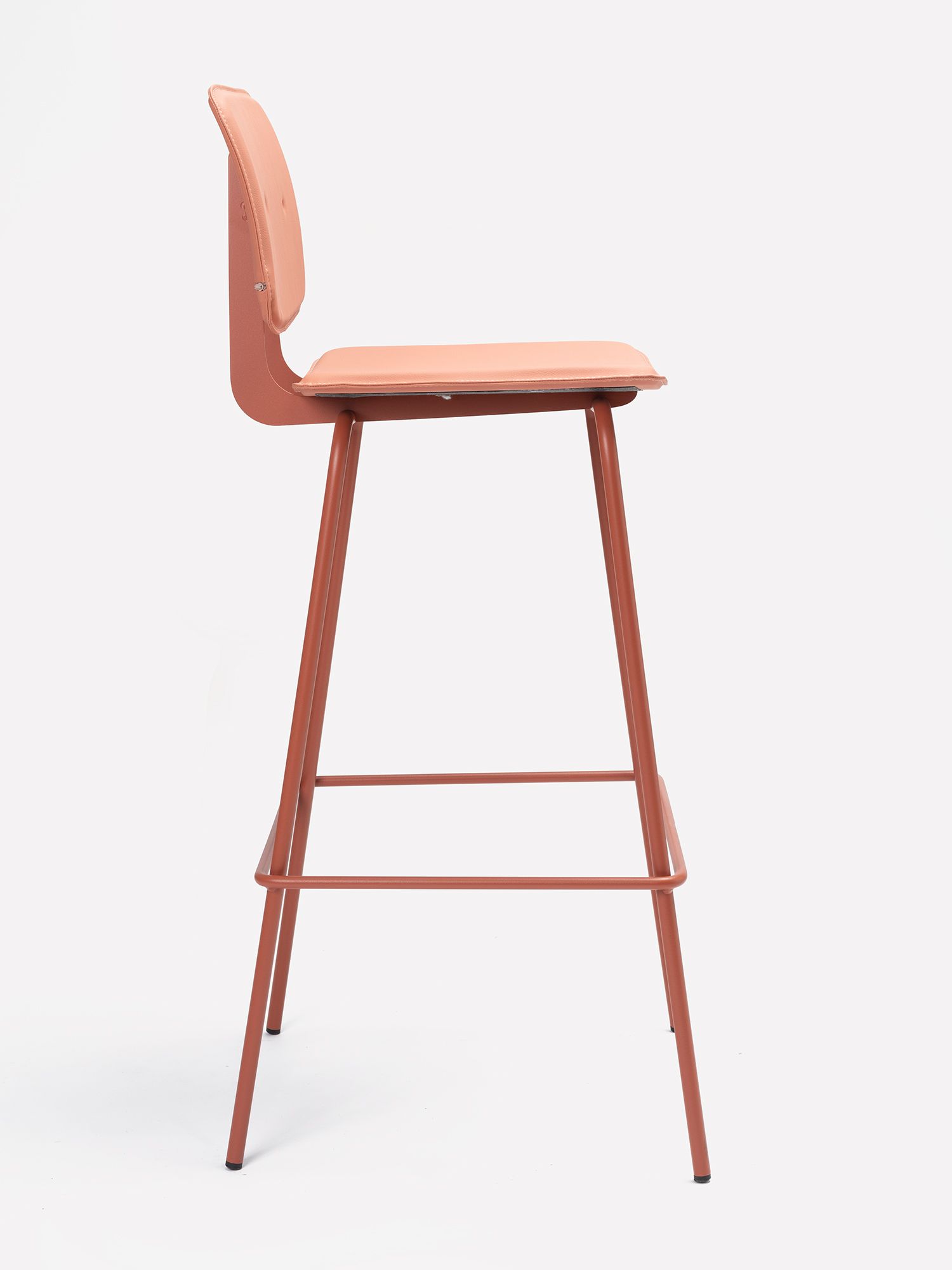 El taburete Don, estilo industrial contemporáneo, disponible en dos alturas 65 y 75. Con estructura de chapa metálica y los tornillos del respaldo a la vista, aportando ese toque retro y original a tu espacio de trabajo.