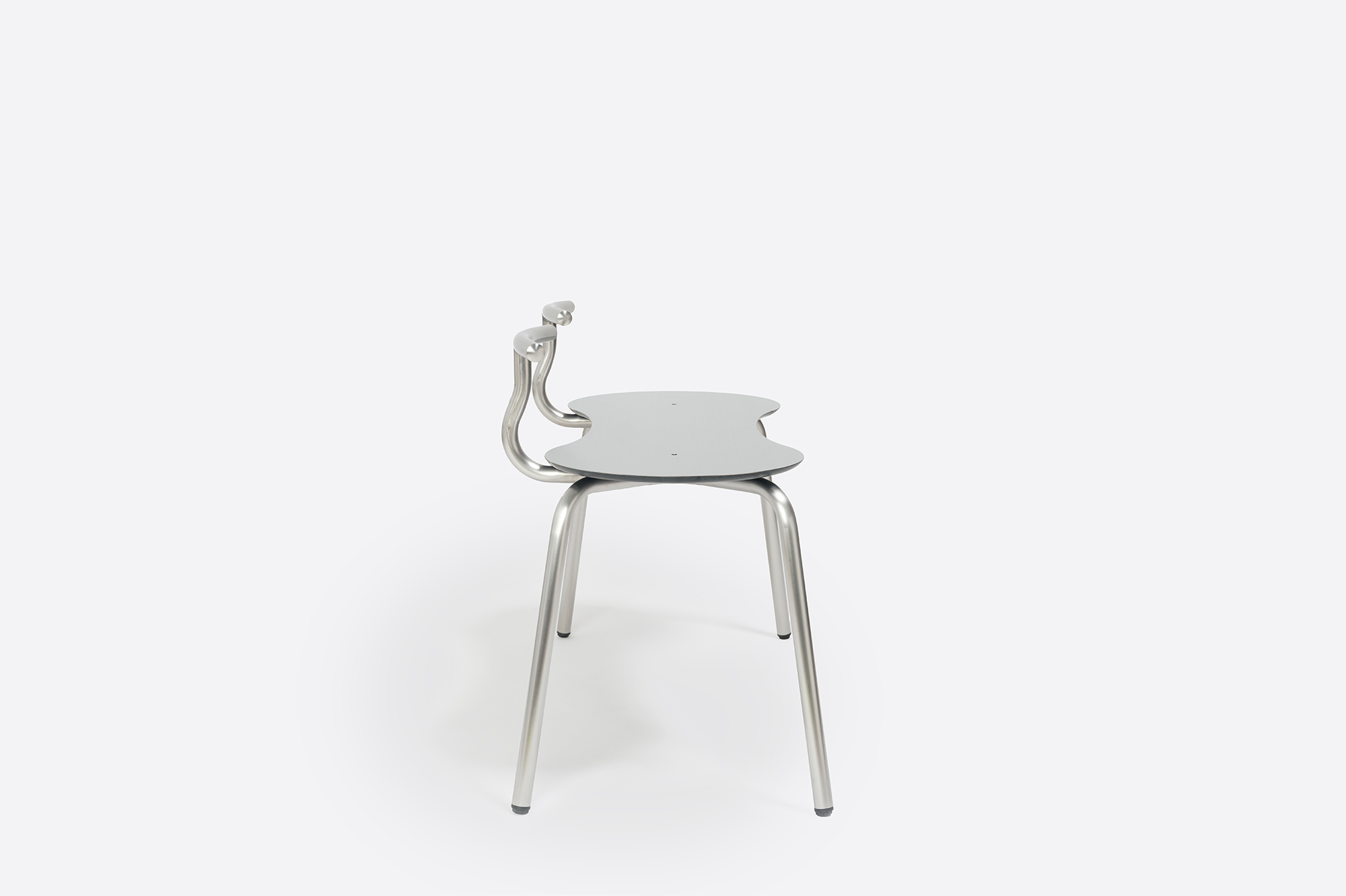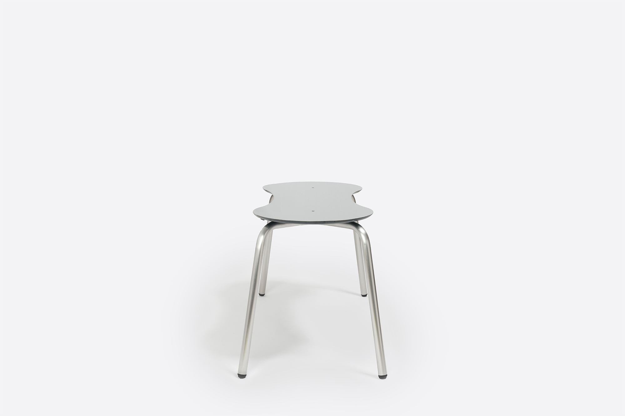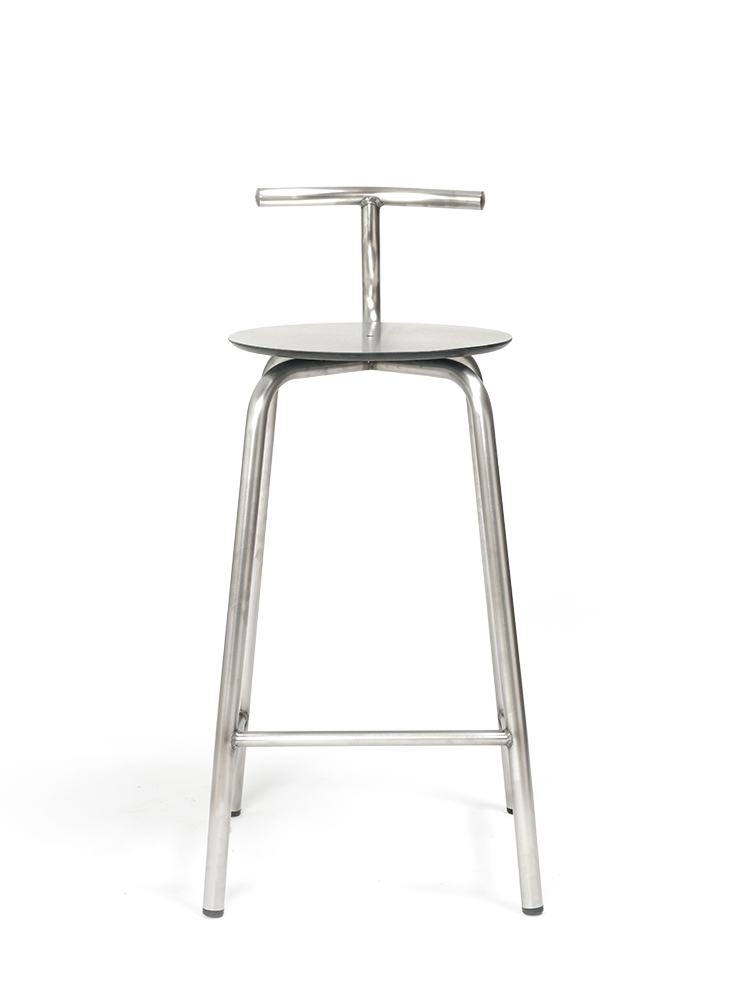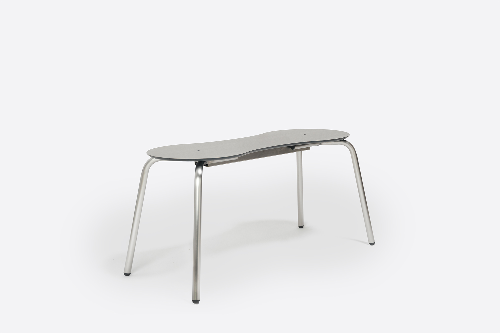 precisión de 2 mm de grosor en acero inoxidable. El asiento se presenta en acabado de acero inoxidable o con cojín opcional disponible como accesorio, confeccionado en tejidos Outdoor.