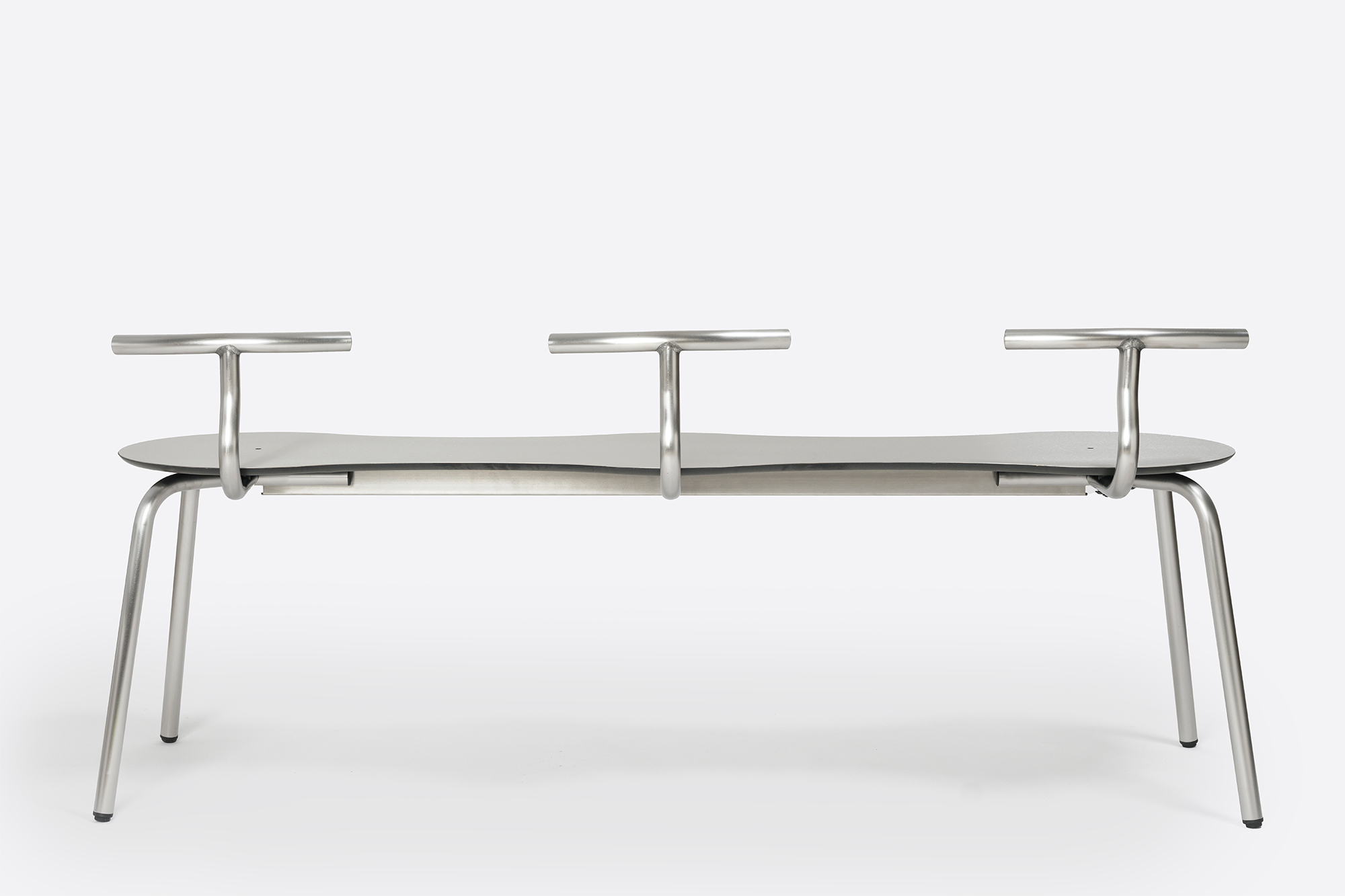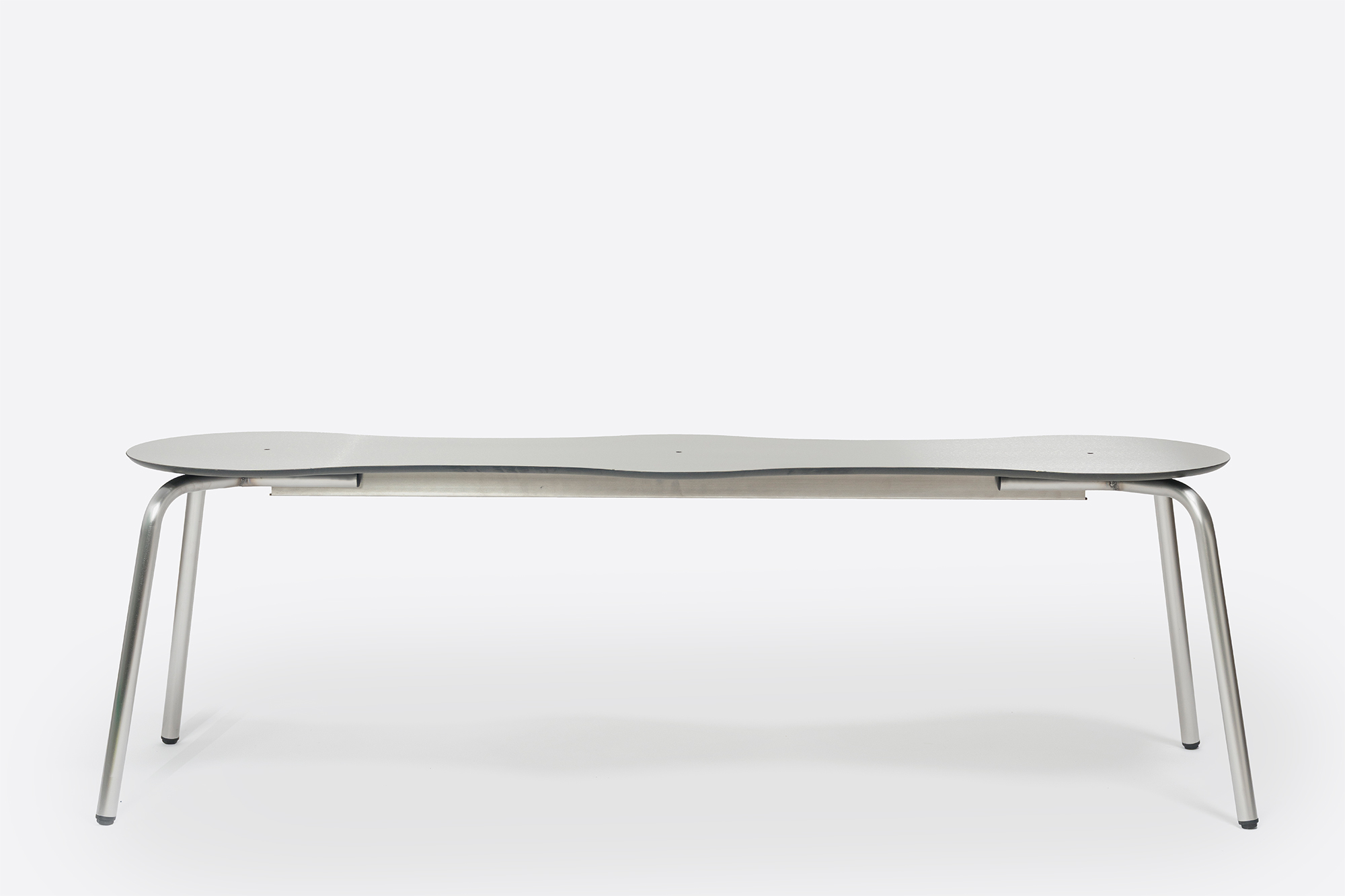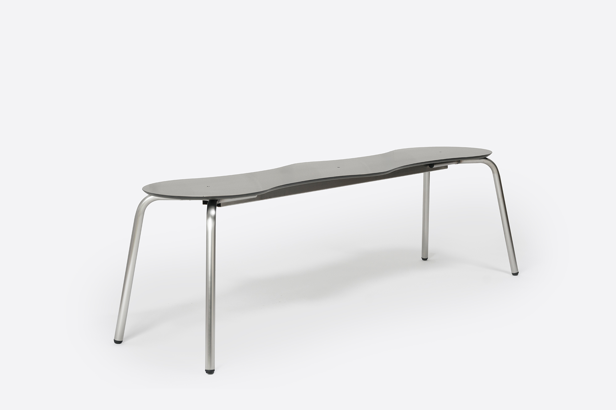 precisión de 2 mm de grosor en acero inoxidable. El asiento se presenta en acabado de acero inoxidable o con cojín opcional disponible como accesorio, confeccionado en tejidos Outdoor.