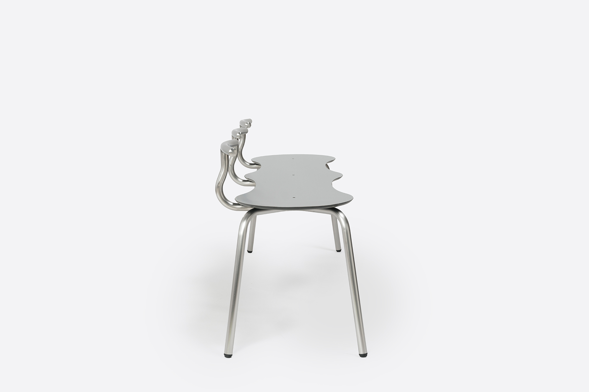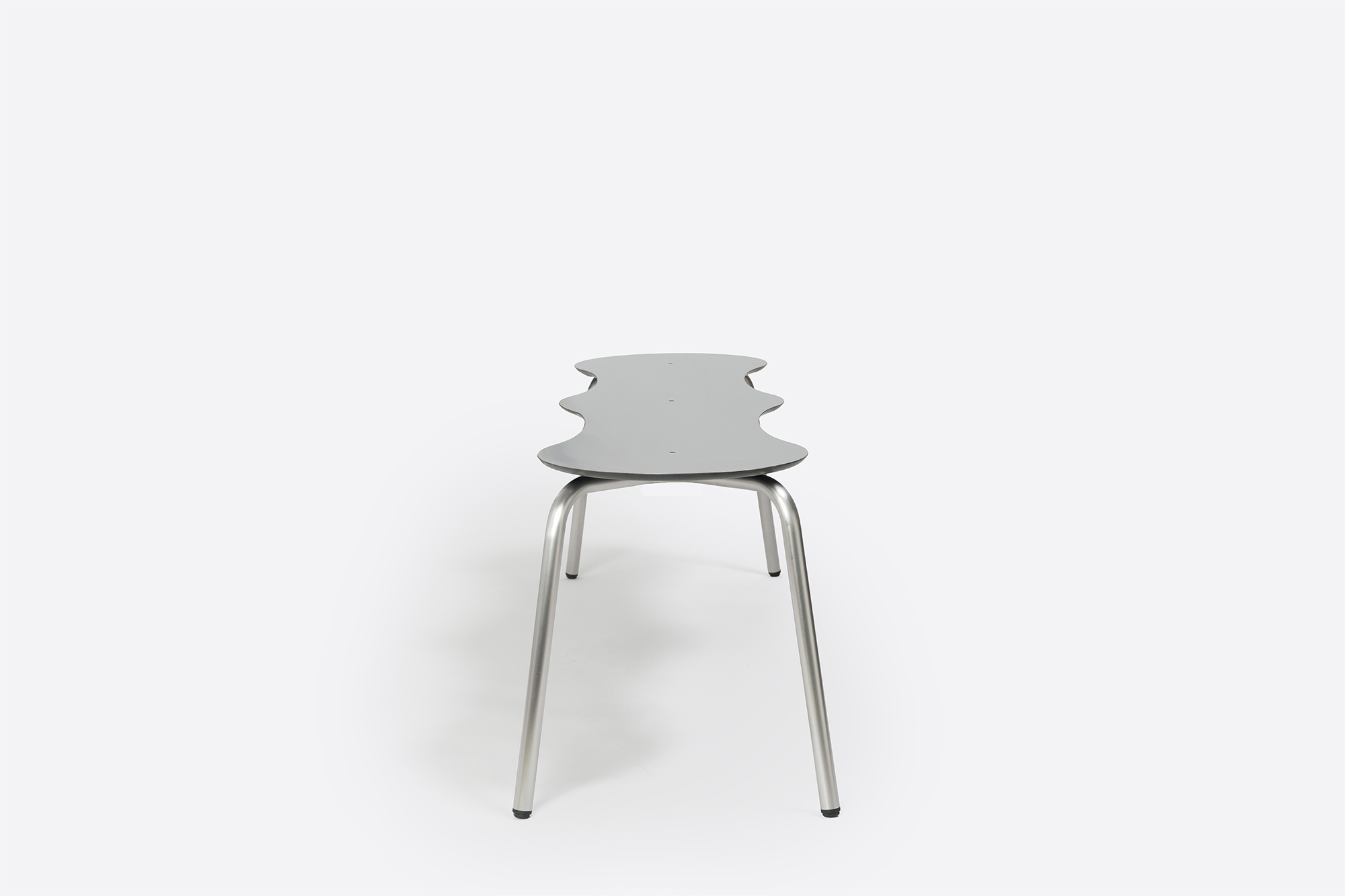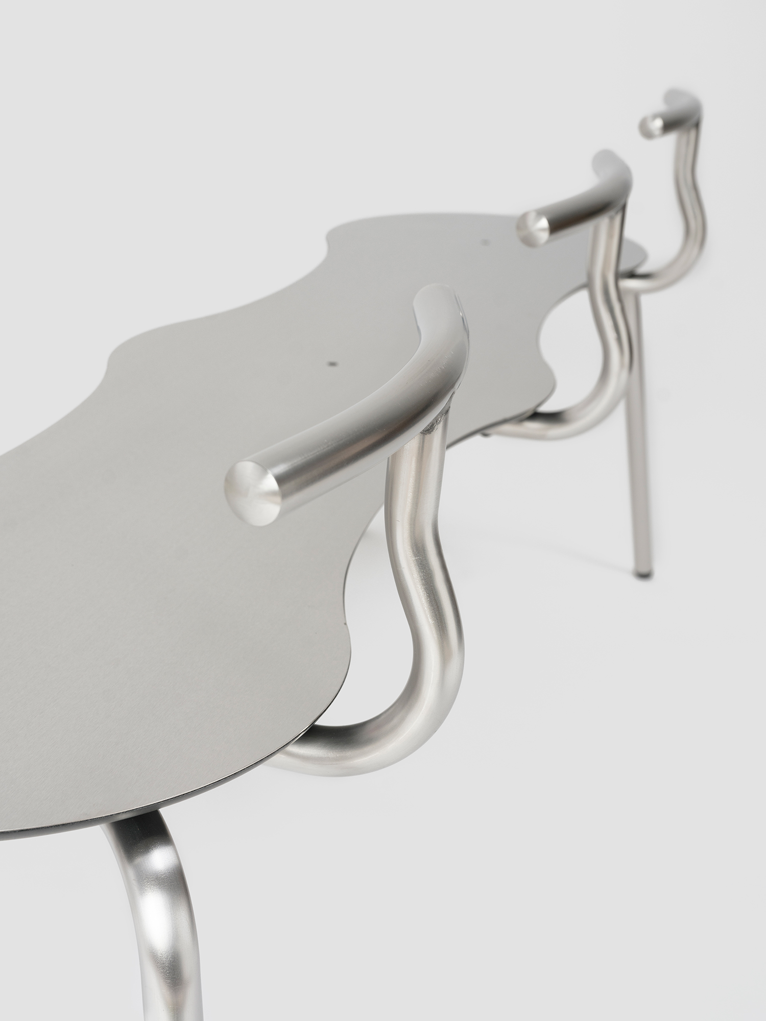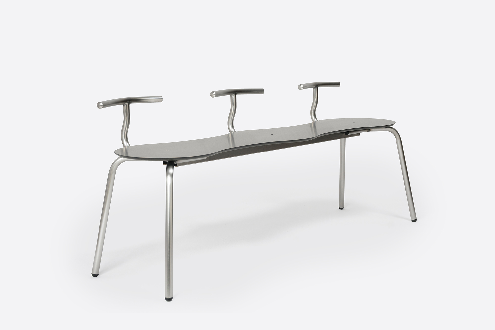 precisión de 2 mm de grosor en acero inoxidable. El asiento se presenta en acabado de acero inoxidable o con cojín opcional disponible como accesorio, confeccionado en tejidos Outdoor.